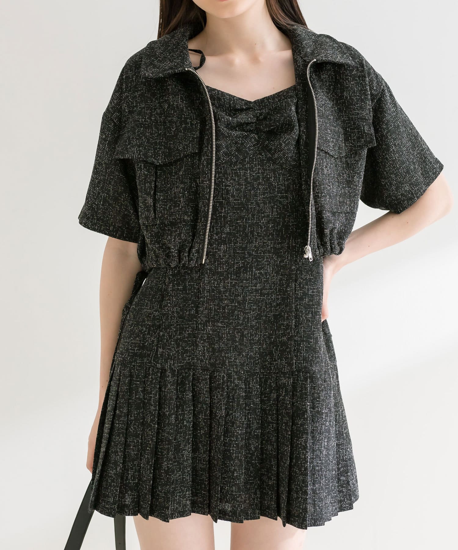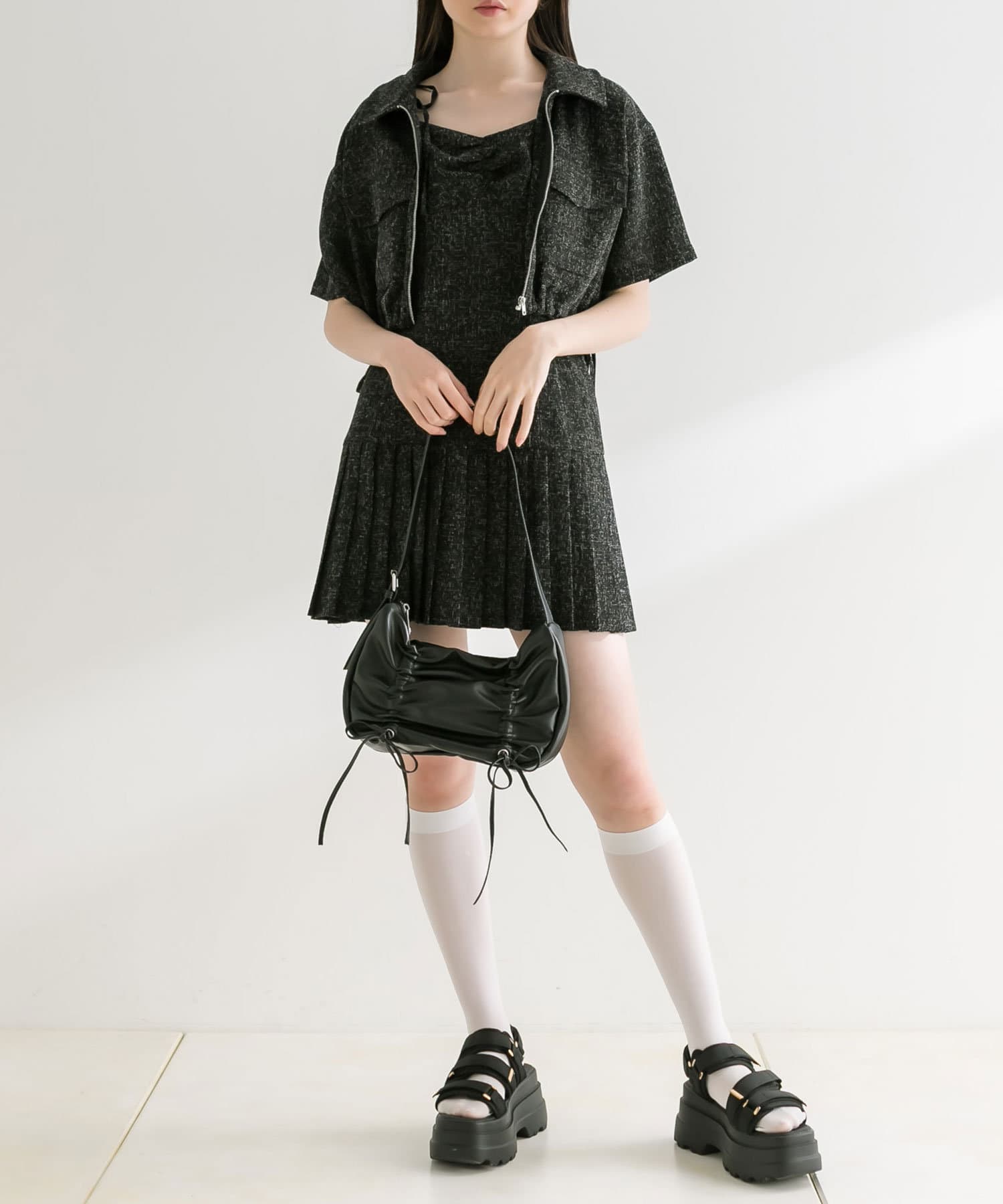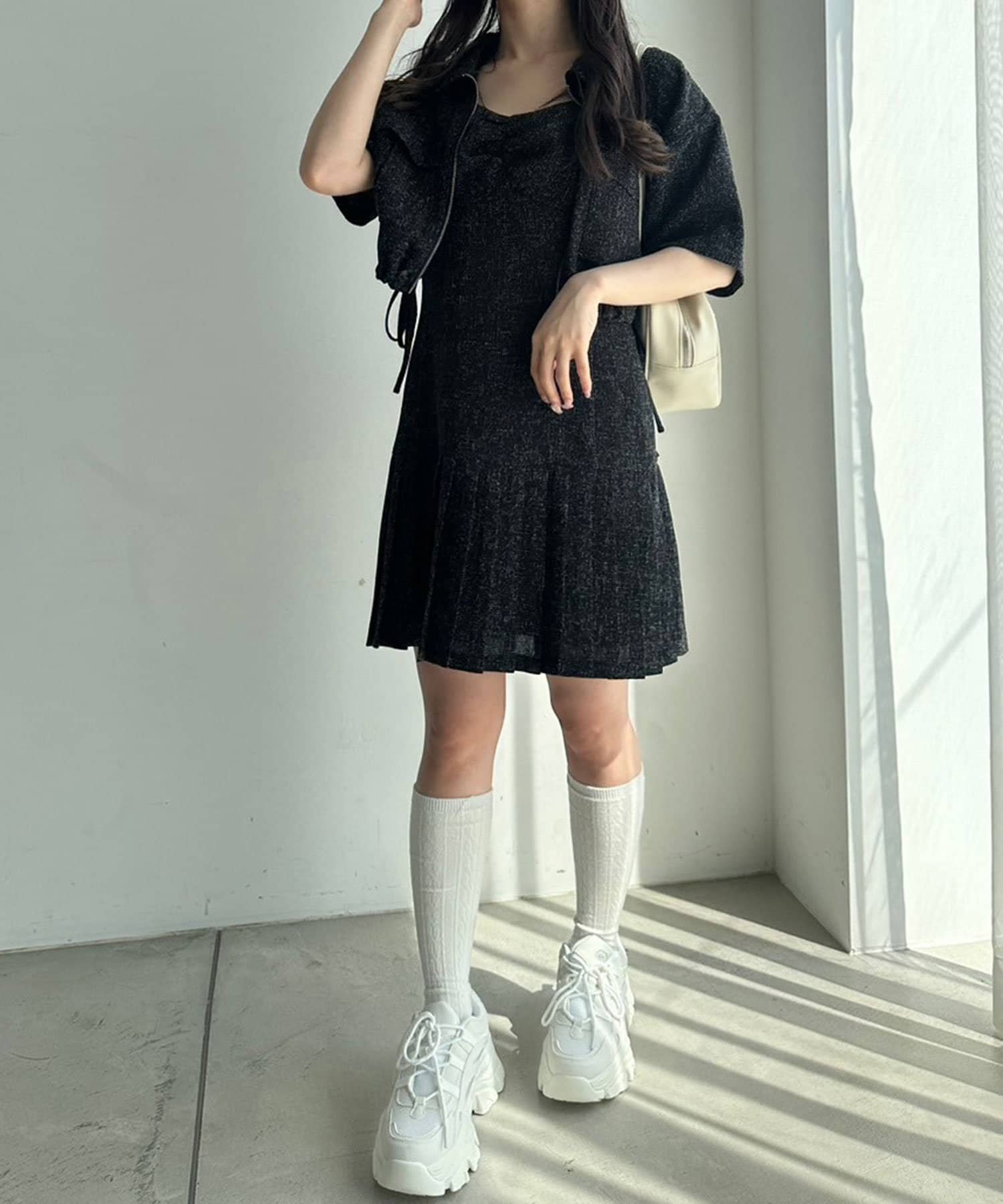 ・袖リボン半袖ジャケット(品番:1041070140)とセットで着れるキャミワンピース。