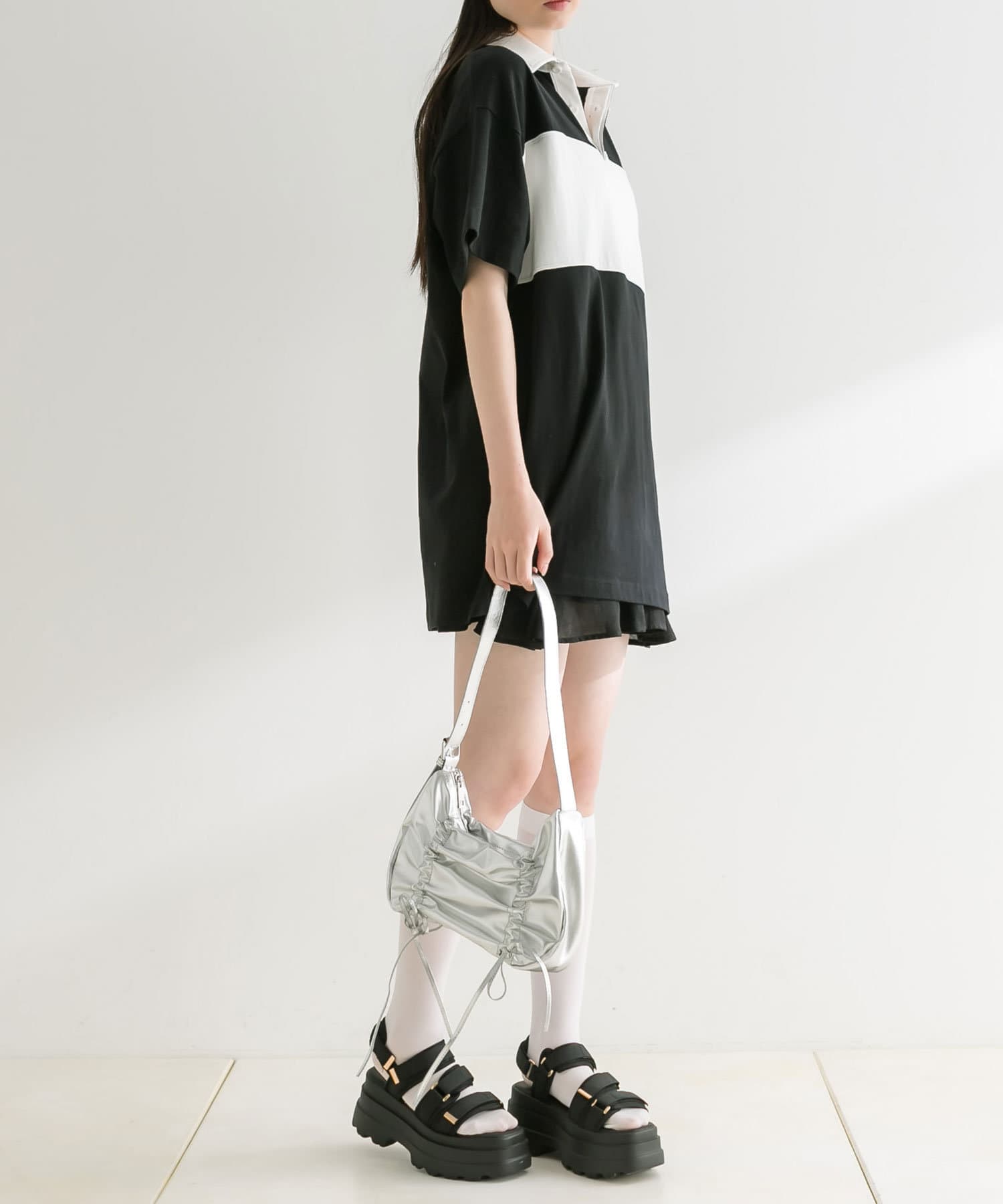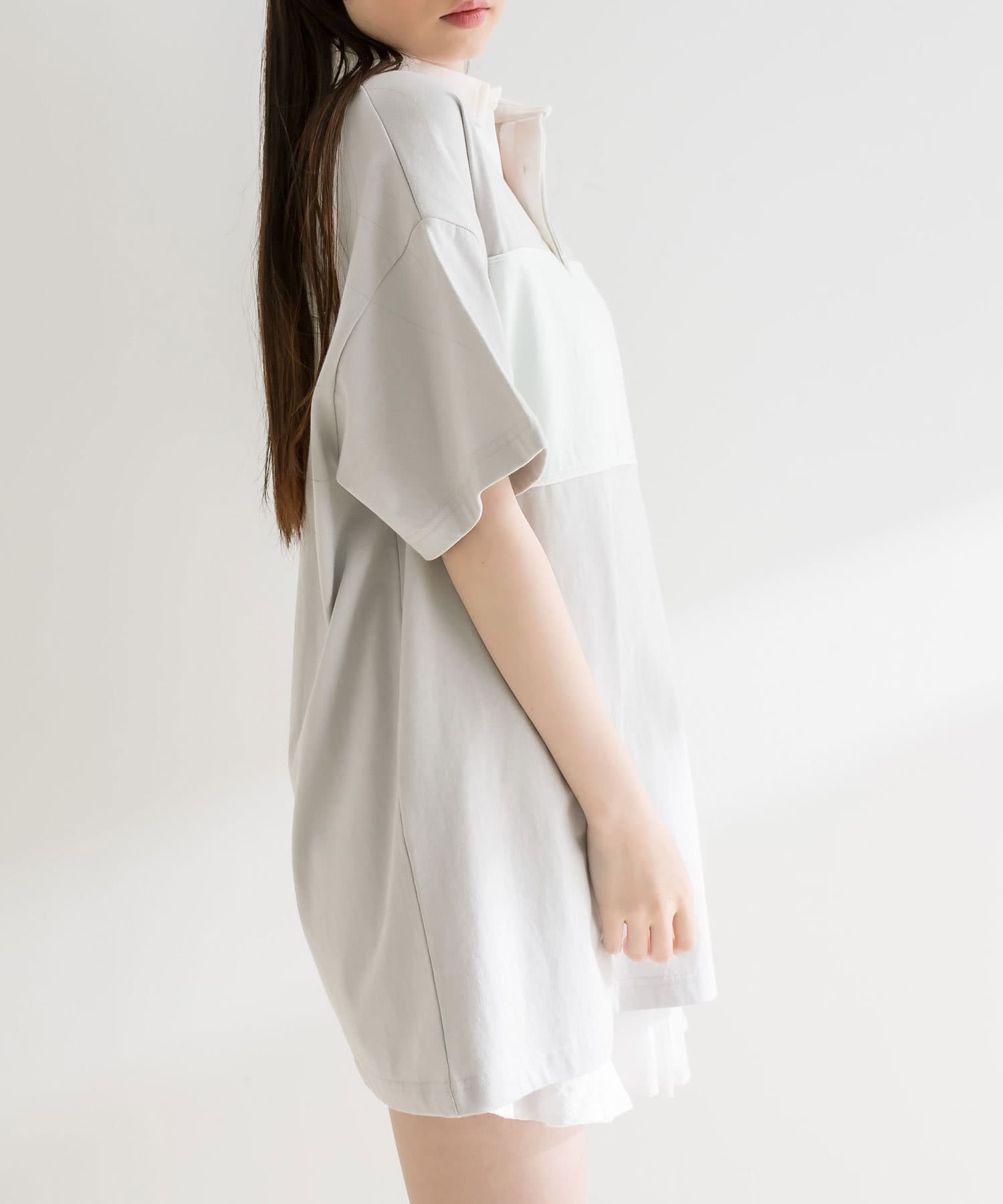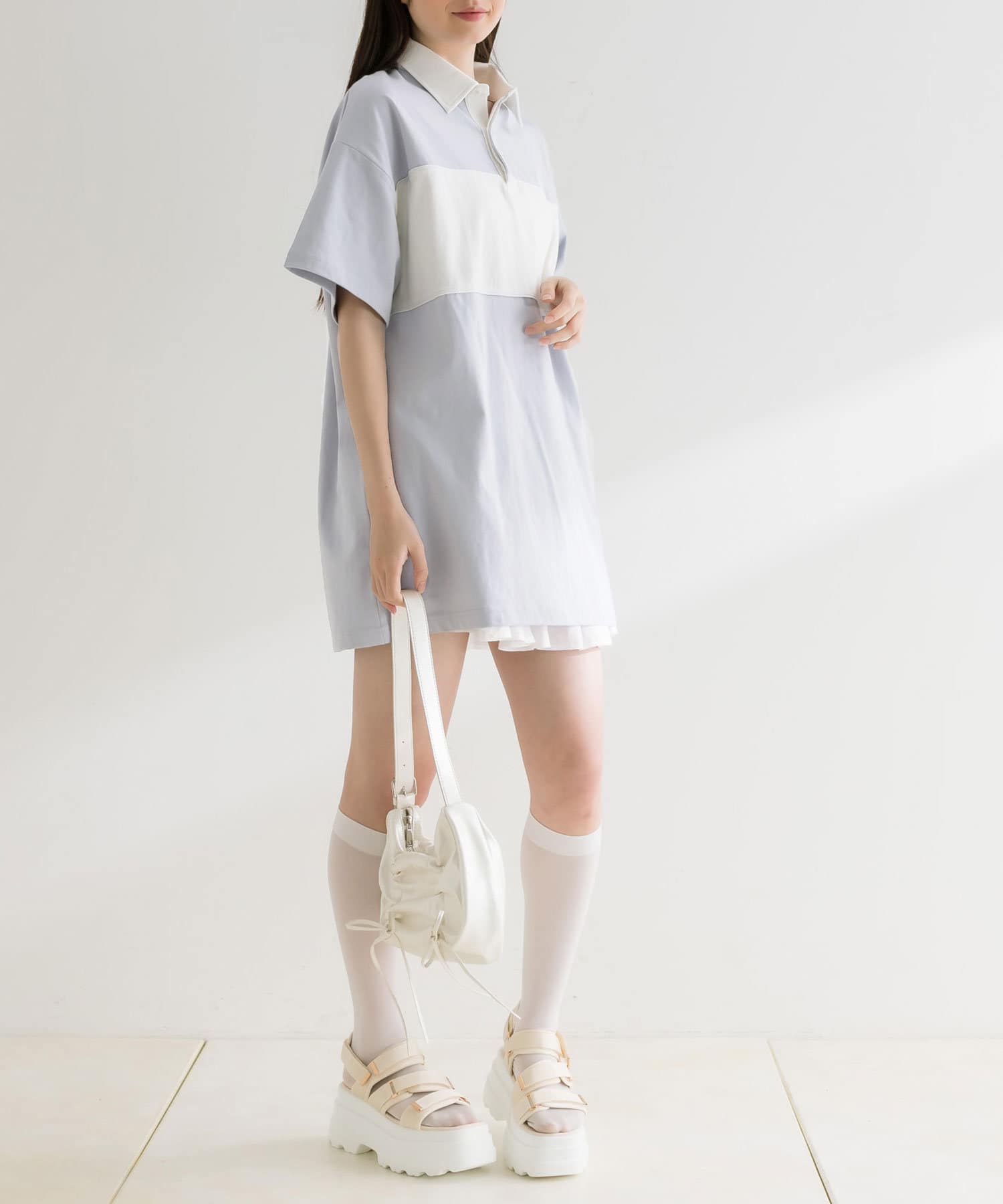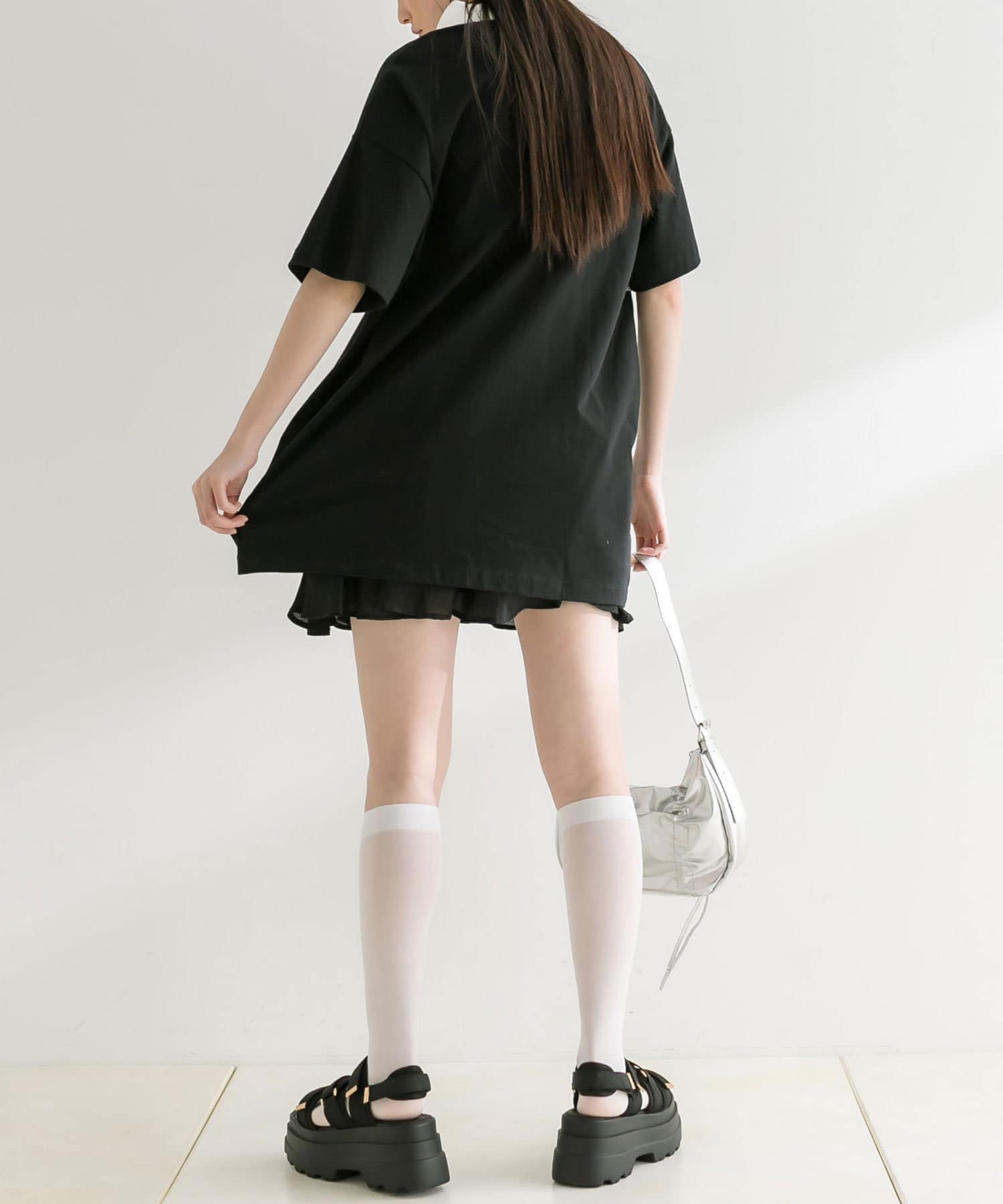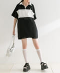 ・ミニボトムを合わせてミニワンピとして着るのがおすすめ。