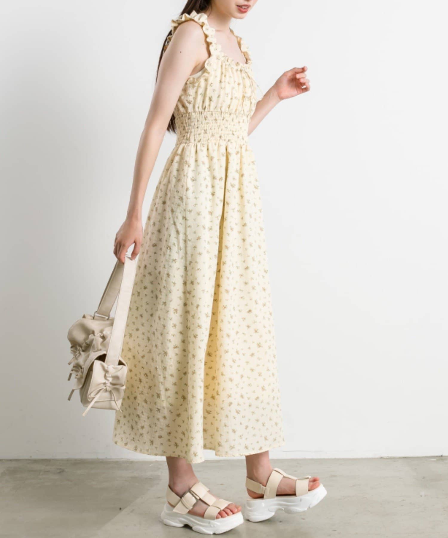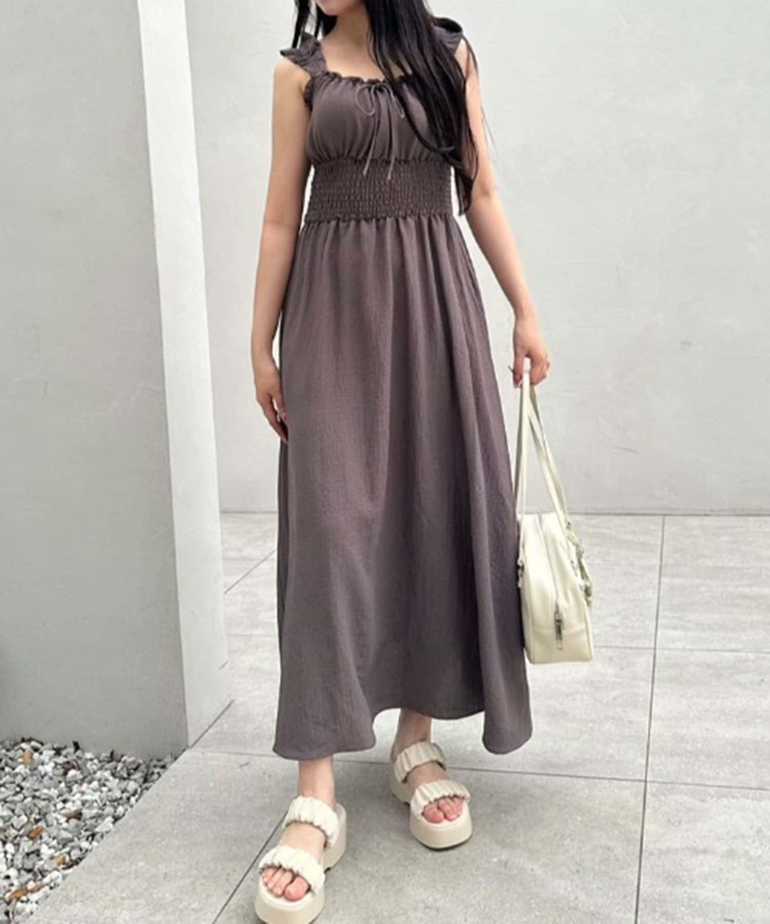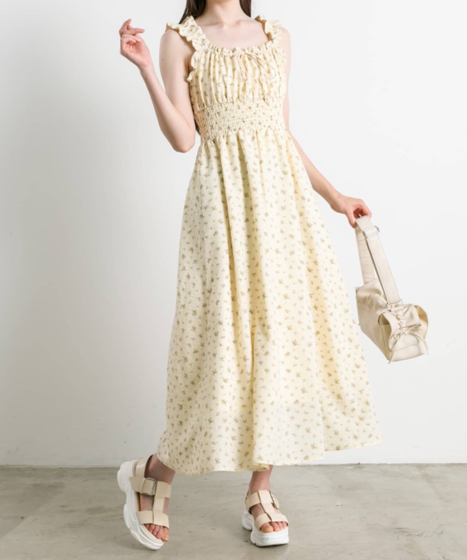 • OLIVE des OLIVE(オリーブ デ オリーブ) 【S/Mサイズ展開】シャーリングワンピース