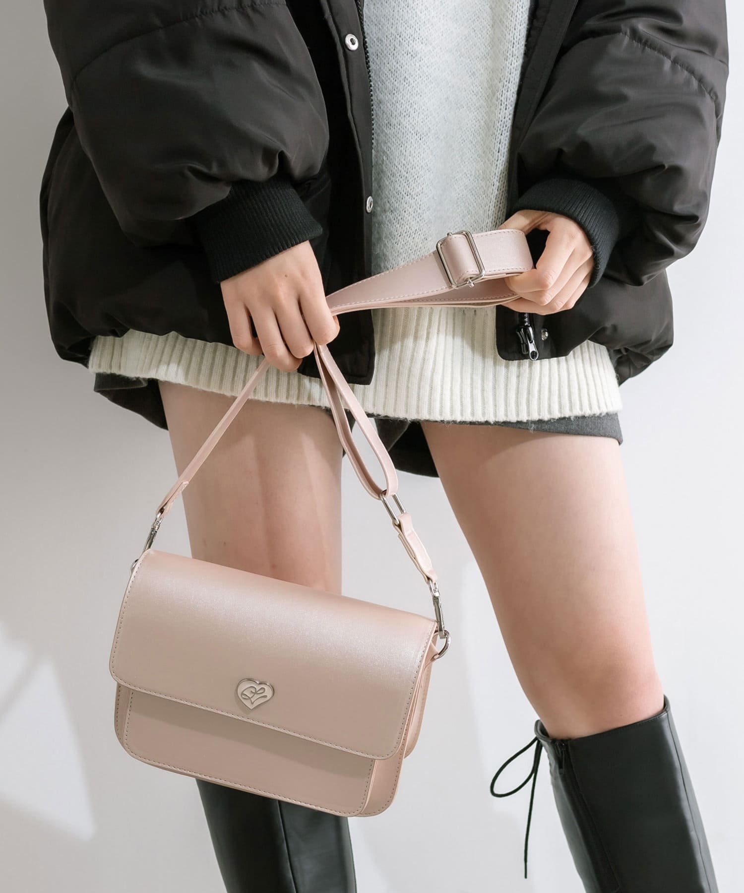 アイボリー/ピンク(ショルダー無地)/ブラックの3色展開