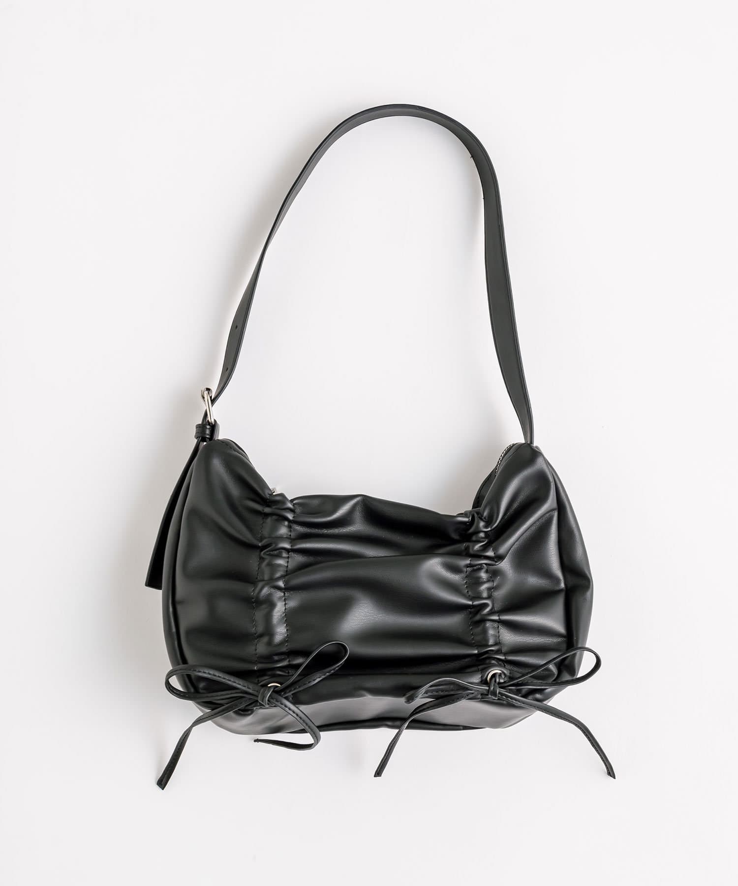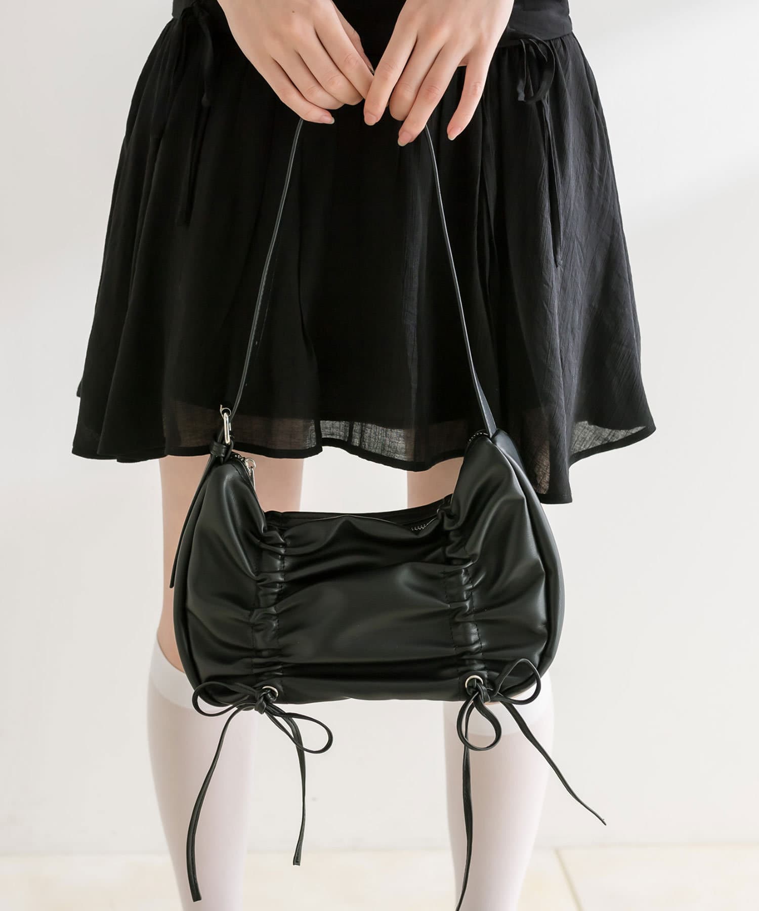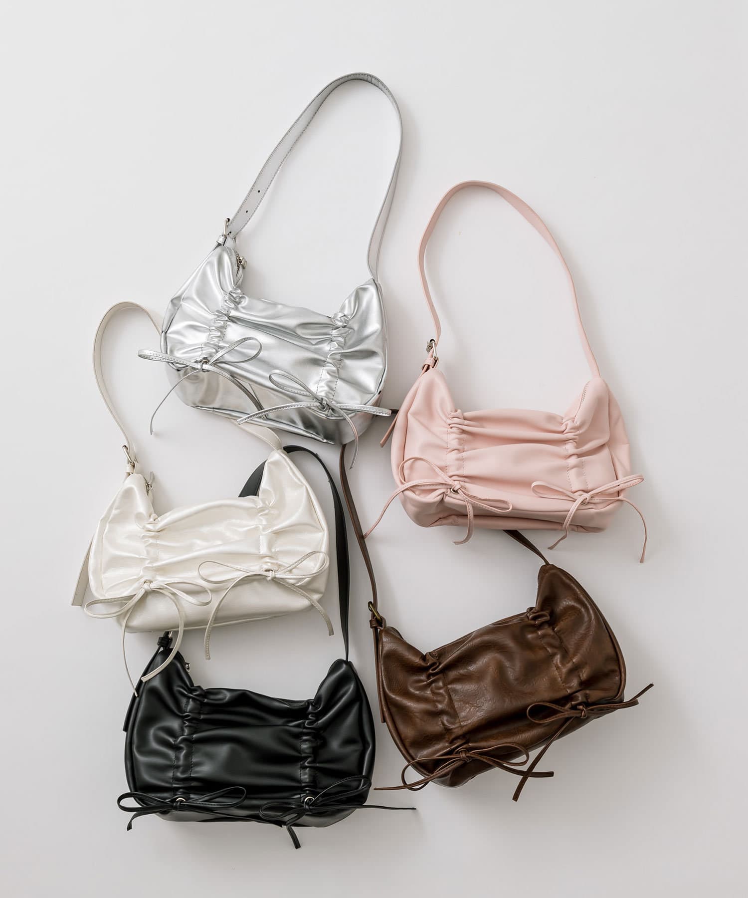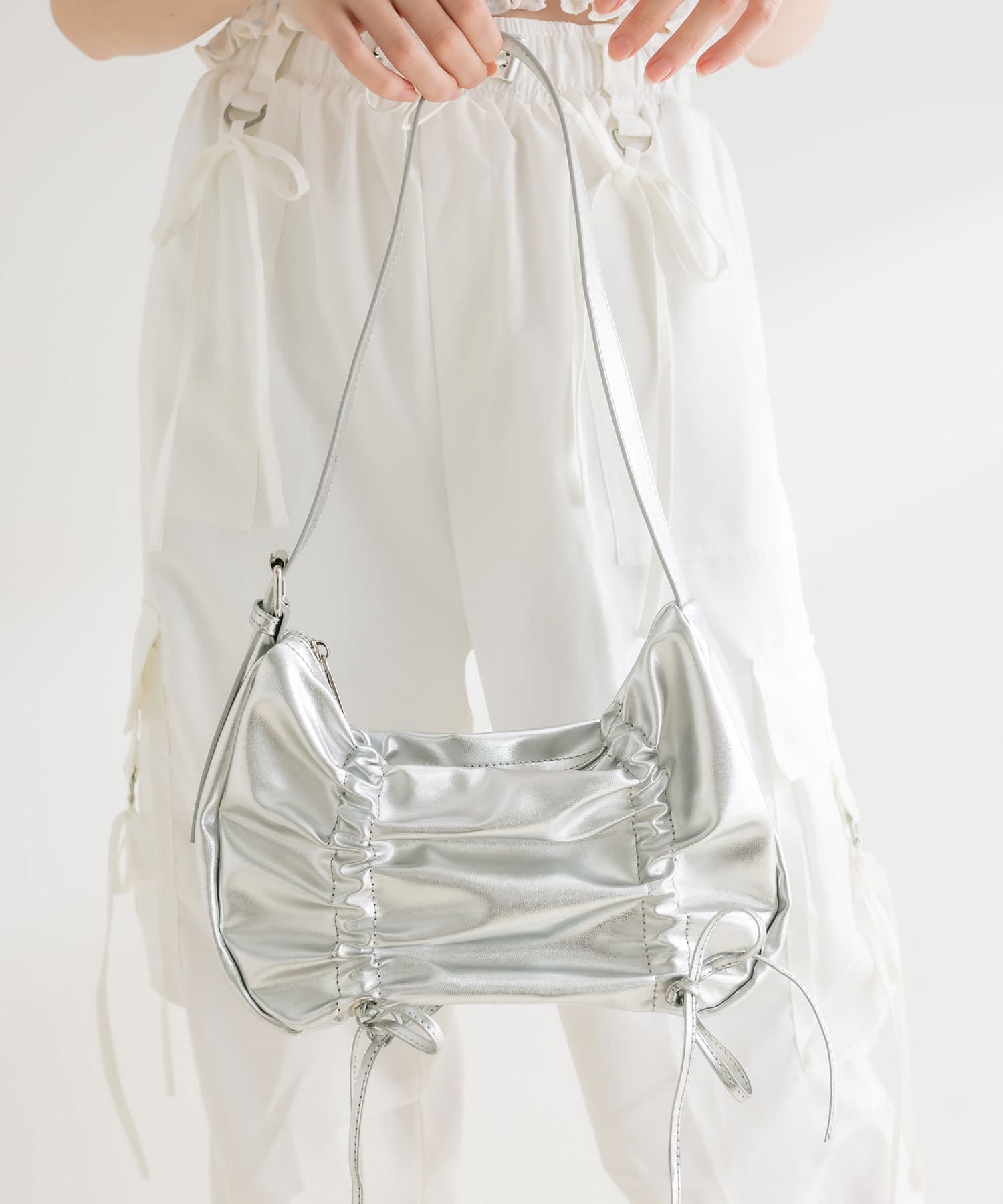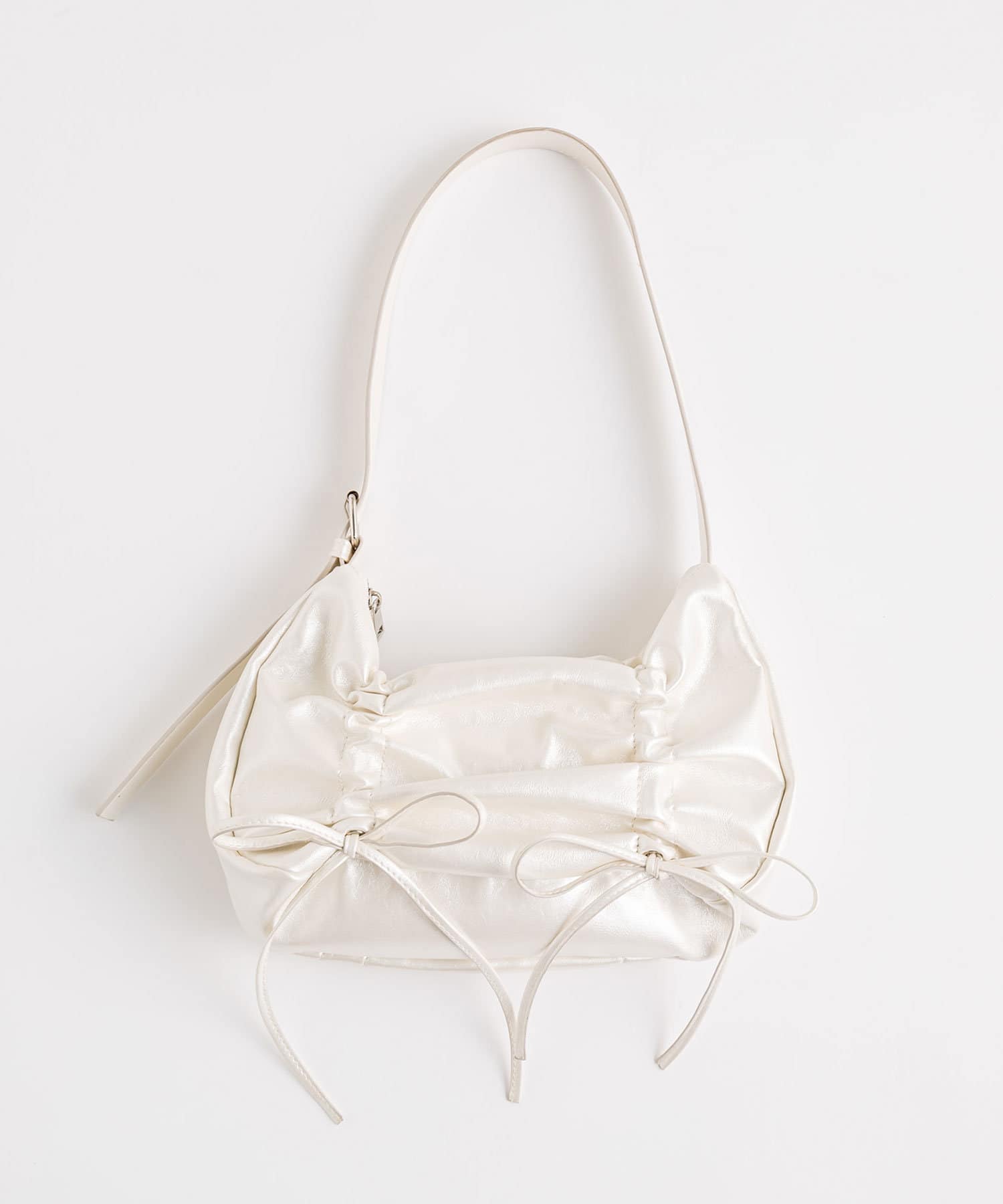 ・ドロストとリボンデザインが目を惹くデザインのバッグ。