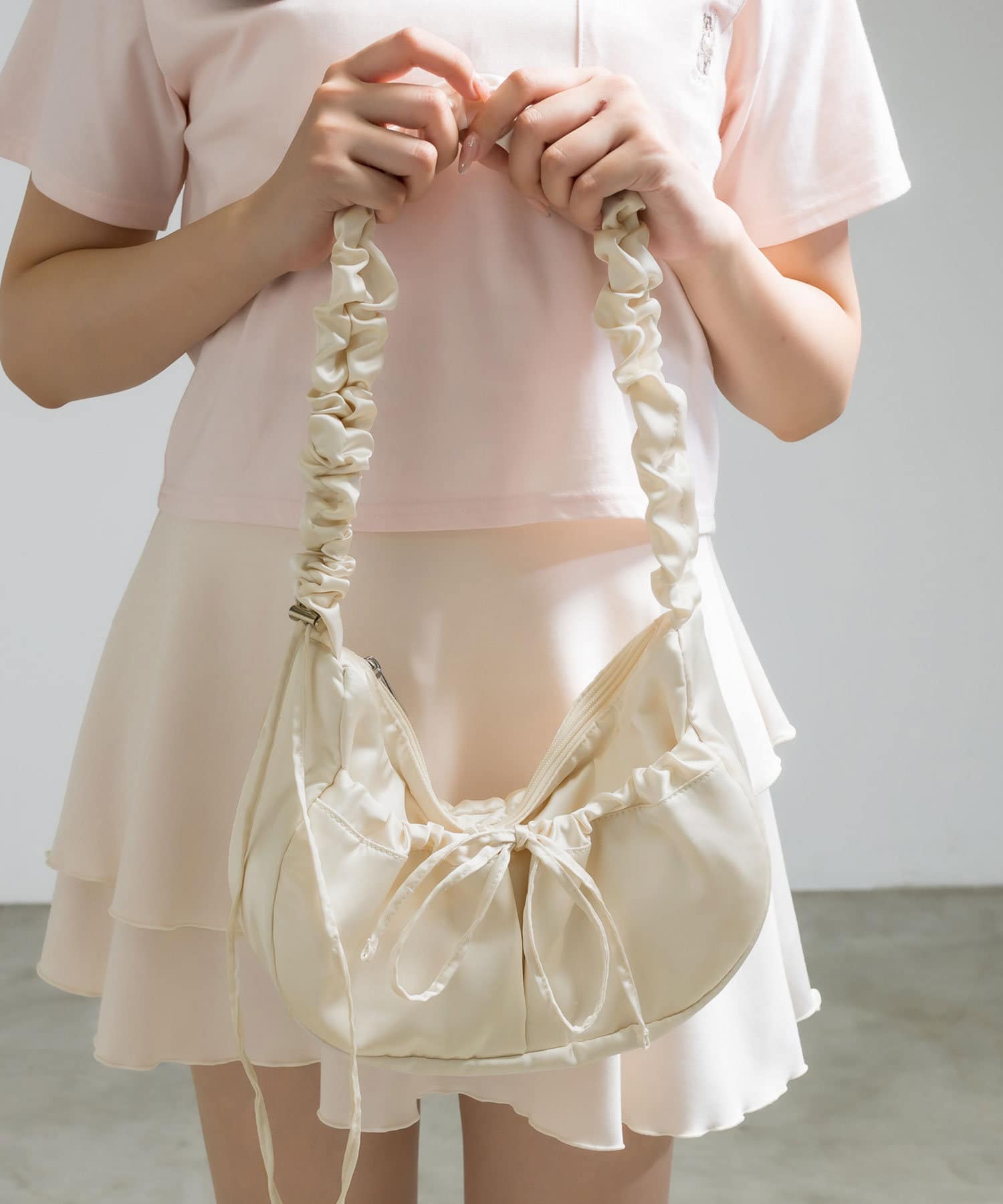 ・トレンドのドロストデザインがポイントのホーボーバッグ。