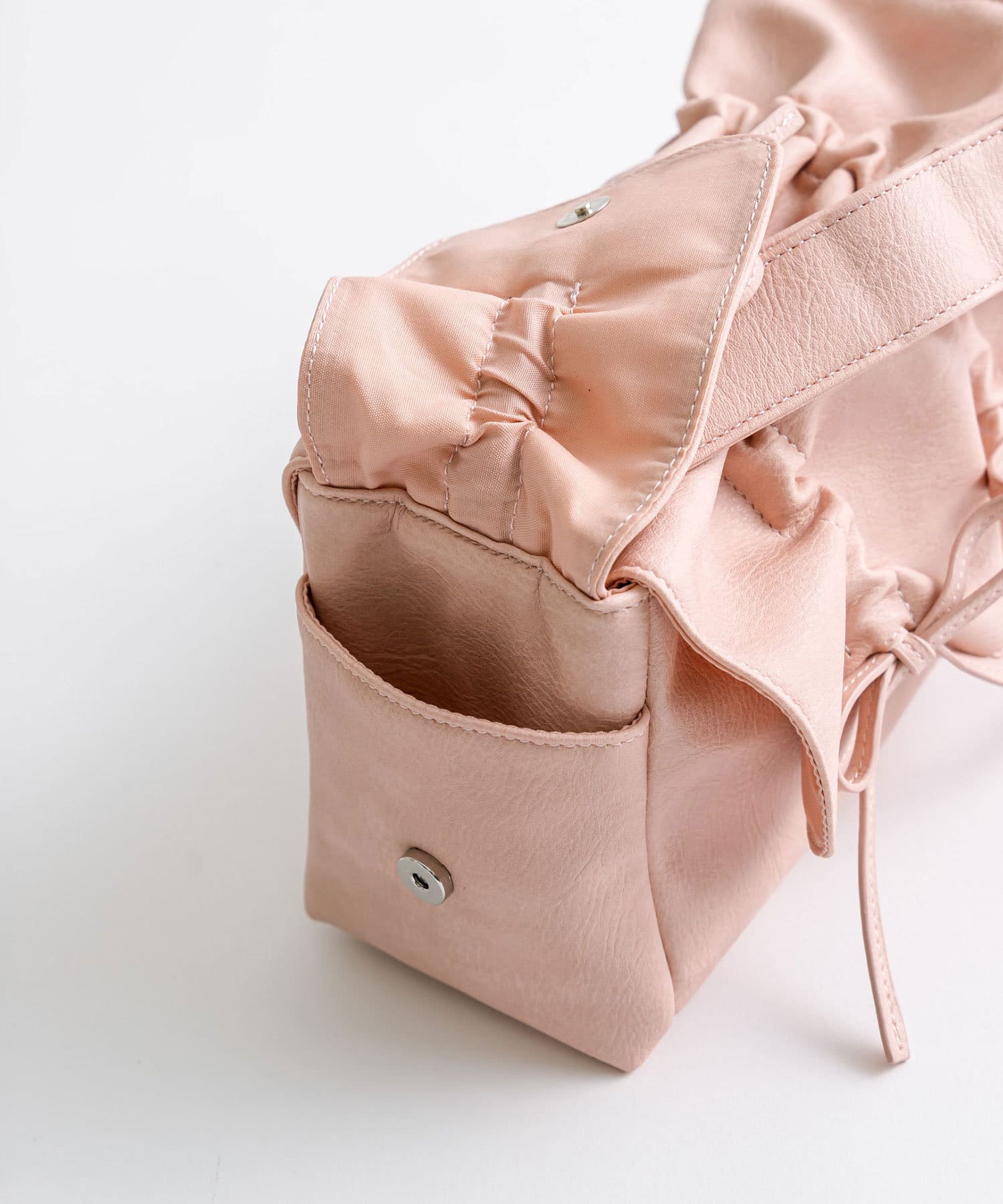 ・両サイドにマグネットボタン付きのポケットがあり、さっと取り出したい小物を収納できます。