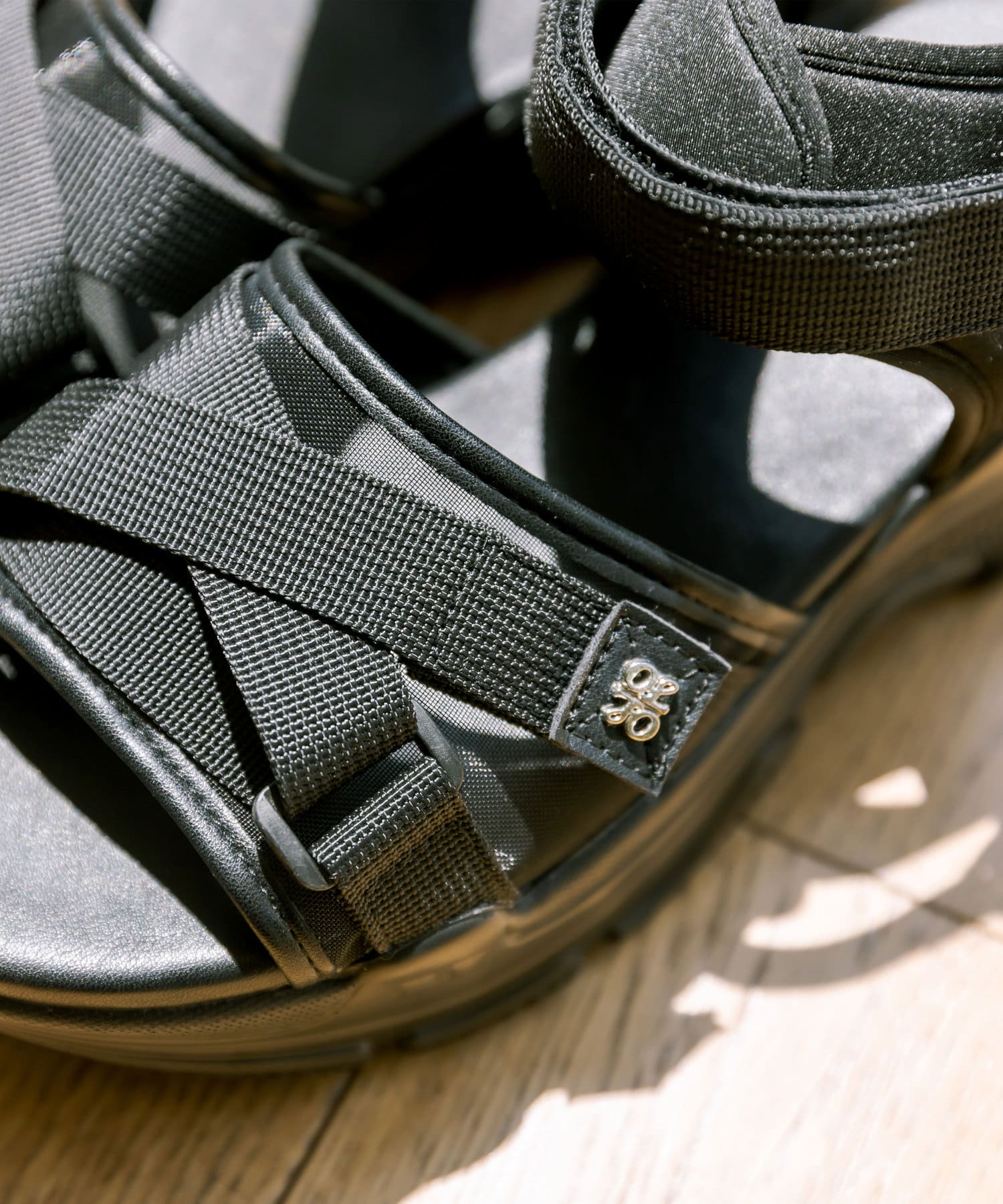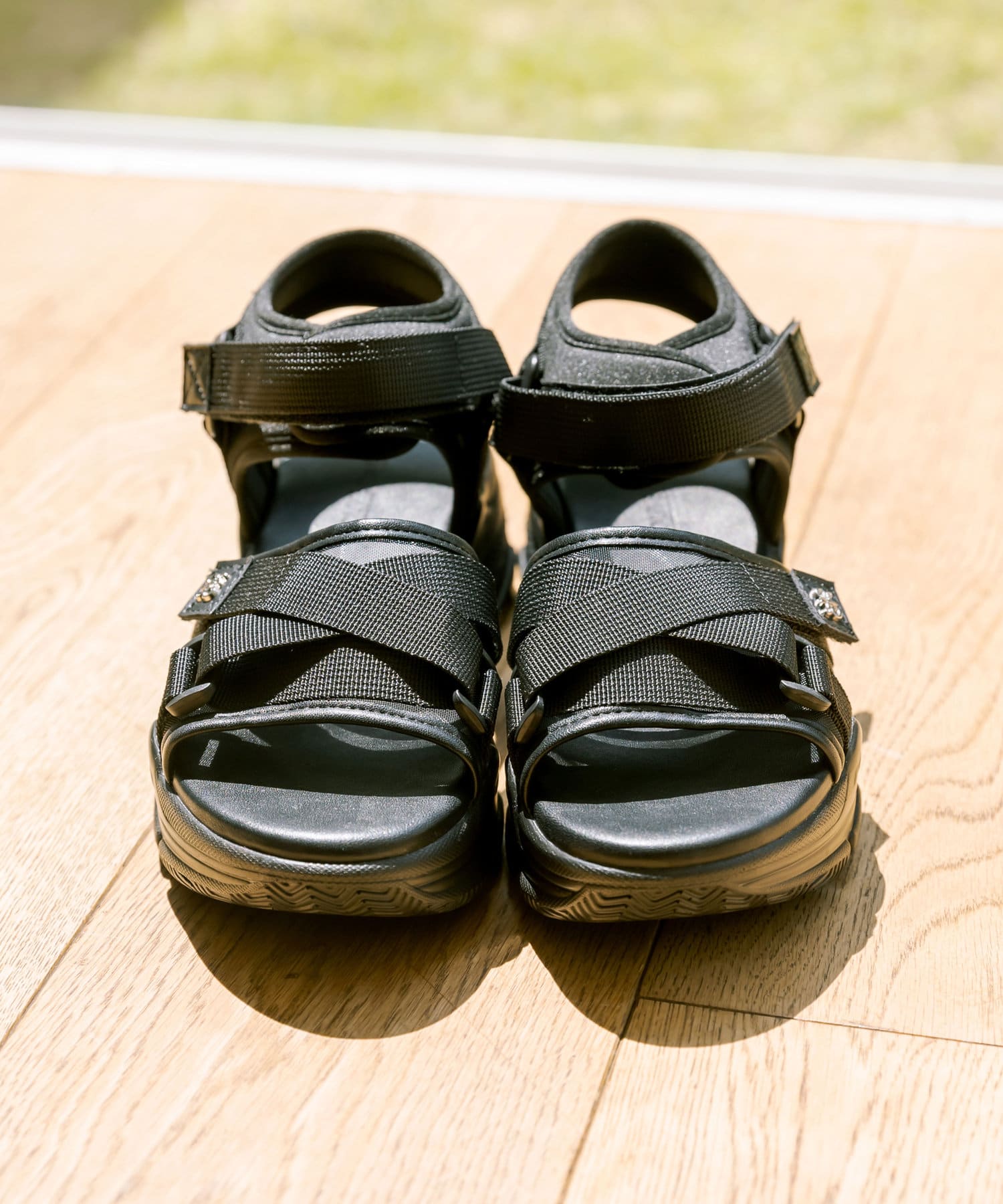 ・オリジナルのエンブレムがワンポイントのスポーツサンダル。