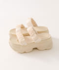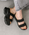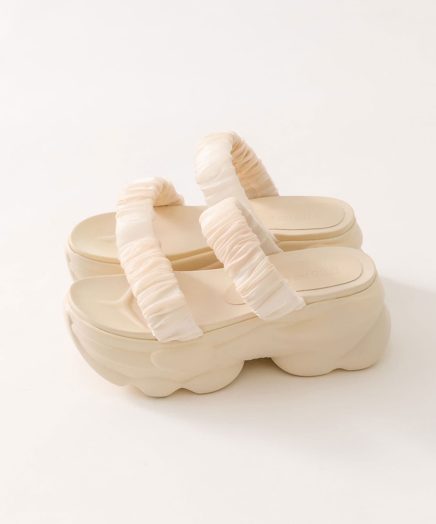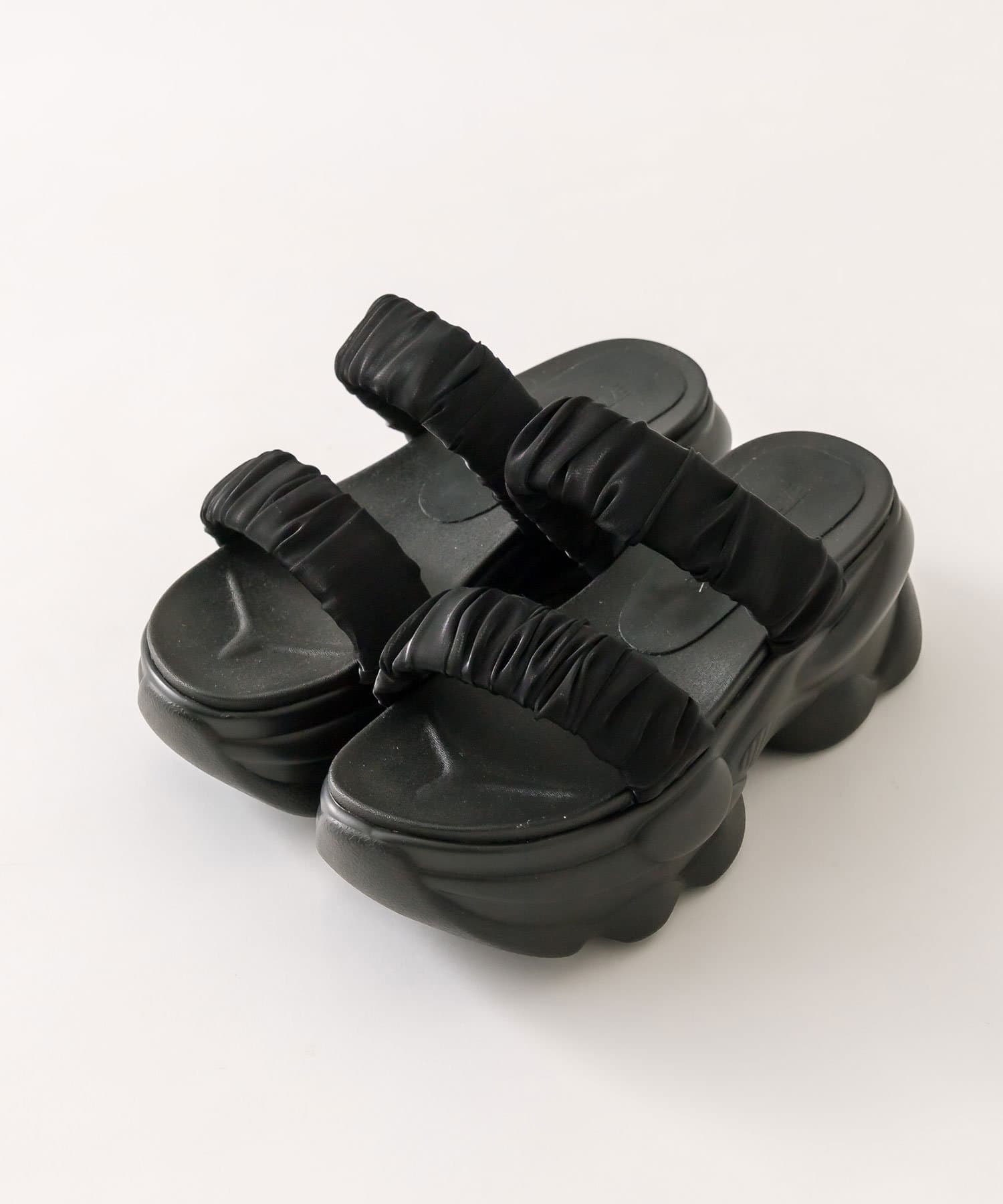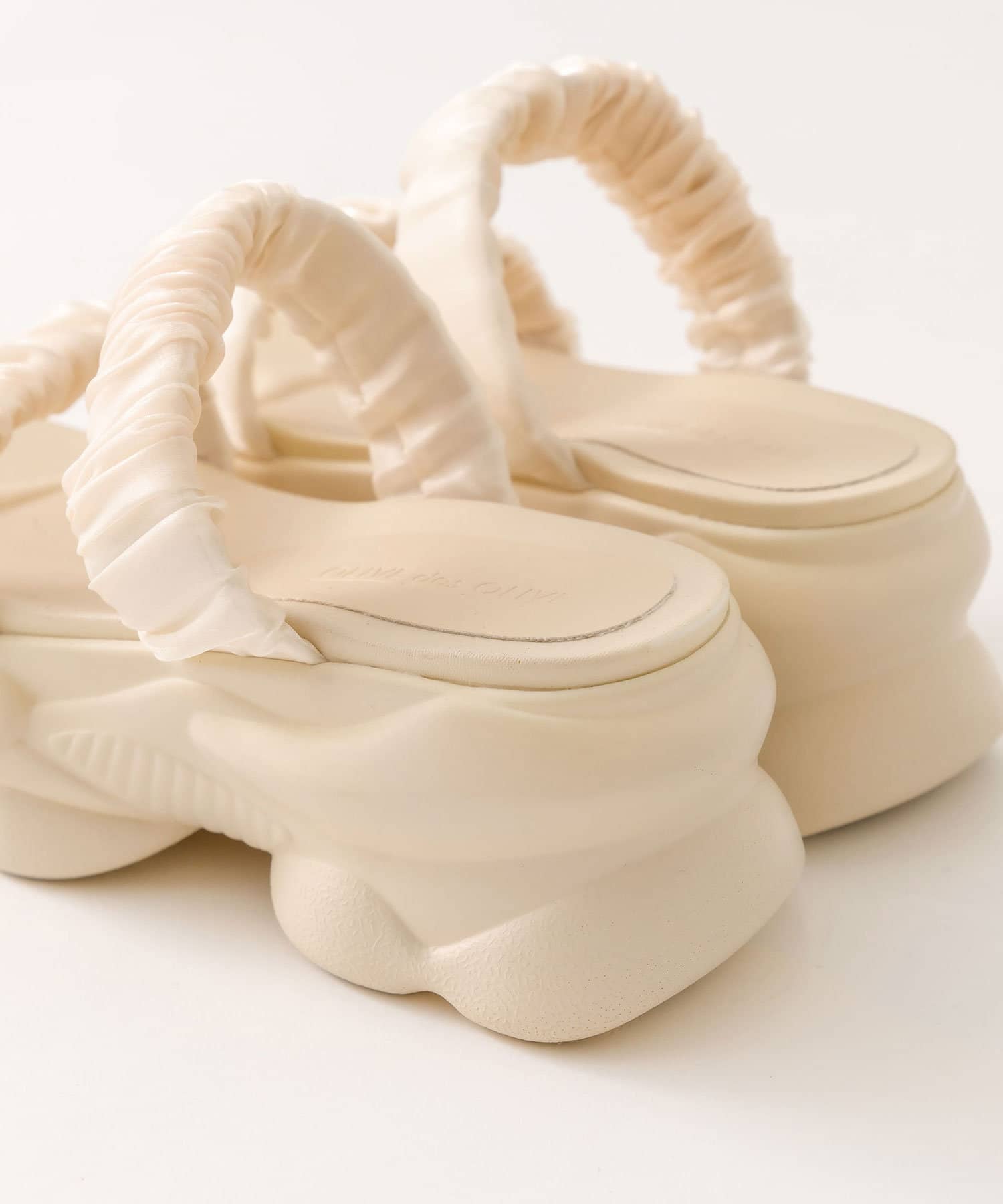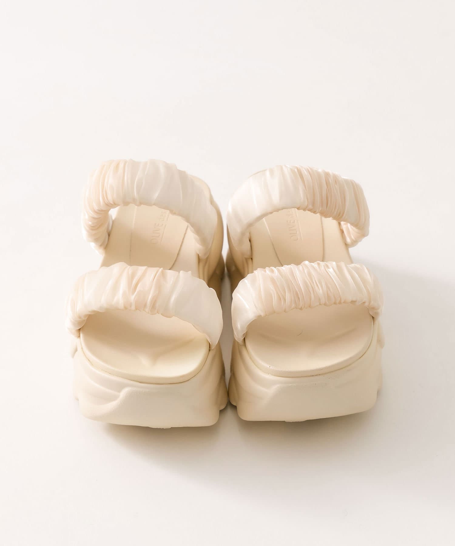 ・ギャザーを寄せたデザインがかわいいサンダル。