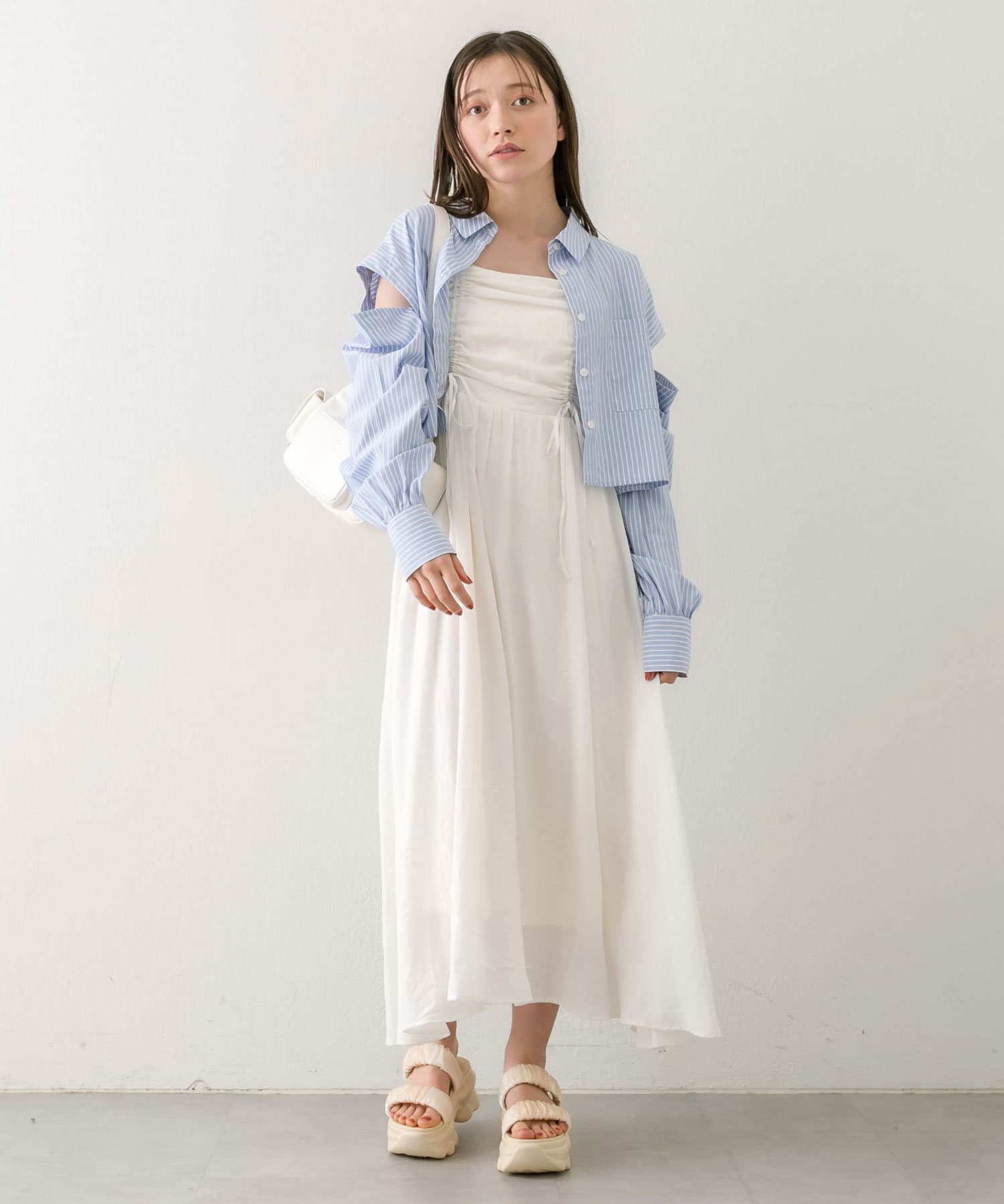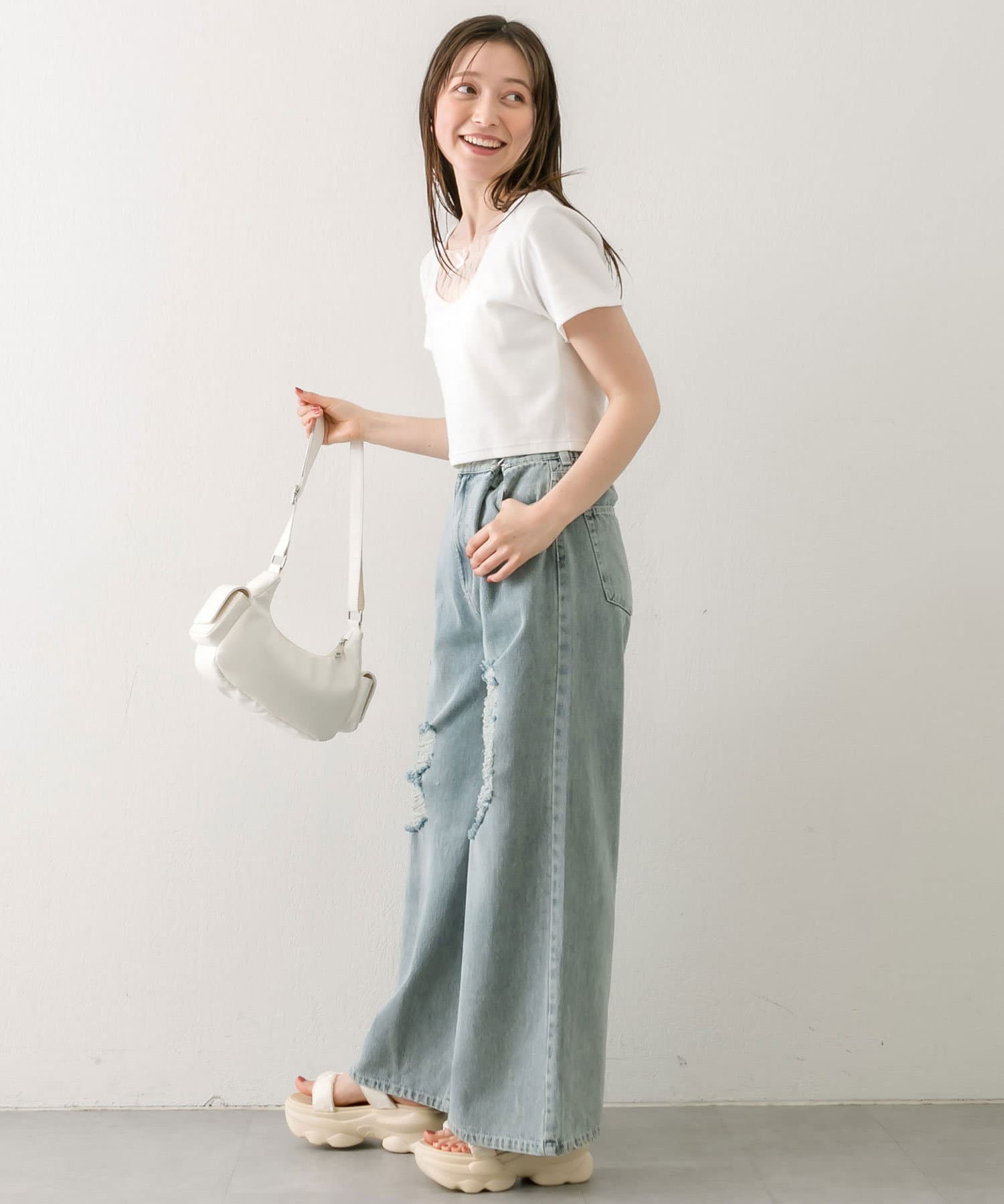 ・ロング丈のボトムに合わせると、素足が見えることでコーデに抜け感をプラスできます。