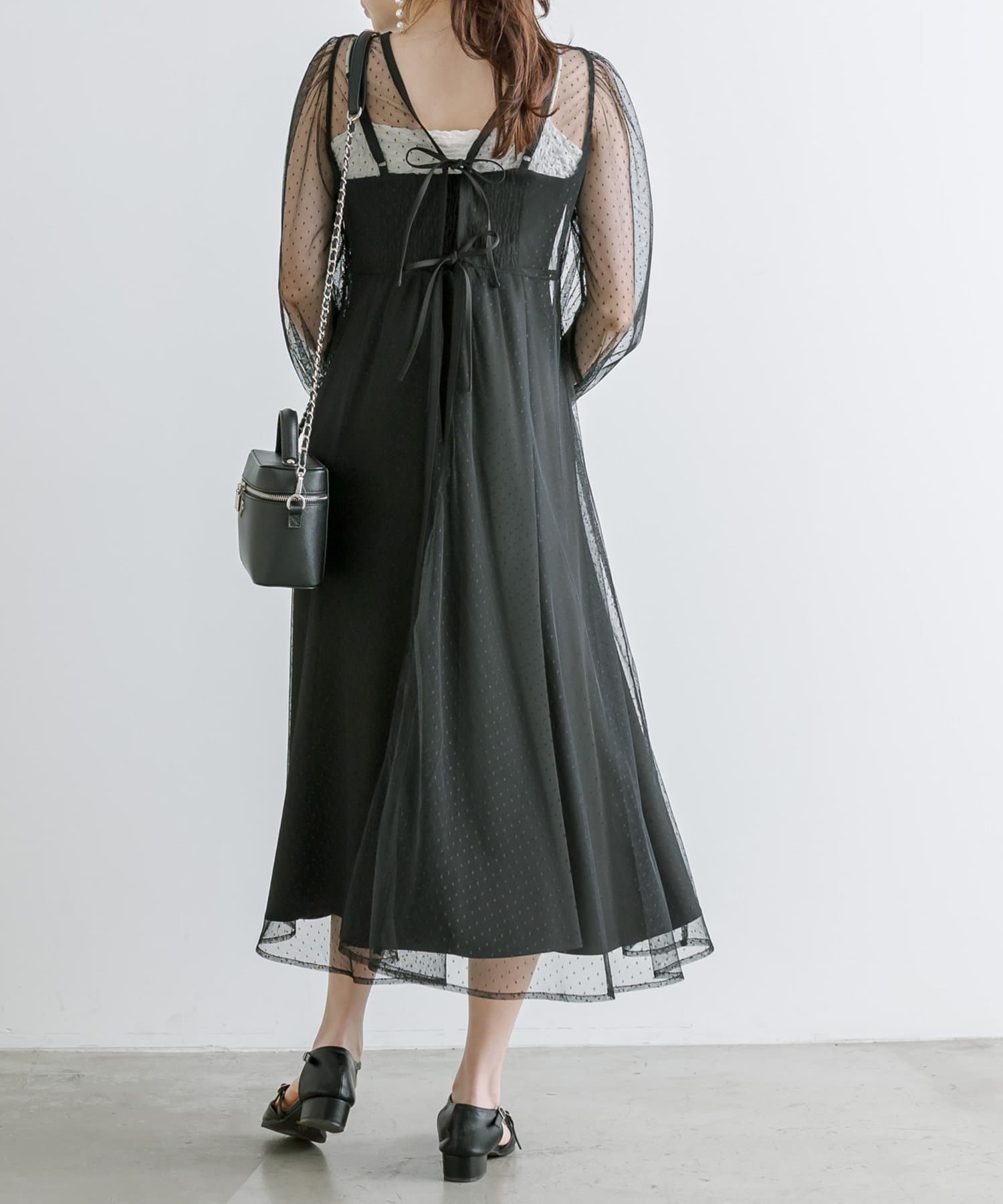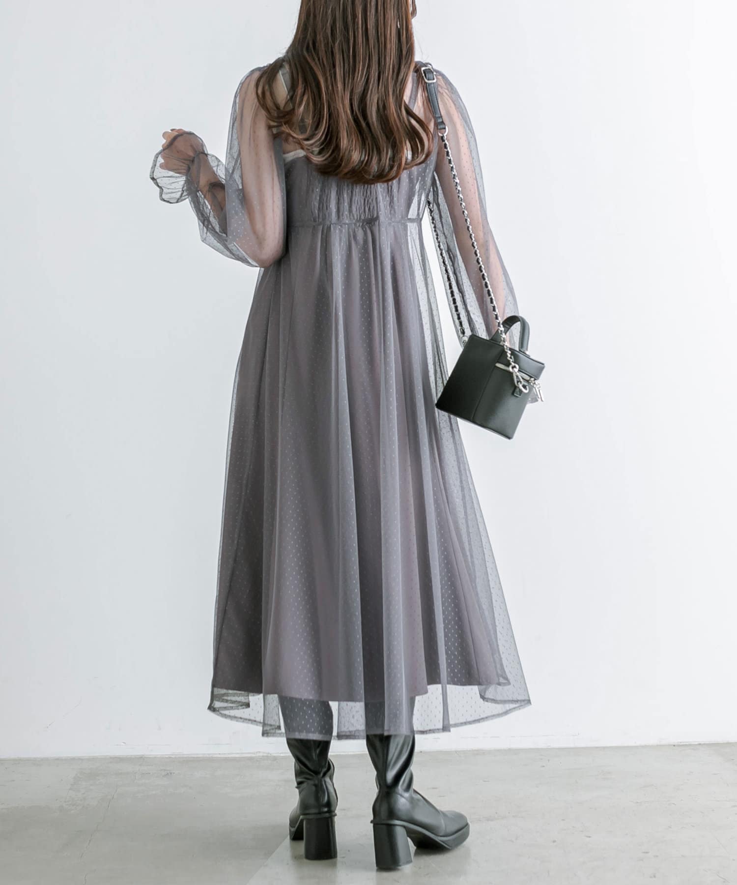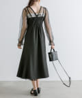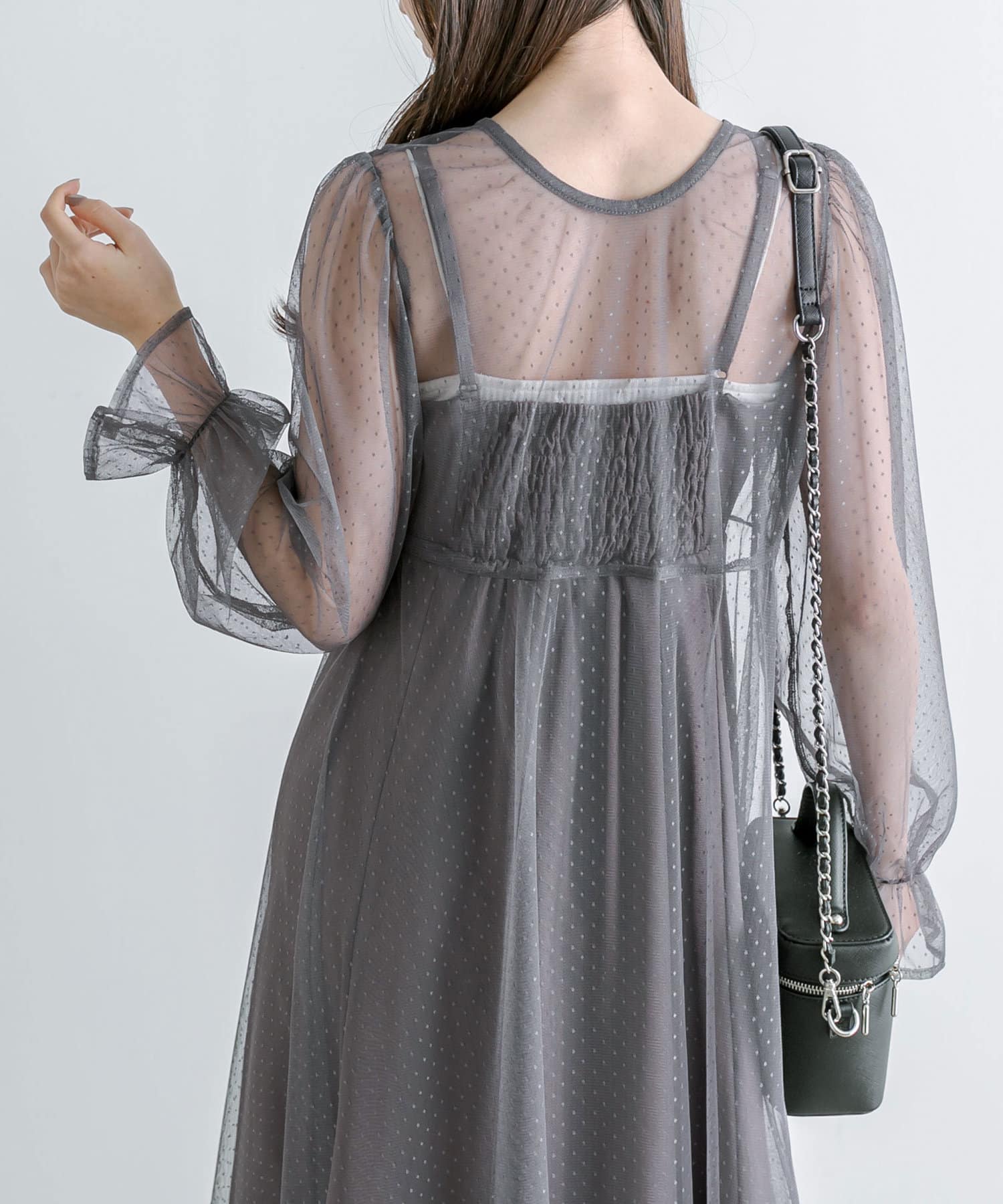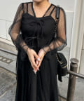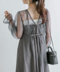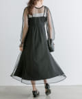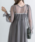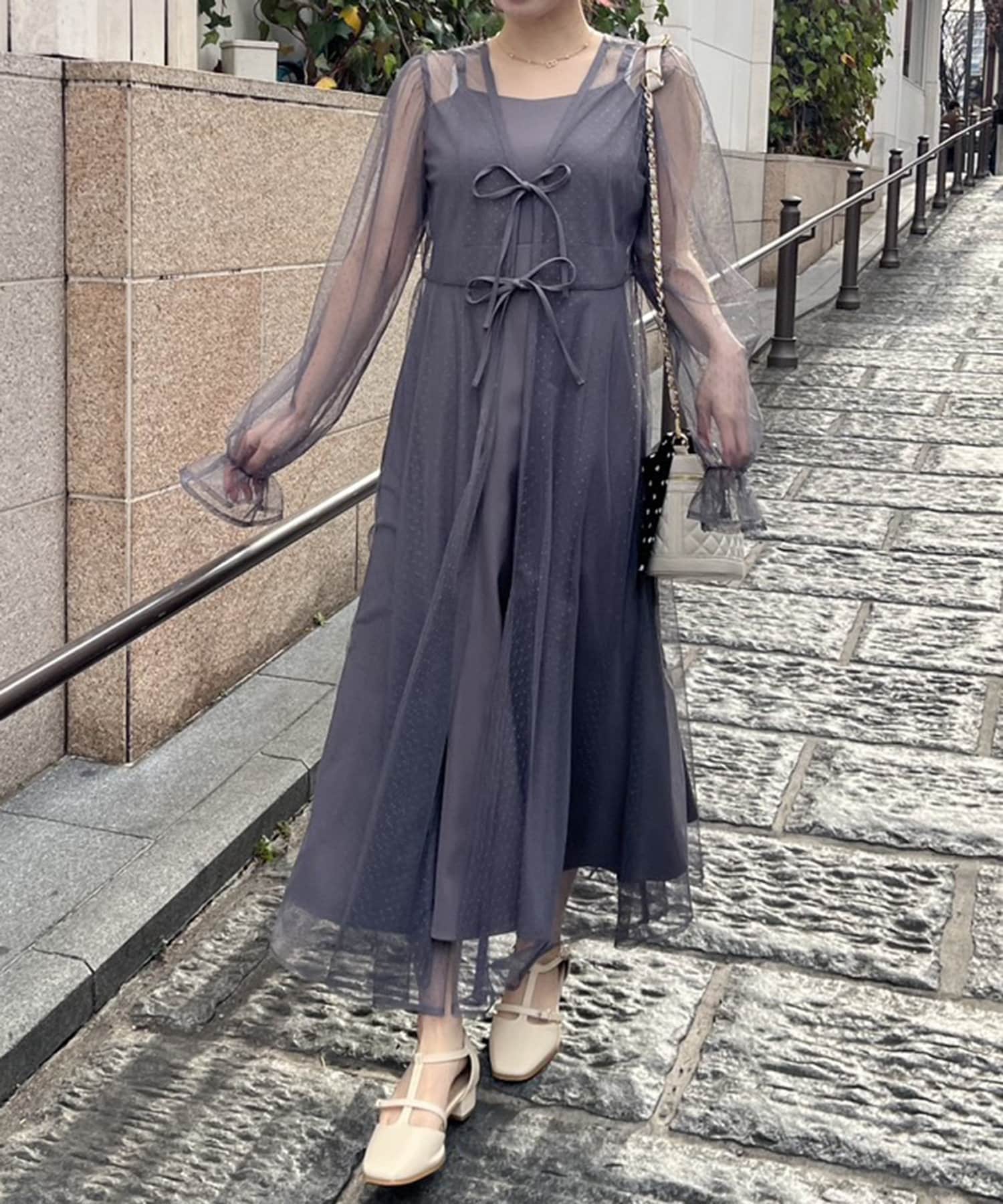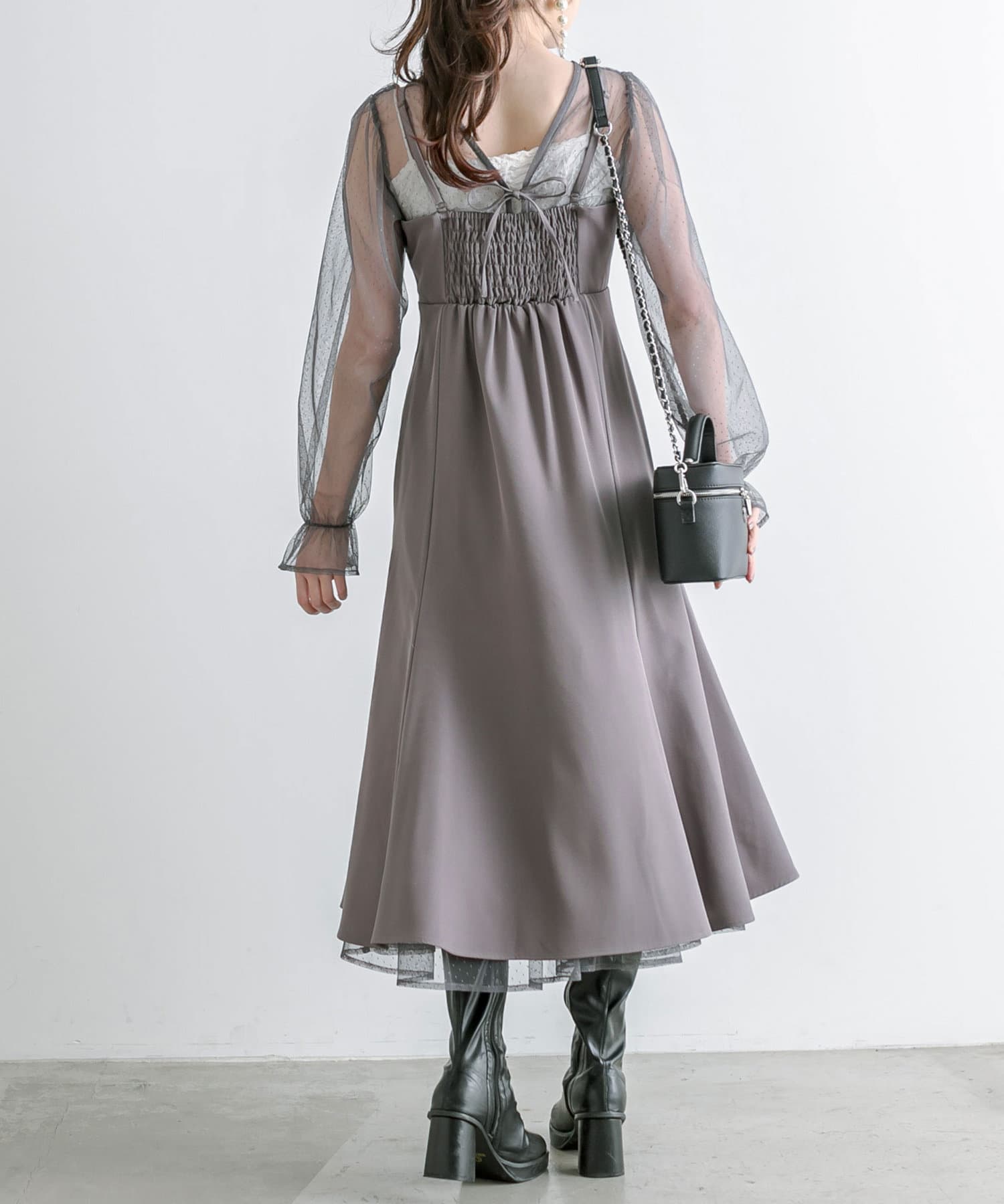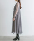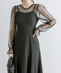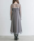 ・透け感のあるドット柄チュールと無地のキャミワンピースがセットに。