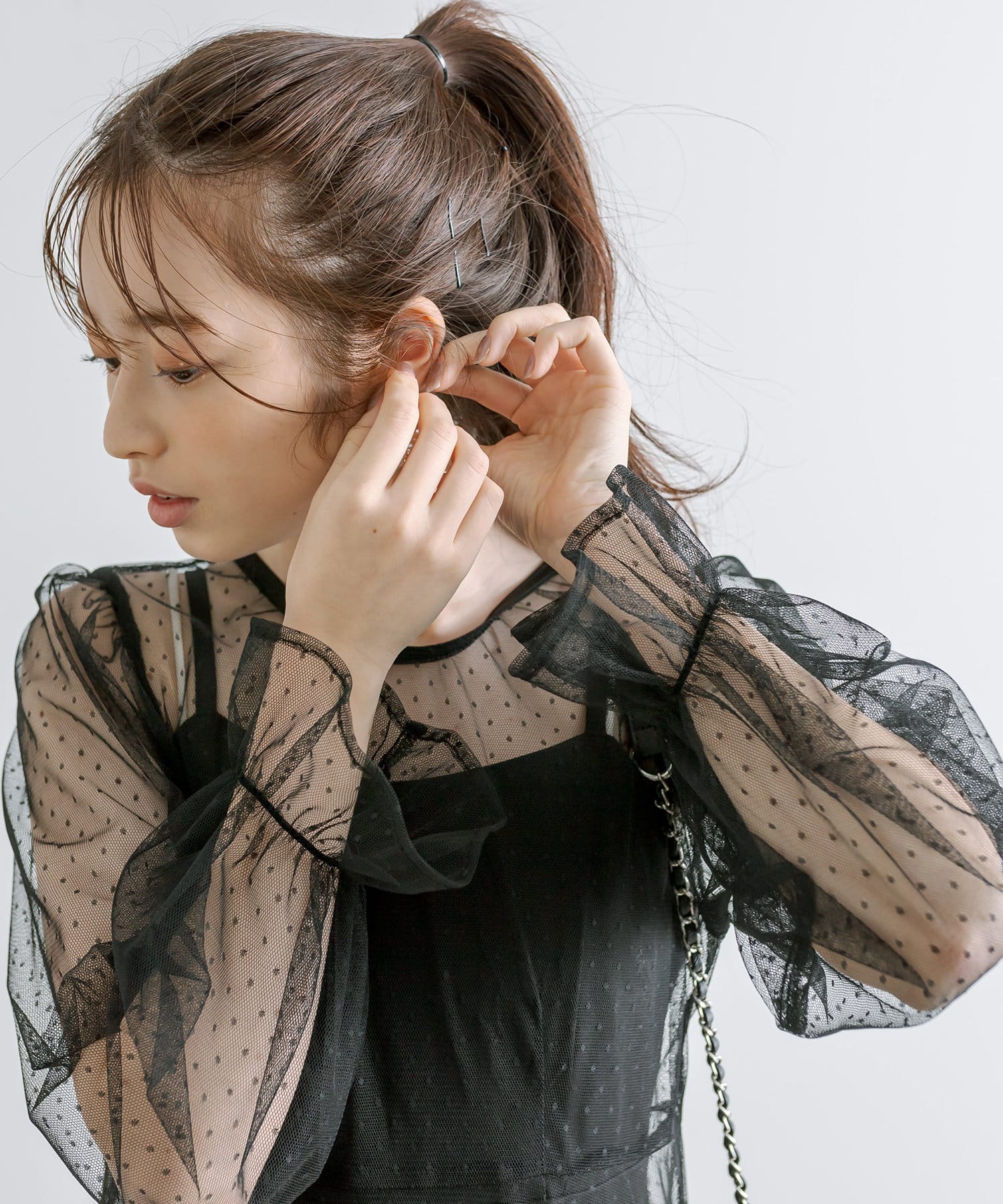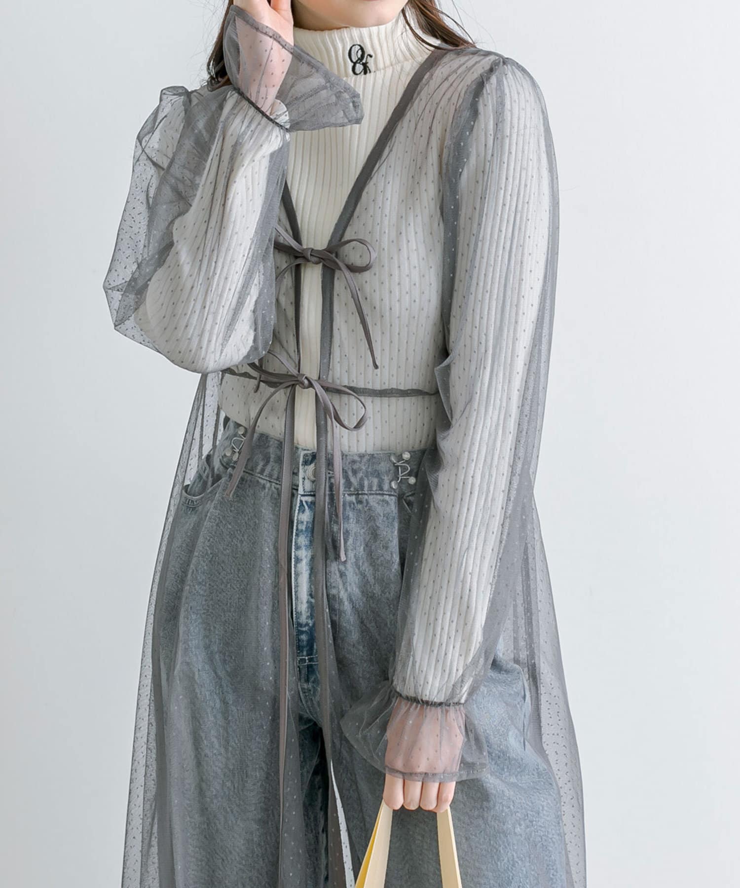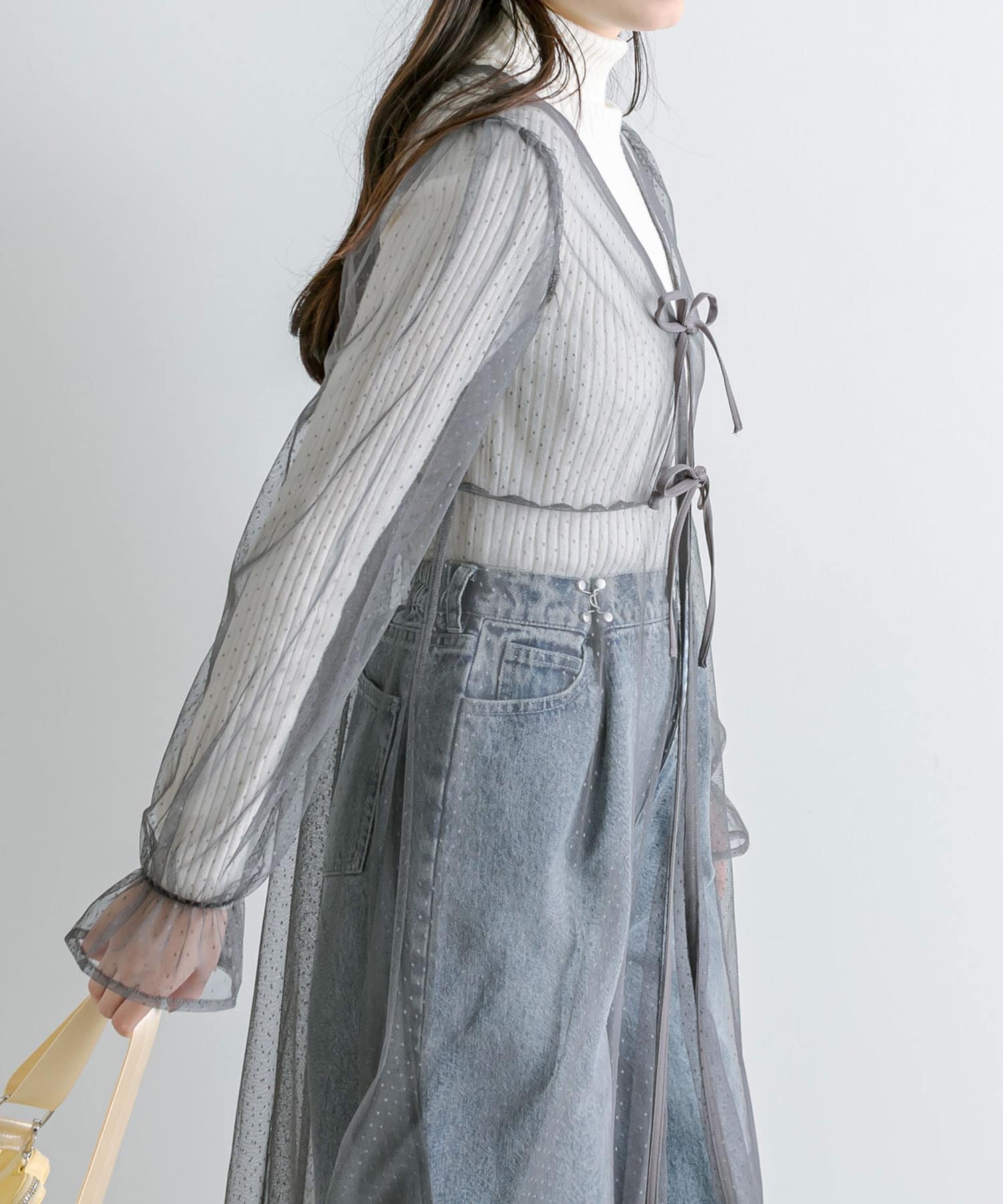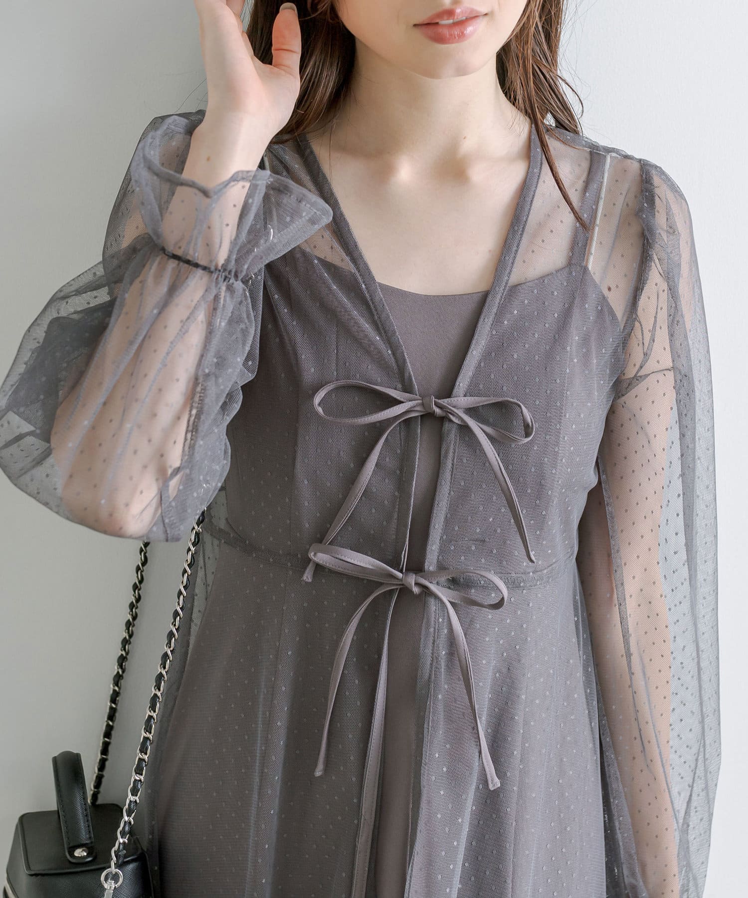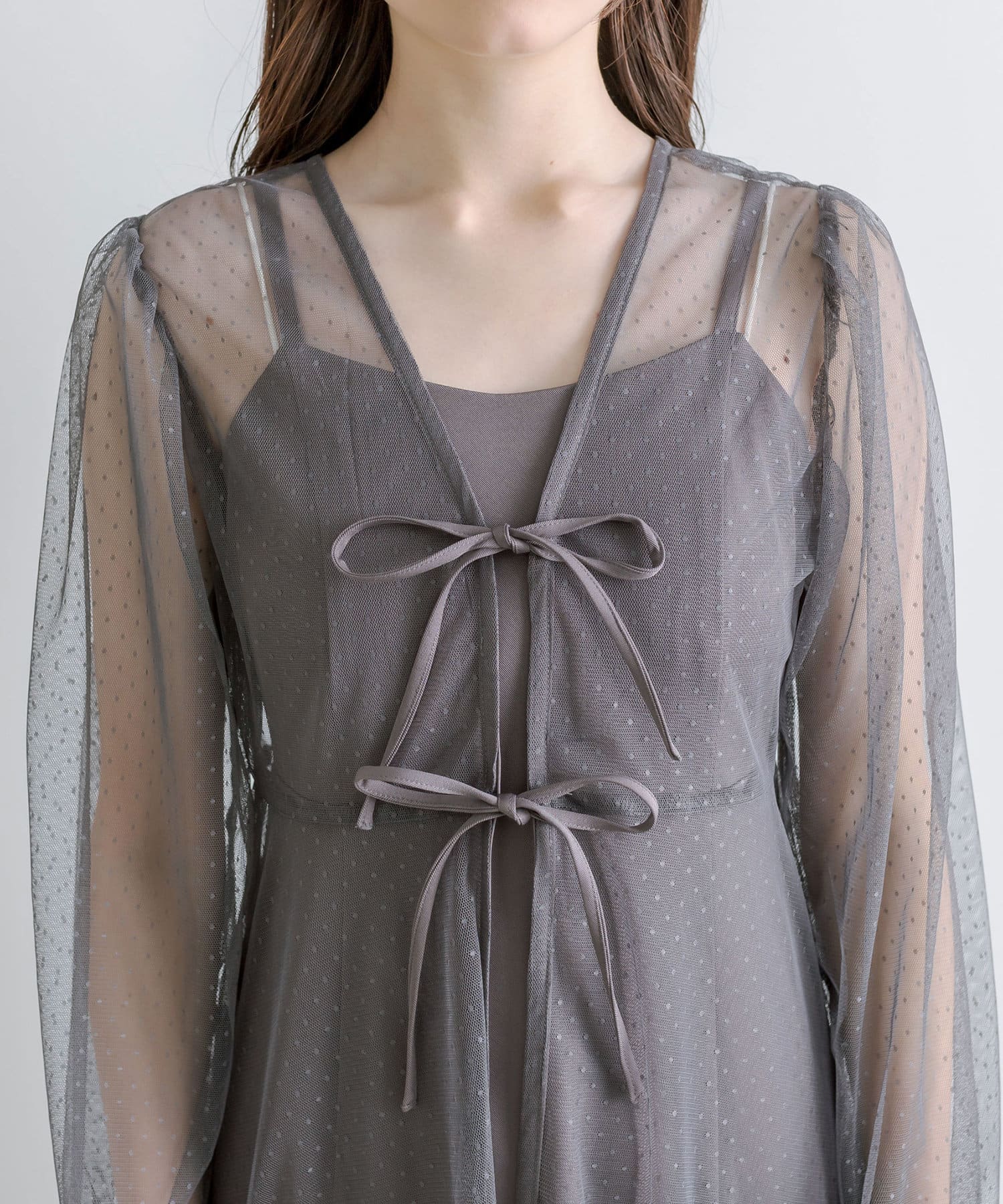 ・程よいシアー感と、ダブルリボンが女性らしさを演出。