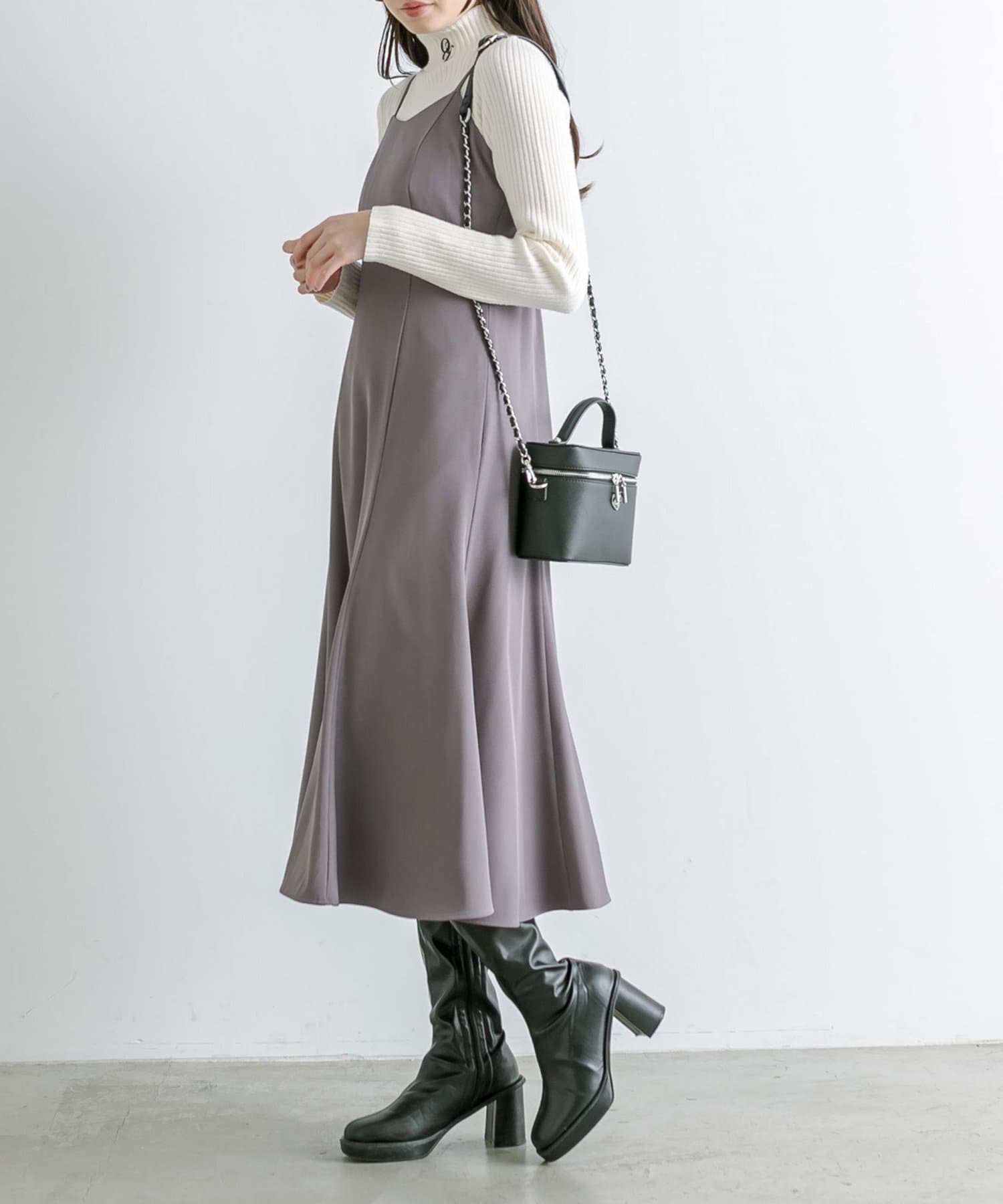 ・キャミワンピースは中にタートルインナーを合わせればデイリー使いも◎