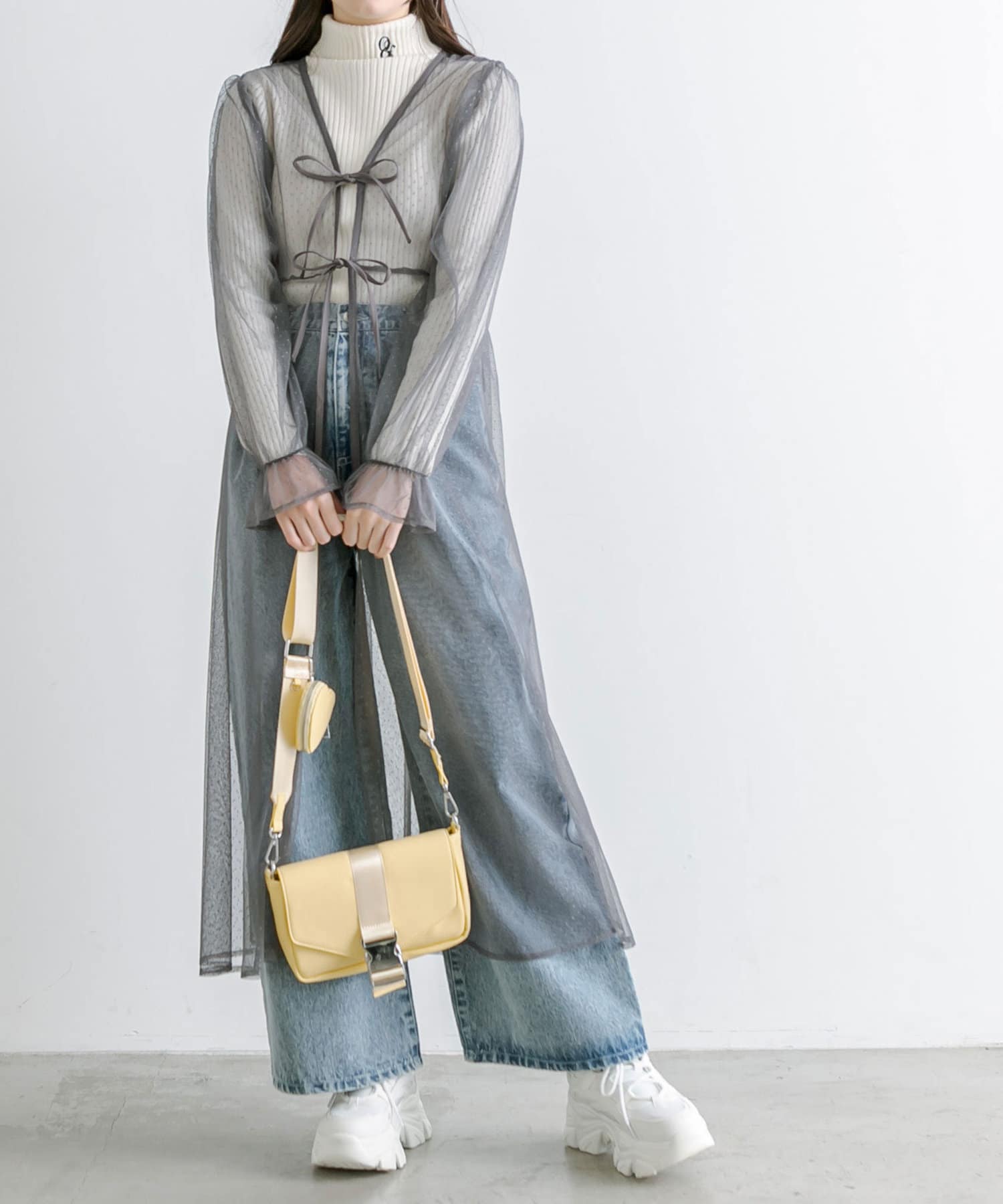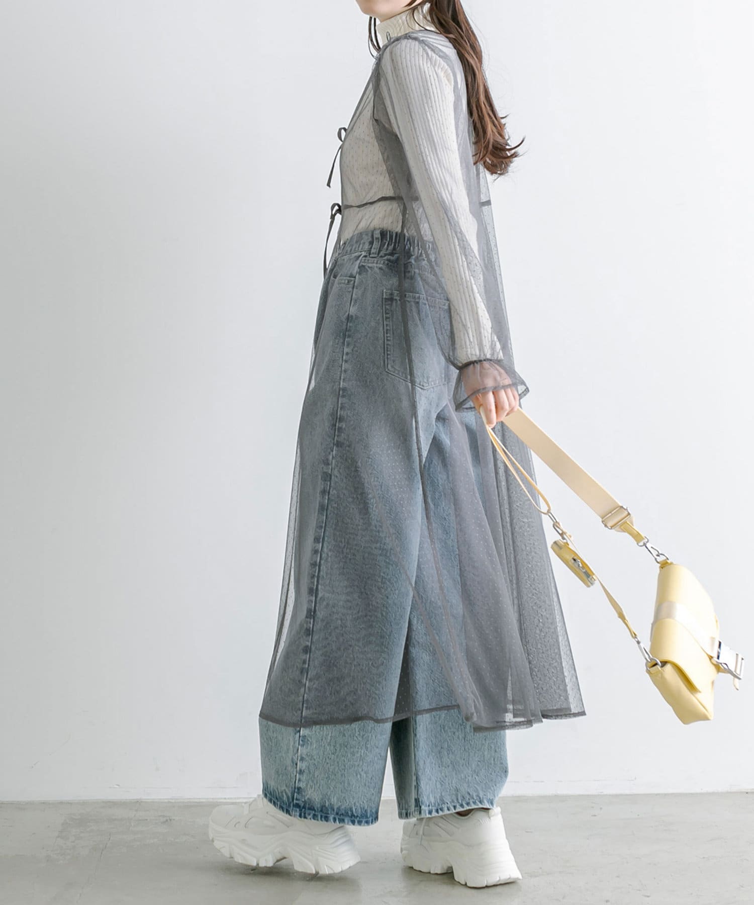 ・チュールはインナーとデニムパンツの上から羽織ってカジュアルに着ても可愛いです。