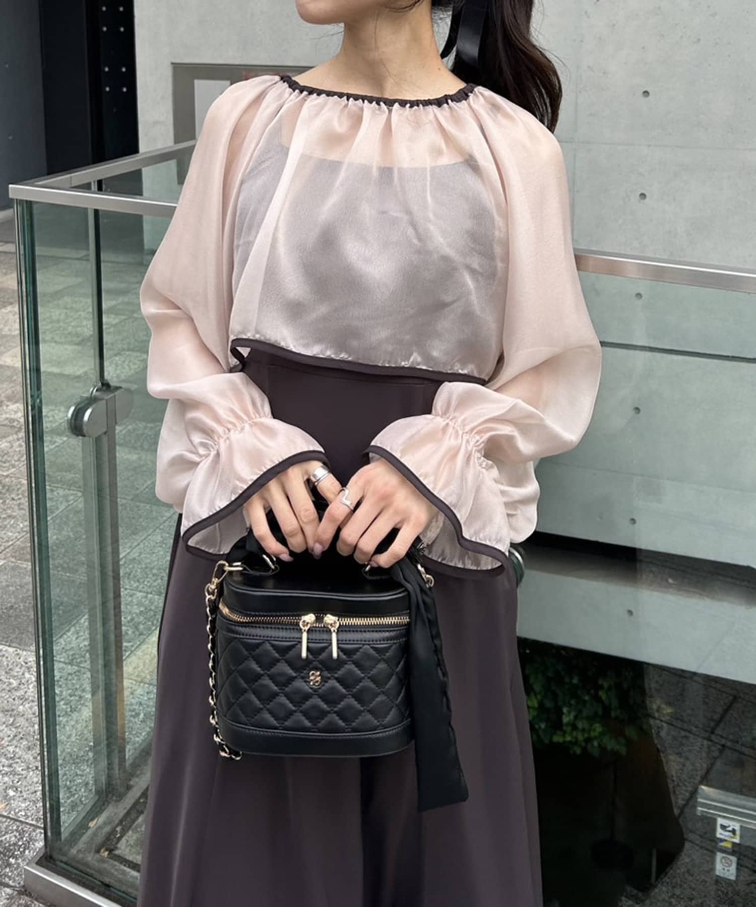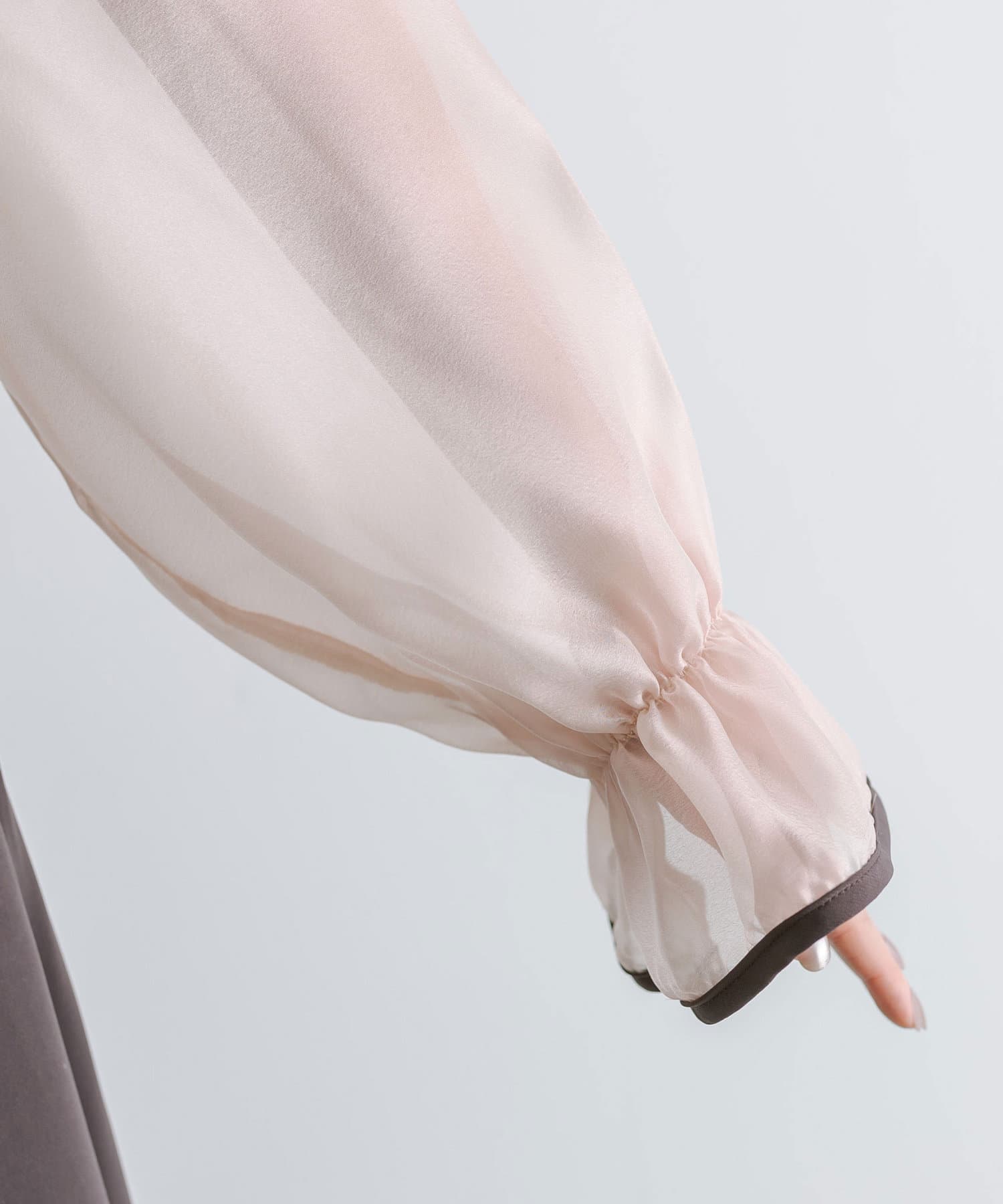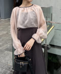 ・ブラウスは程よい透け感と、手元を美しく見せるキャンディスリーブで女性らしさを演出。