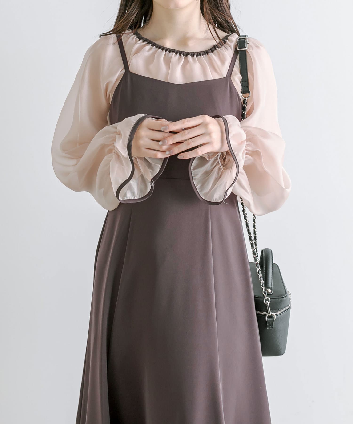 ・ブラウスとキャミワンピースがセットになったワンピース。