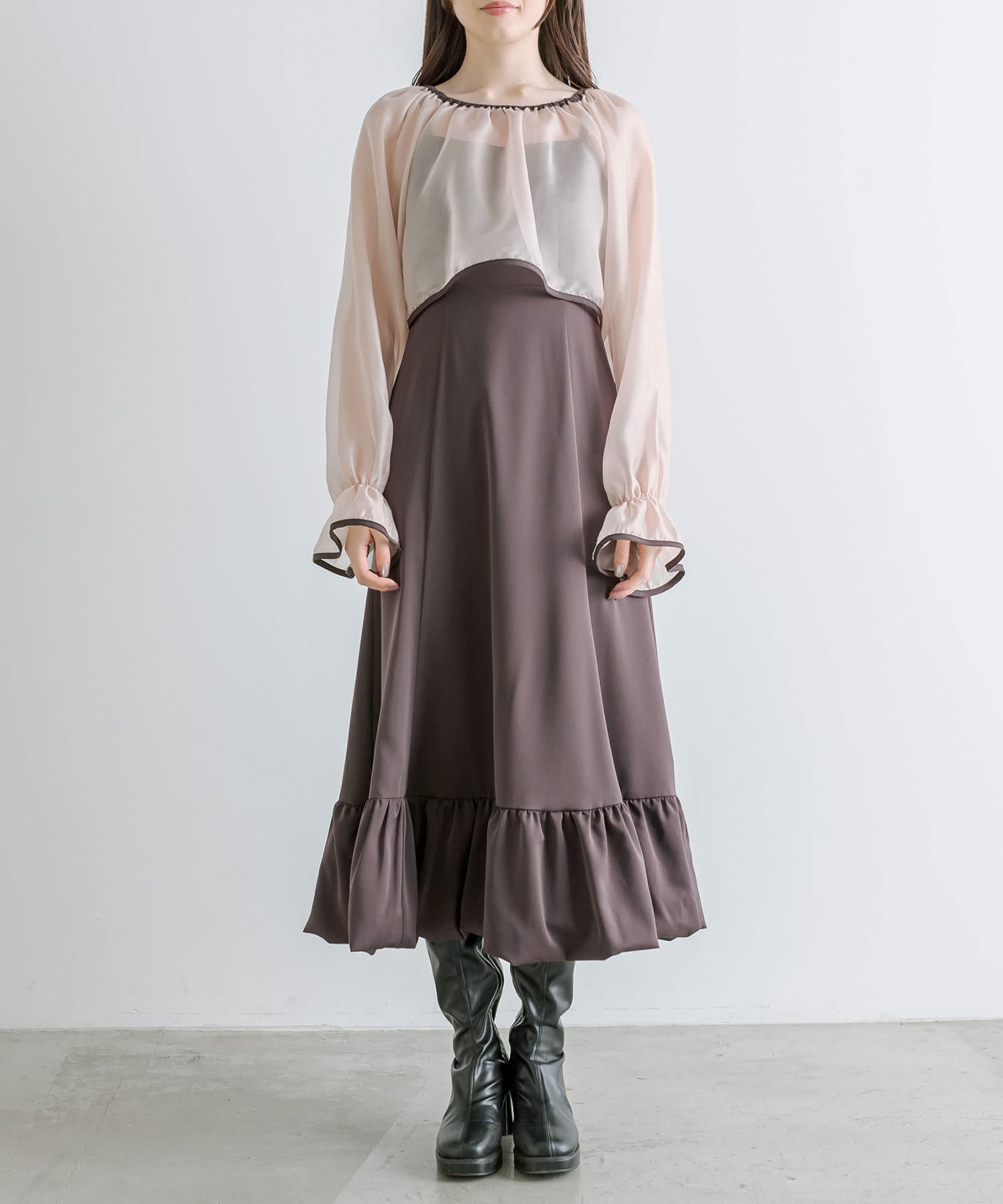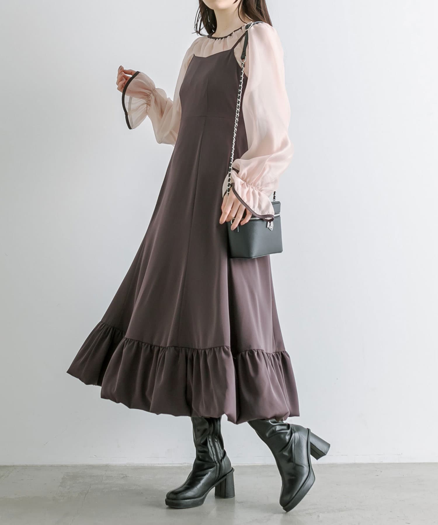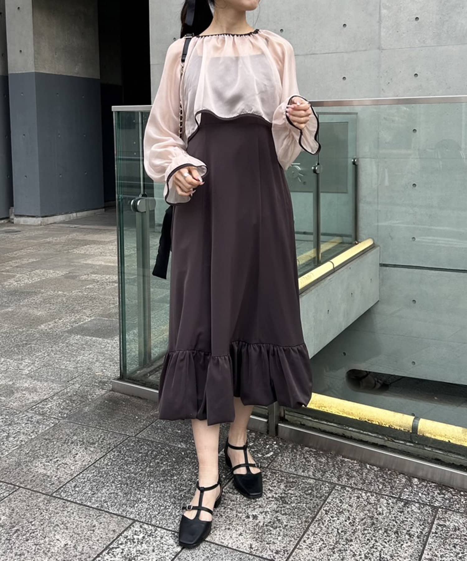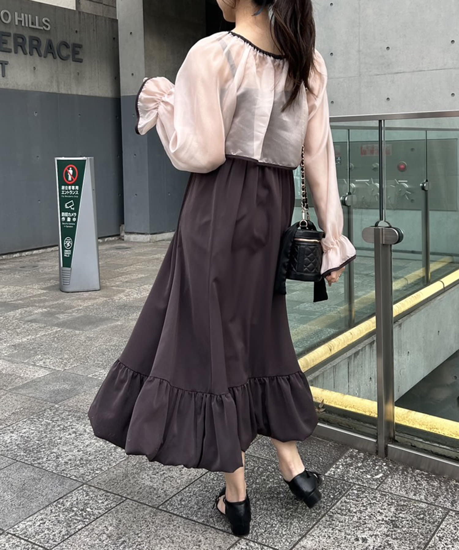 ・ワンピースはトレンド感のある裾バルーンシルエットがポイント。