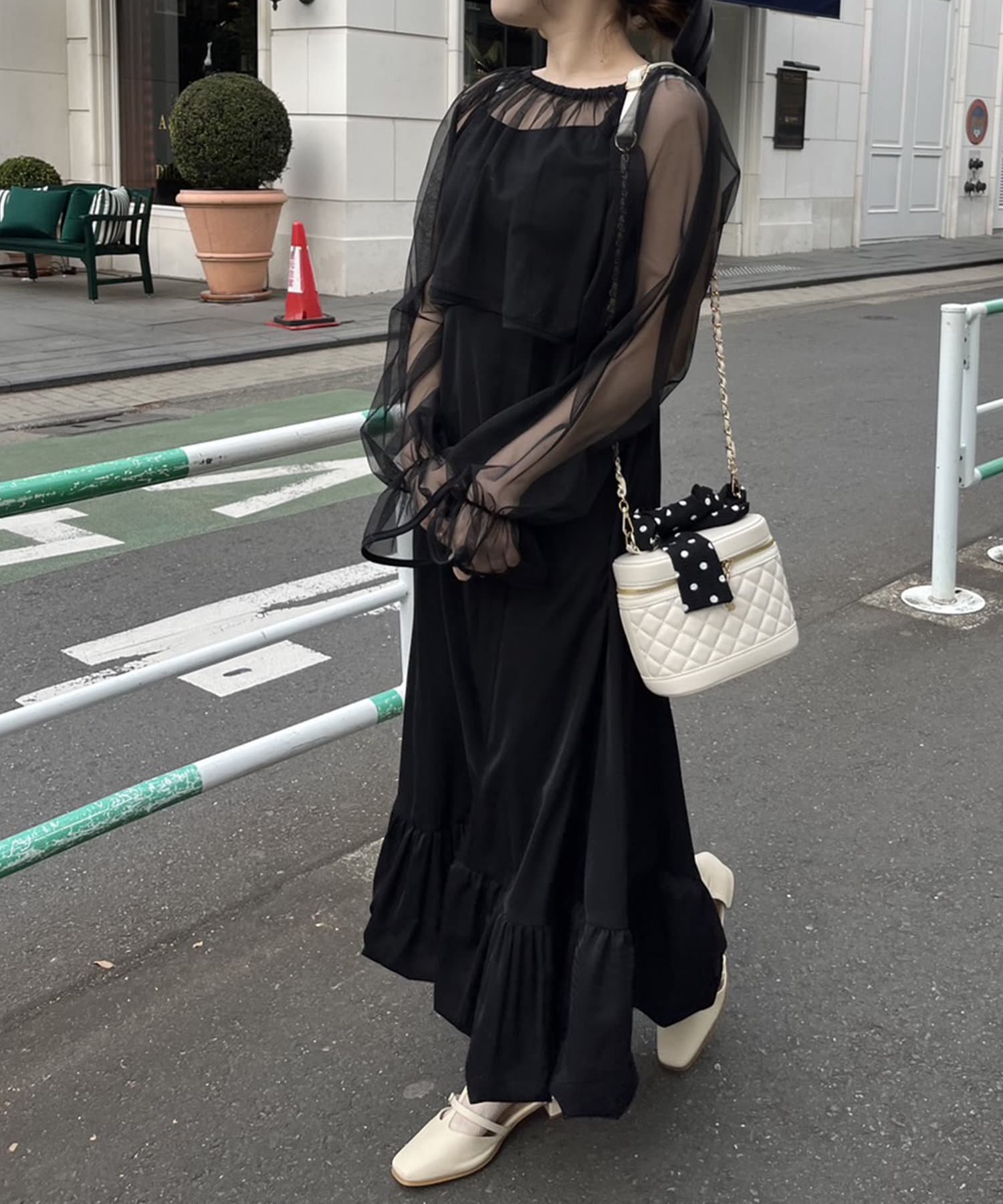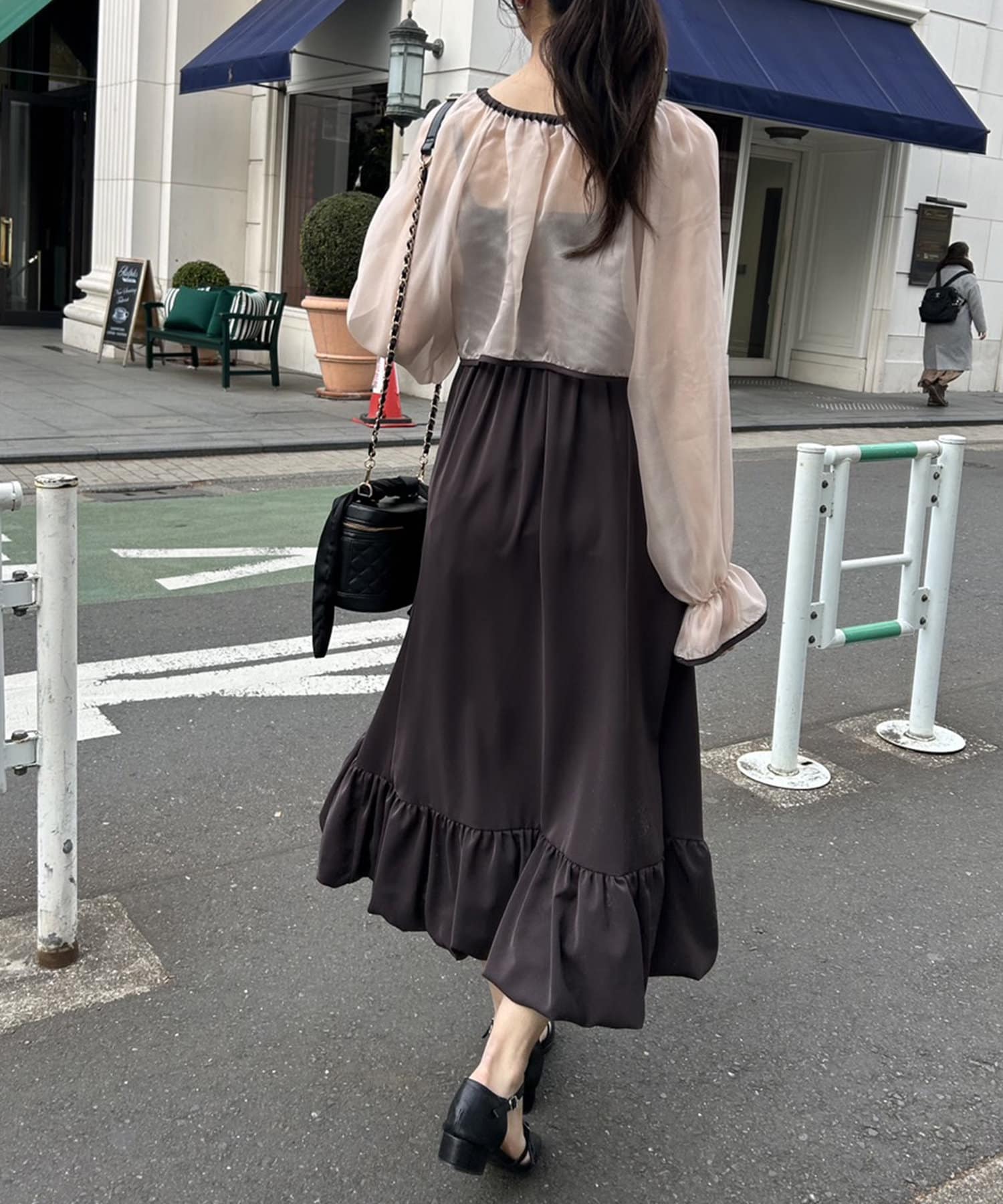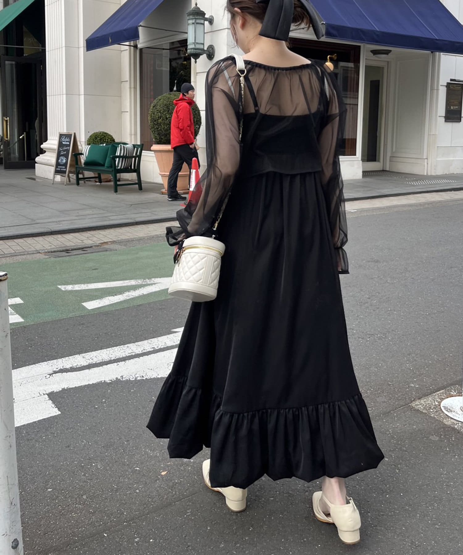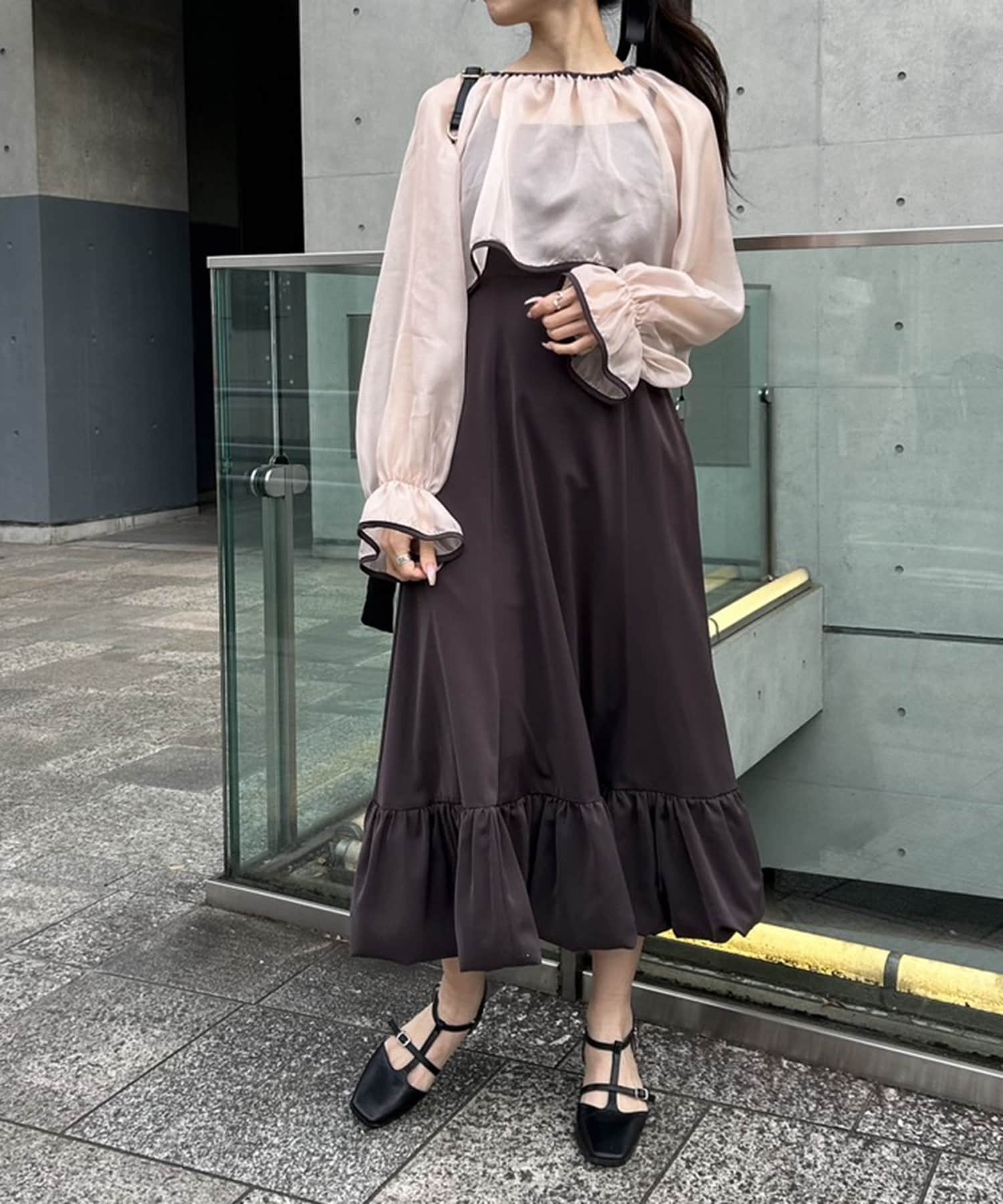 ・ワンピースはトレンド感のある裾バルーンシルエットがポイント。