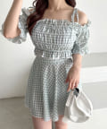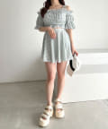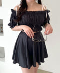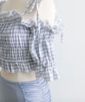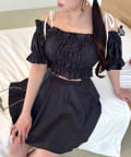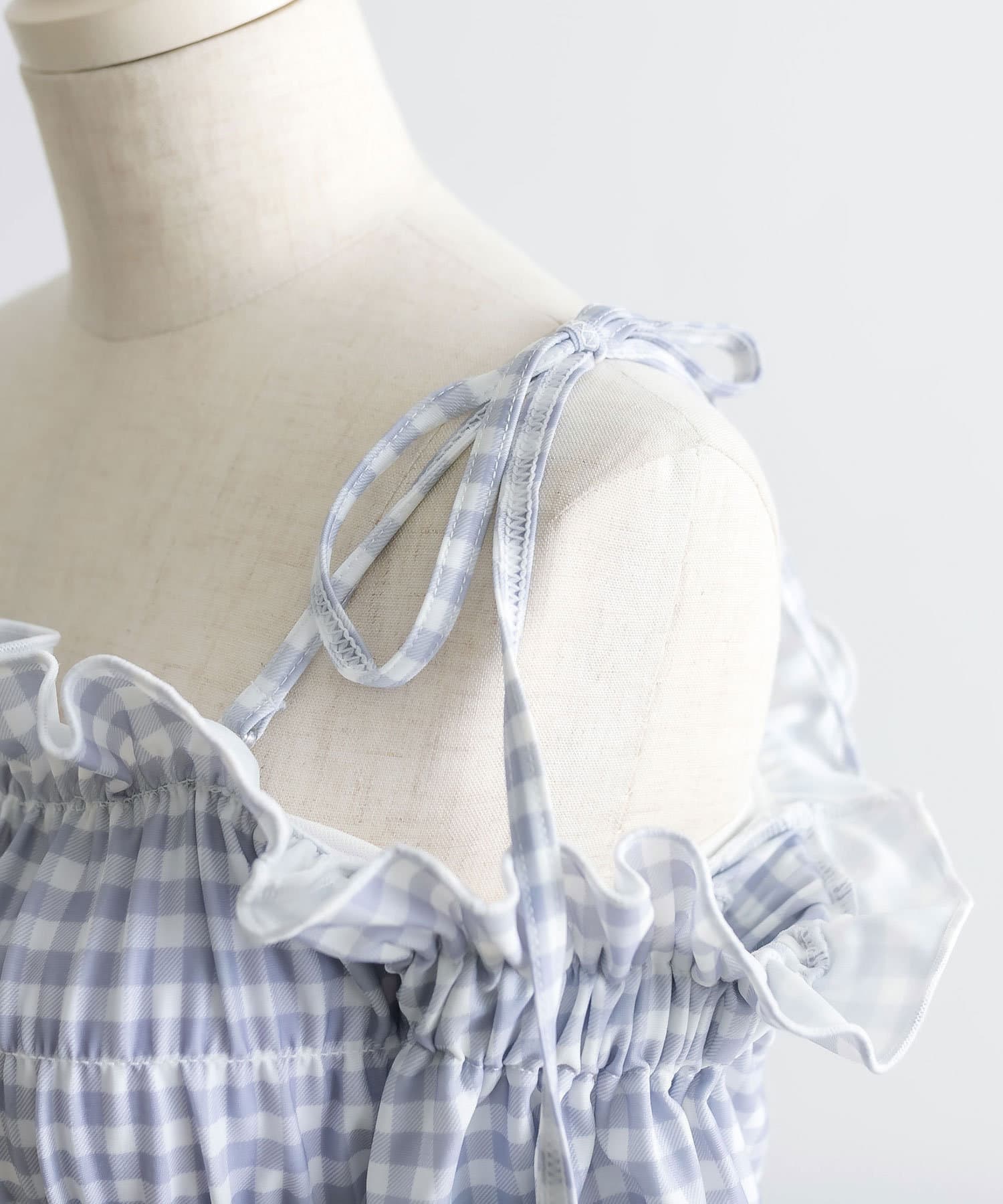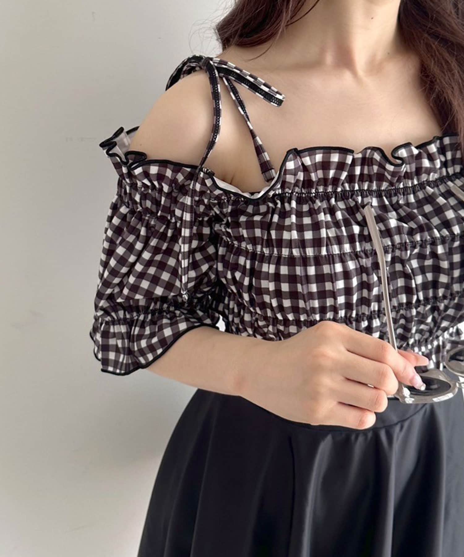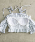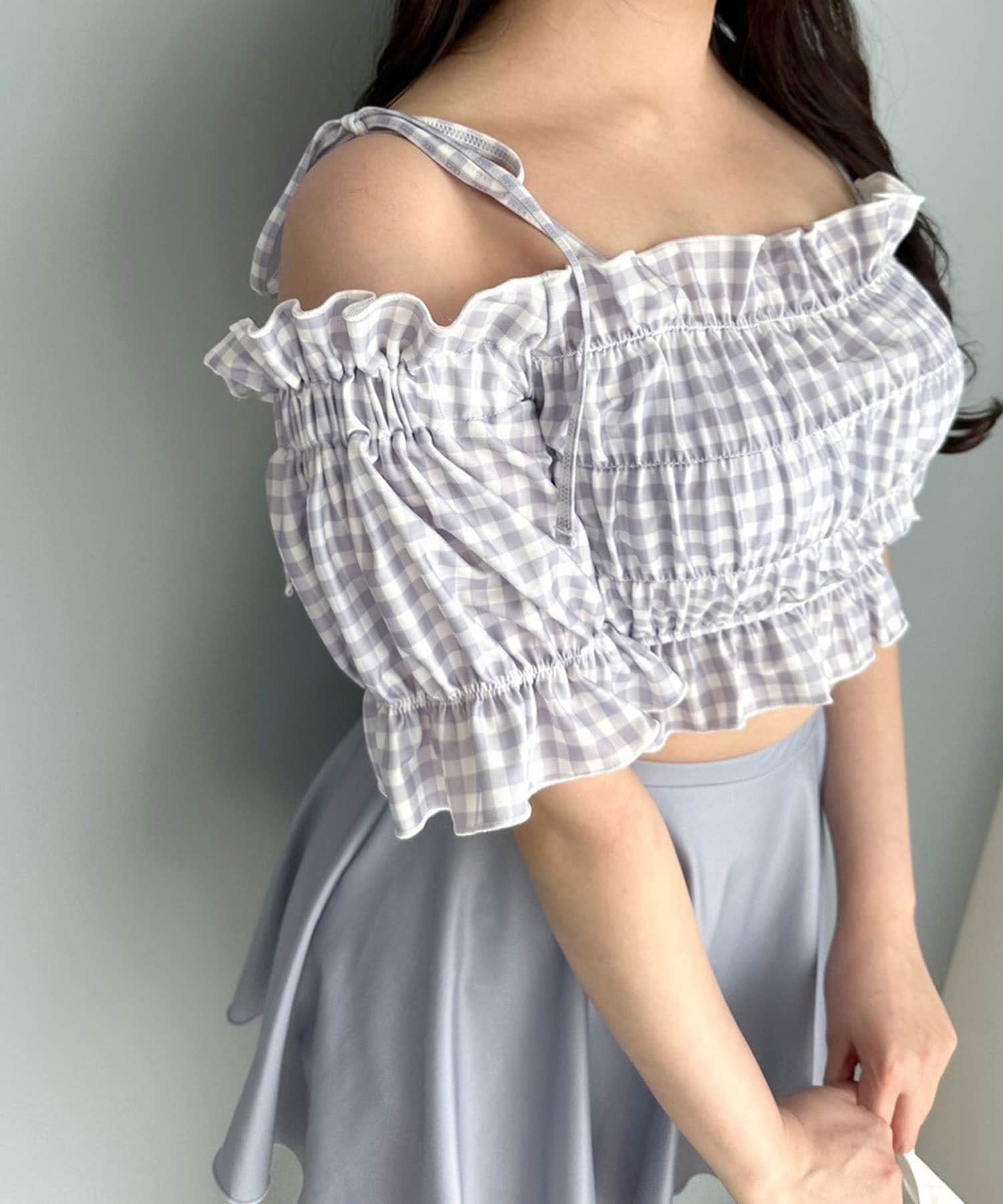 ・肩紐のストラップと、カップ付きのオフショルダーで安心感のある仕上がりに◎パットポケット付きでお持ちのパットを入れることも可能。