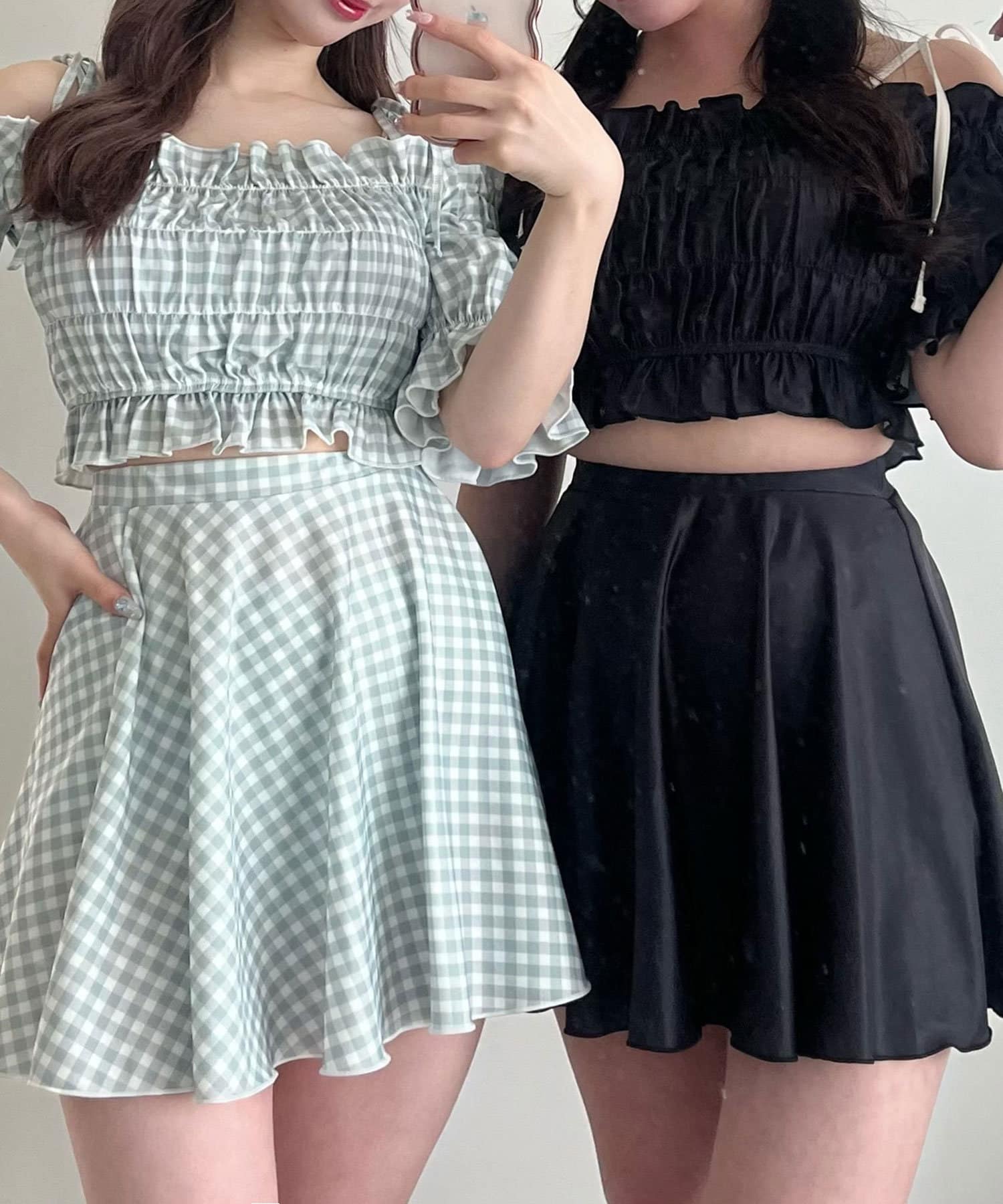 ・かわいく体型カバーでき、トレンドカラーで映えること間違いなしの水着。