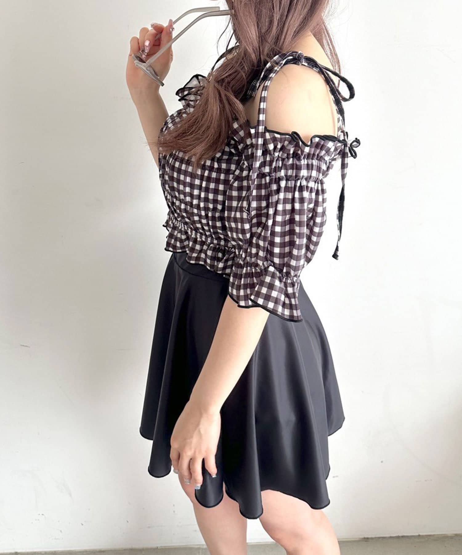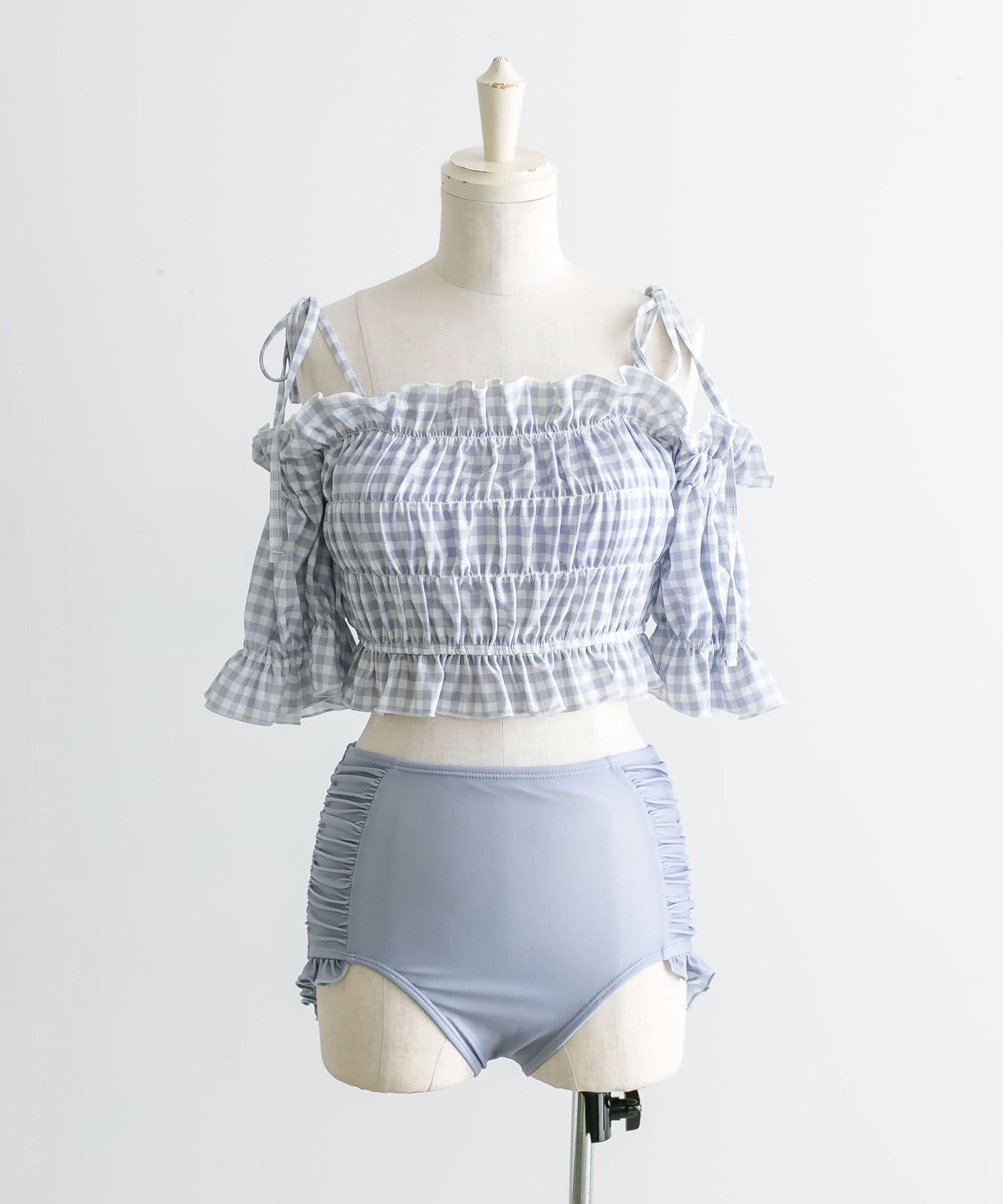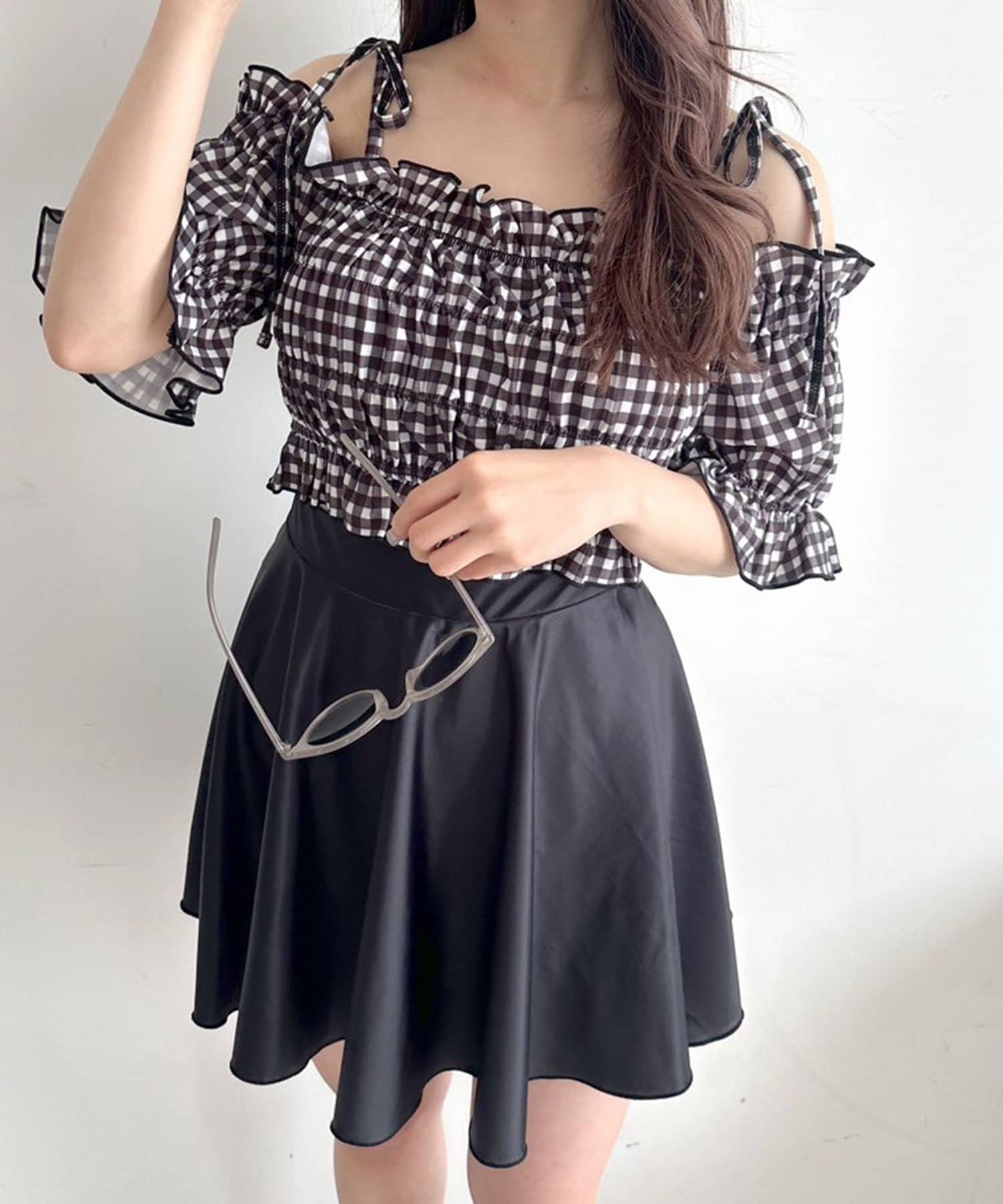 ・洋服を着ている感覚で、露出を控えたうれしい水着のセットです。