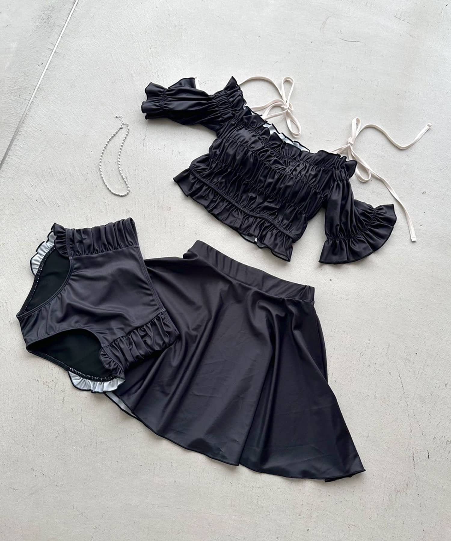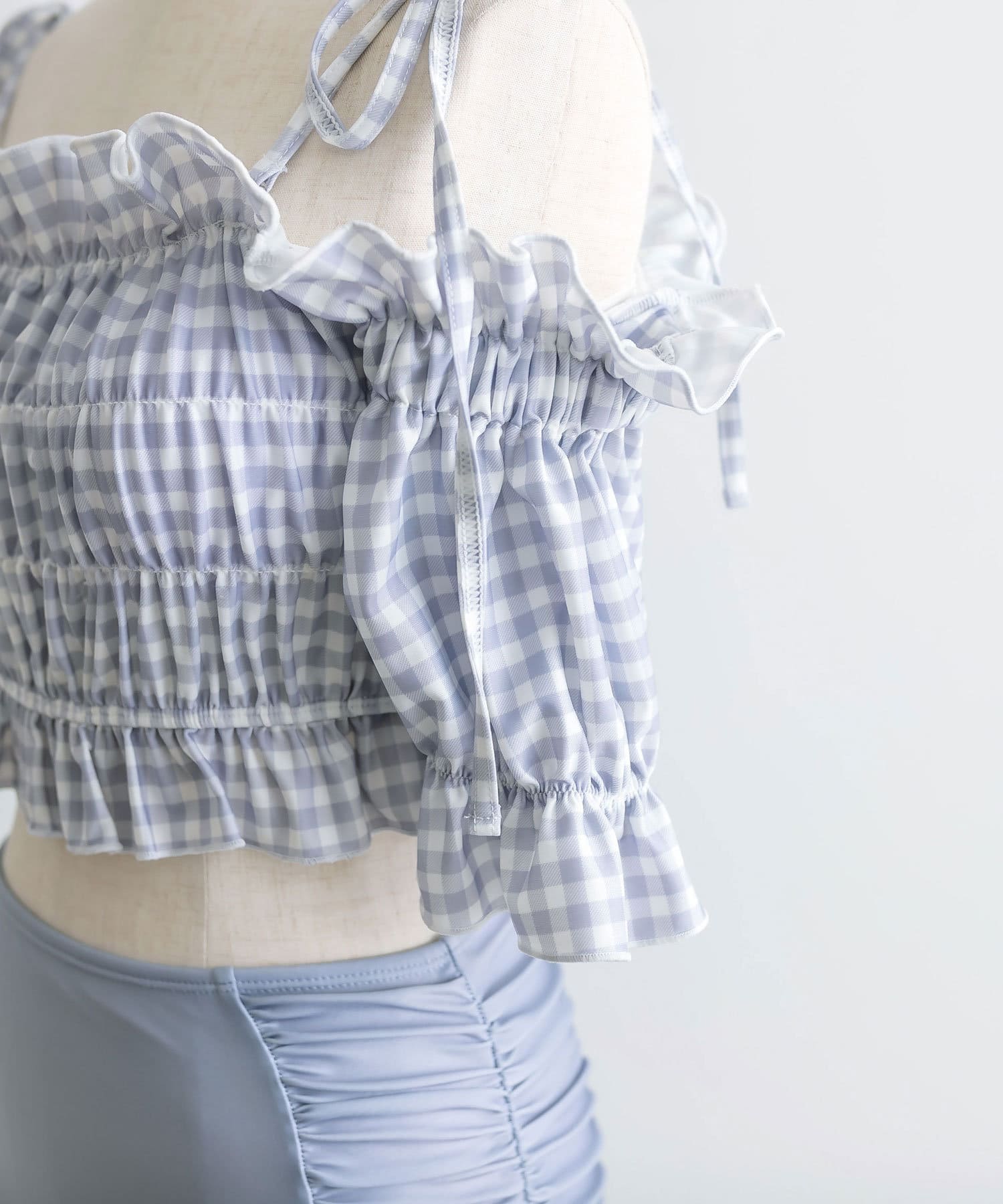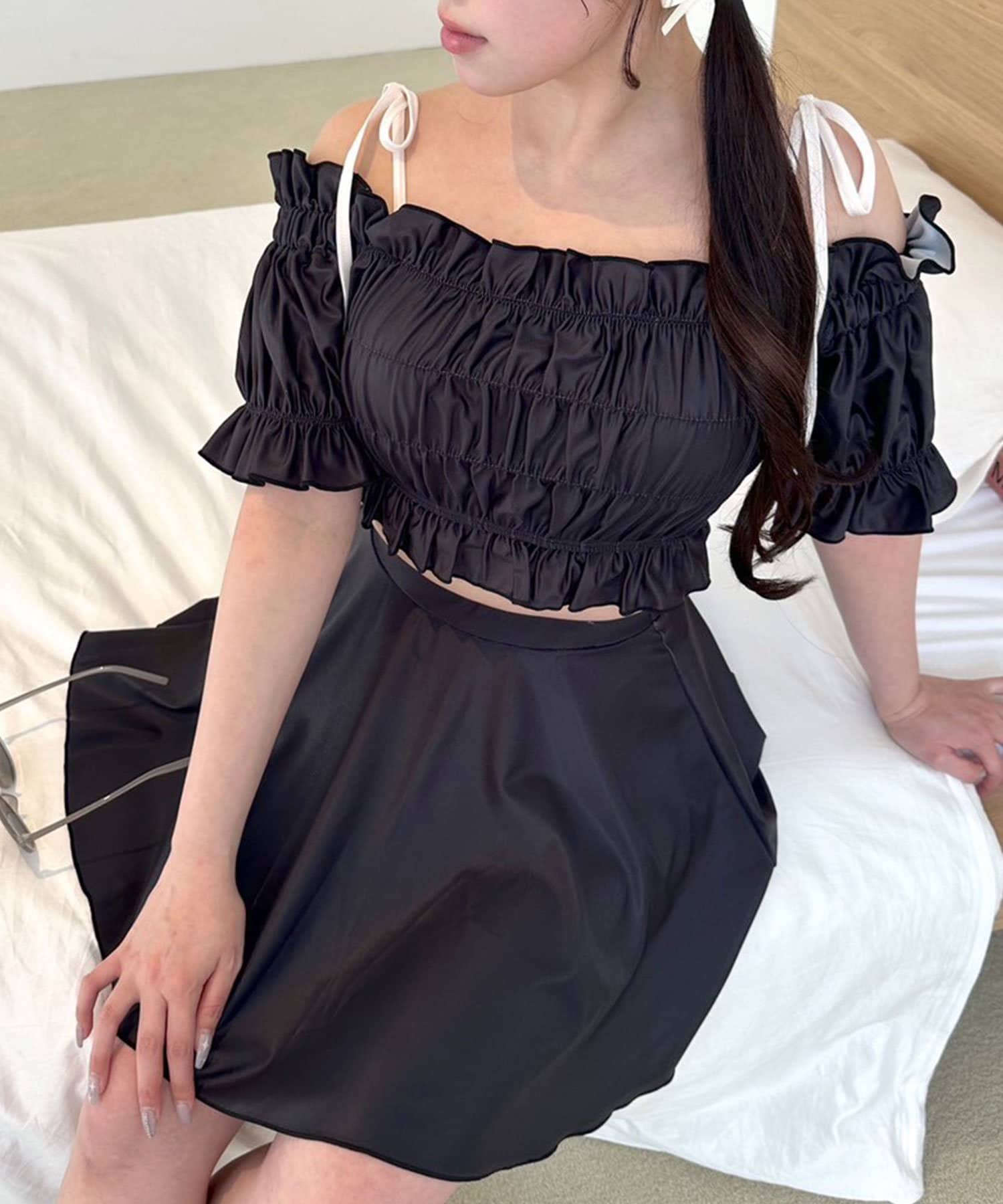 ・洋服を着ている感覚で、露出を控えたうれしい水着のセットです。