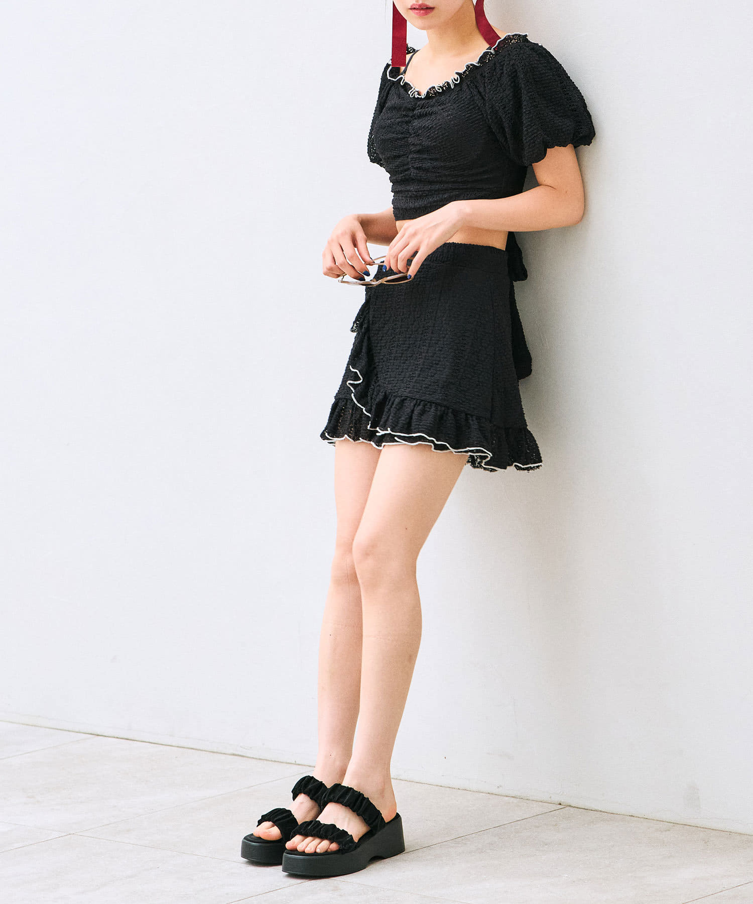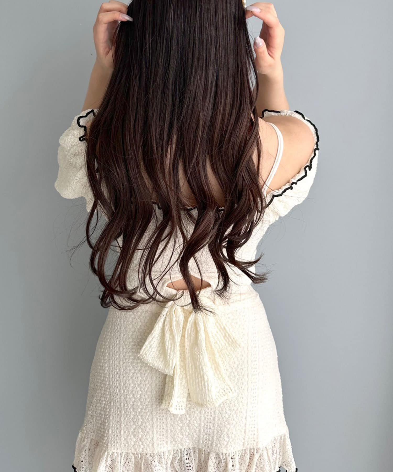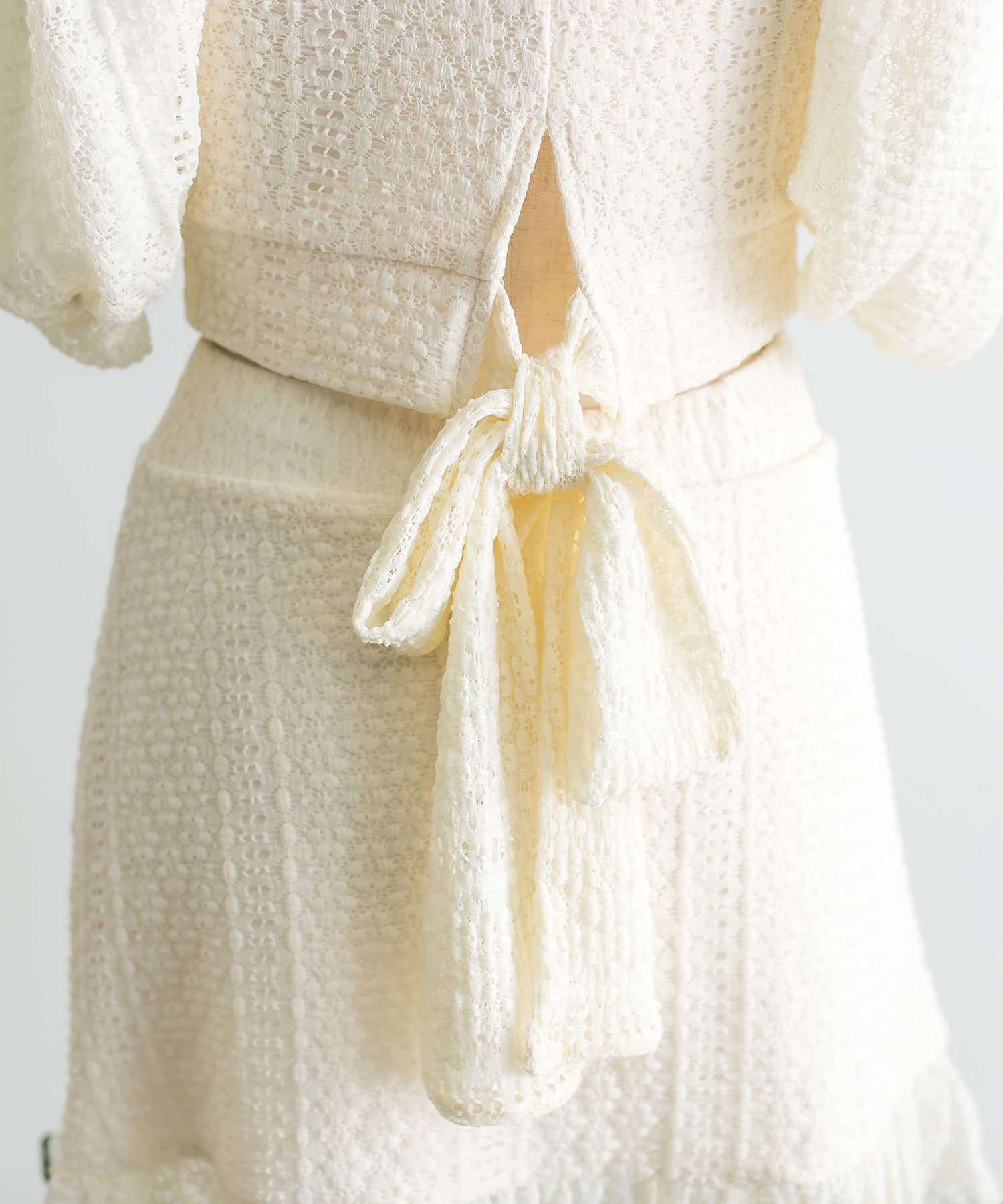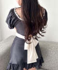 ・トップスは大きなバックリボンが目を惹くブラウスのようなかわいいデザイン。