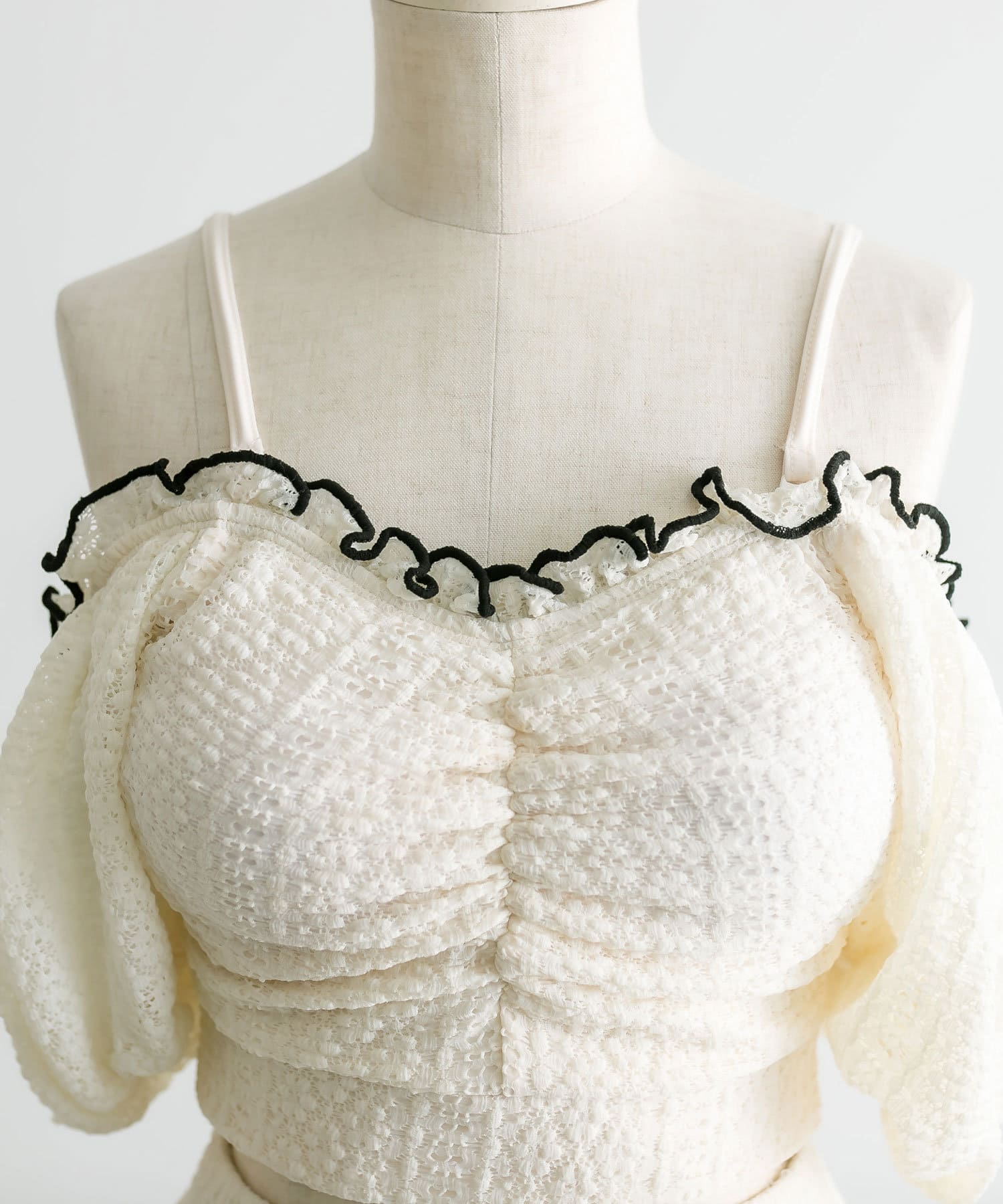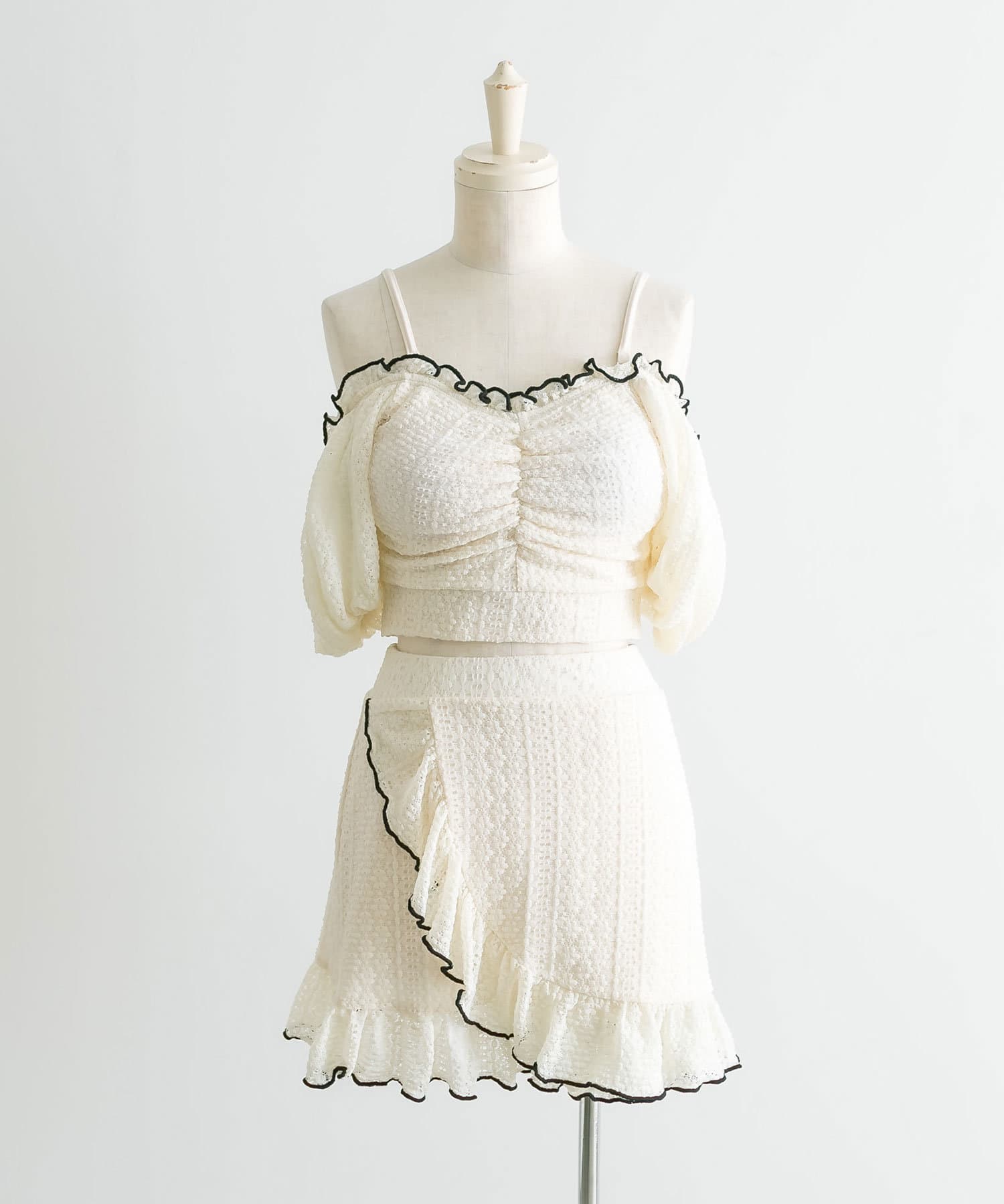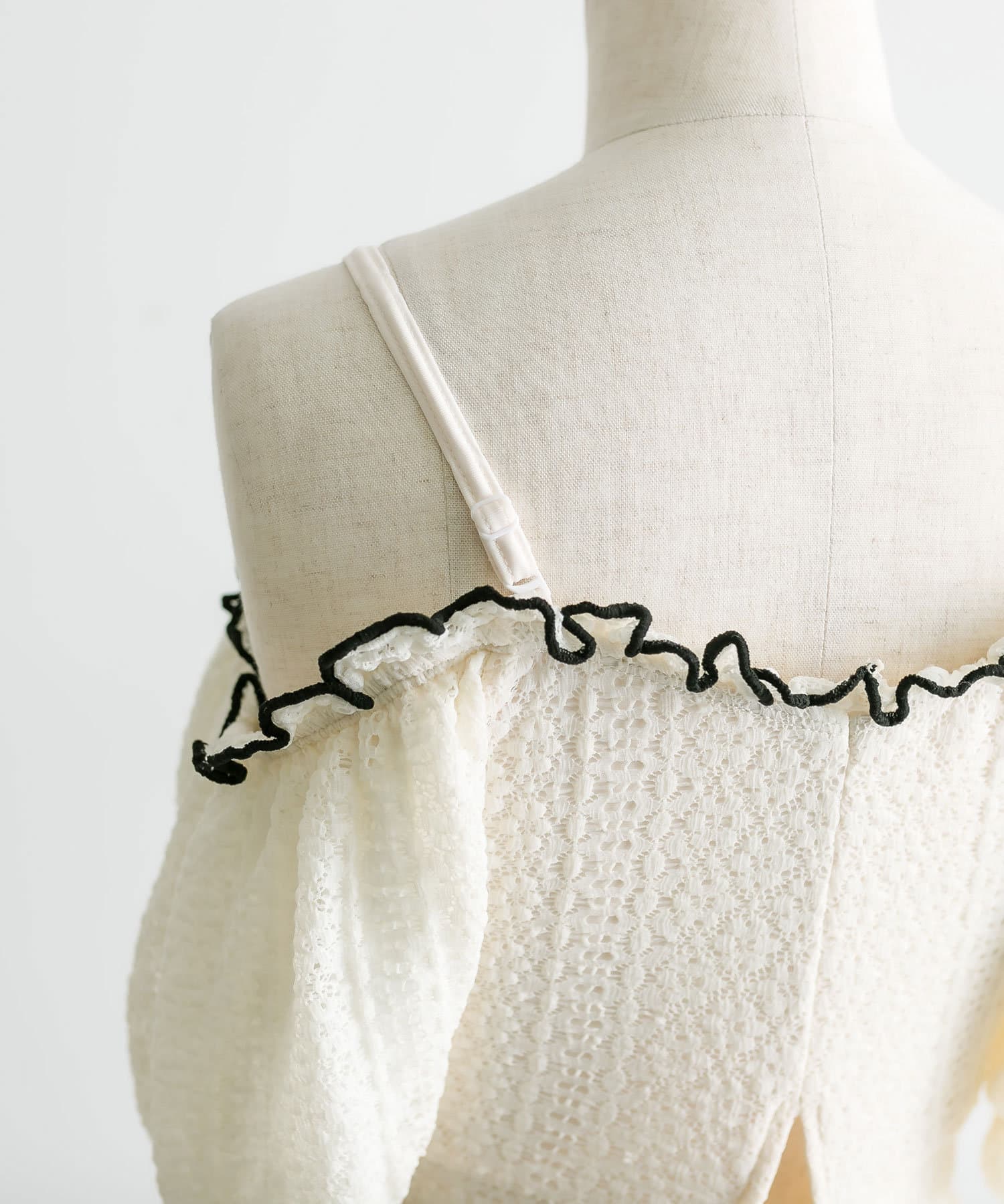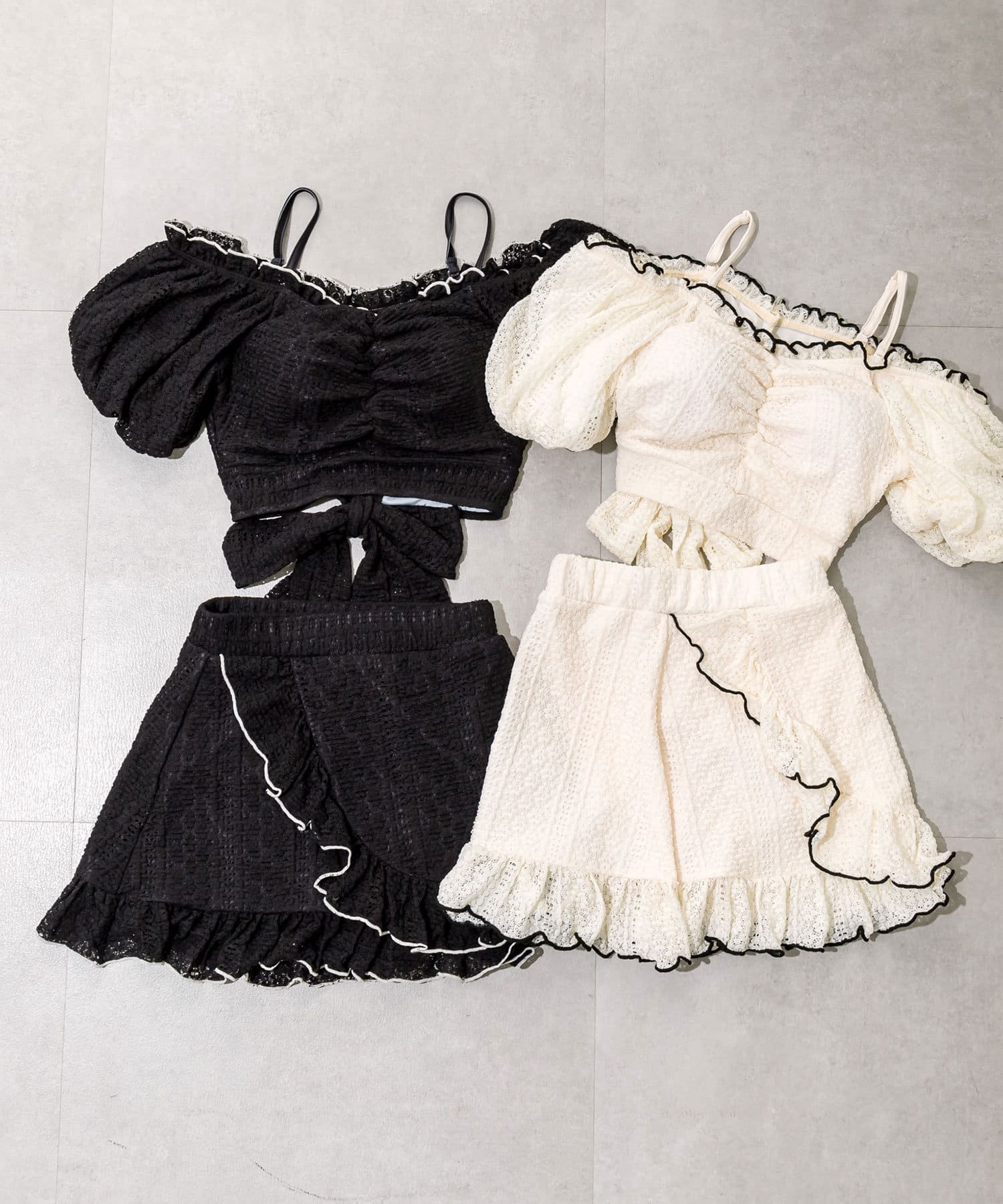・アイボリーは総レース、クロはツヤ感がある生地で大人っぽい印象で着ていただけます。
