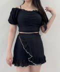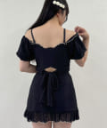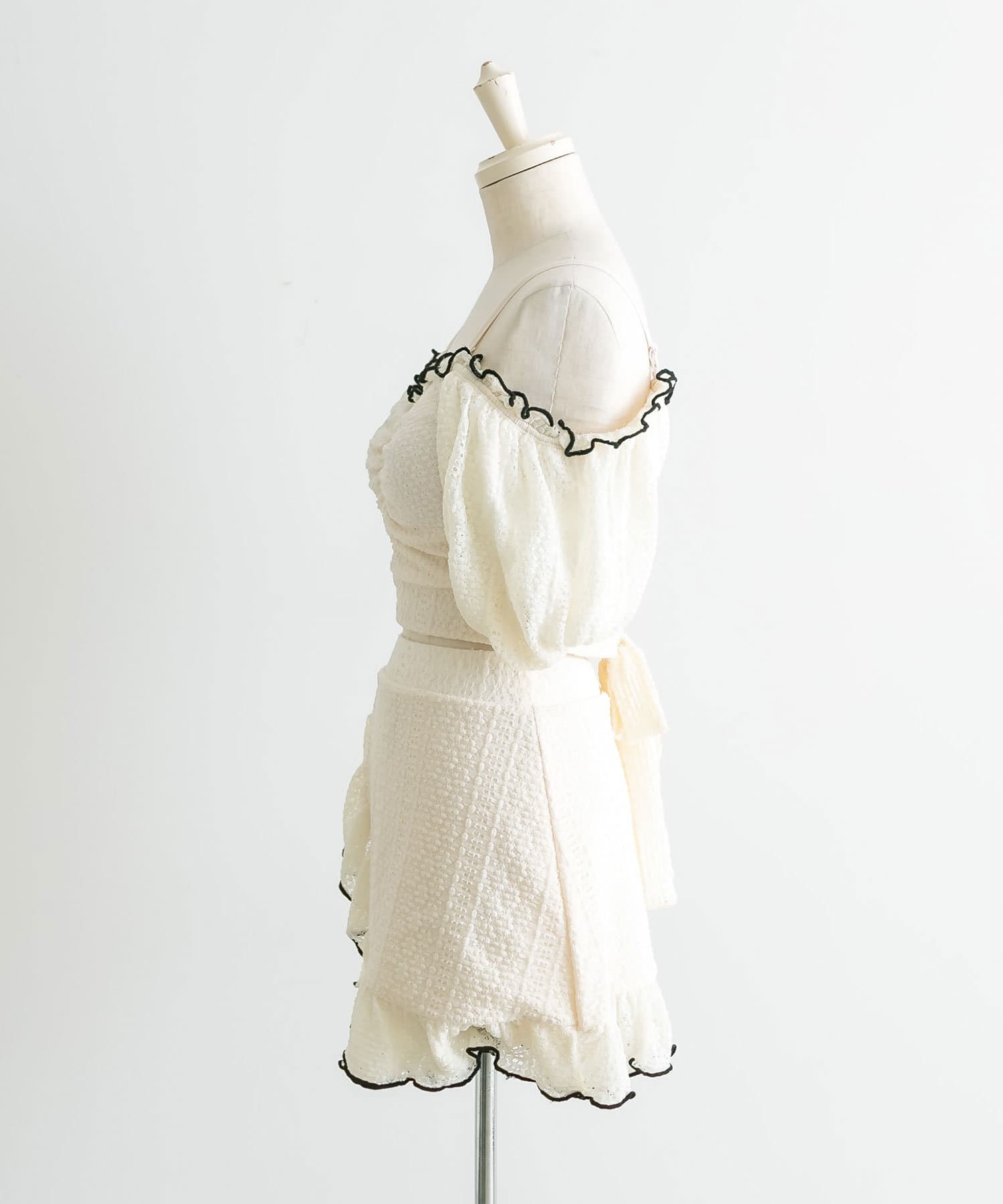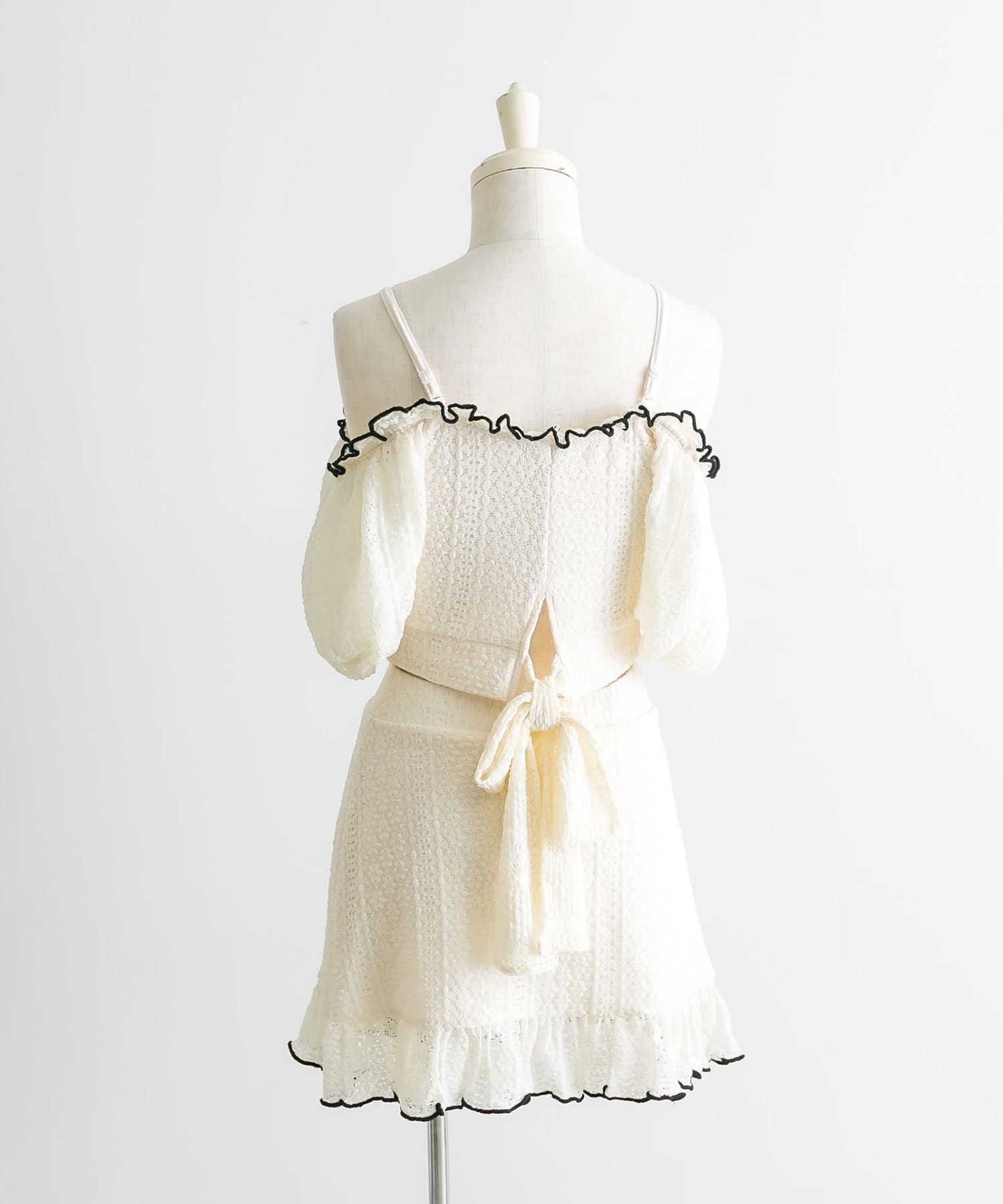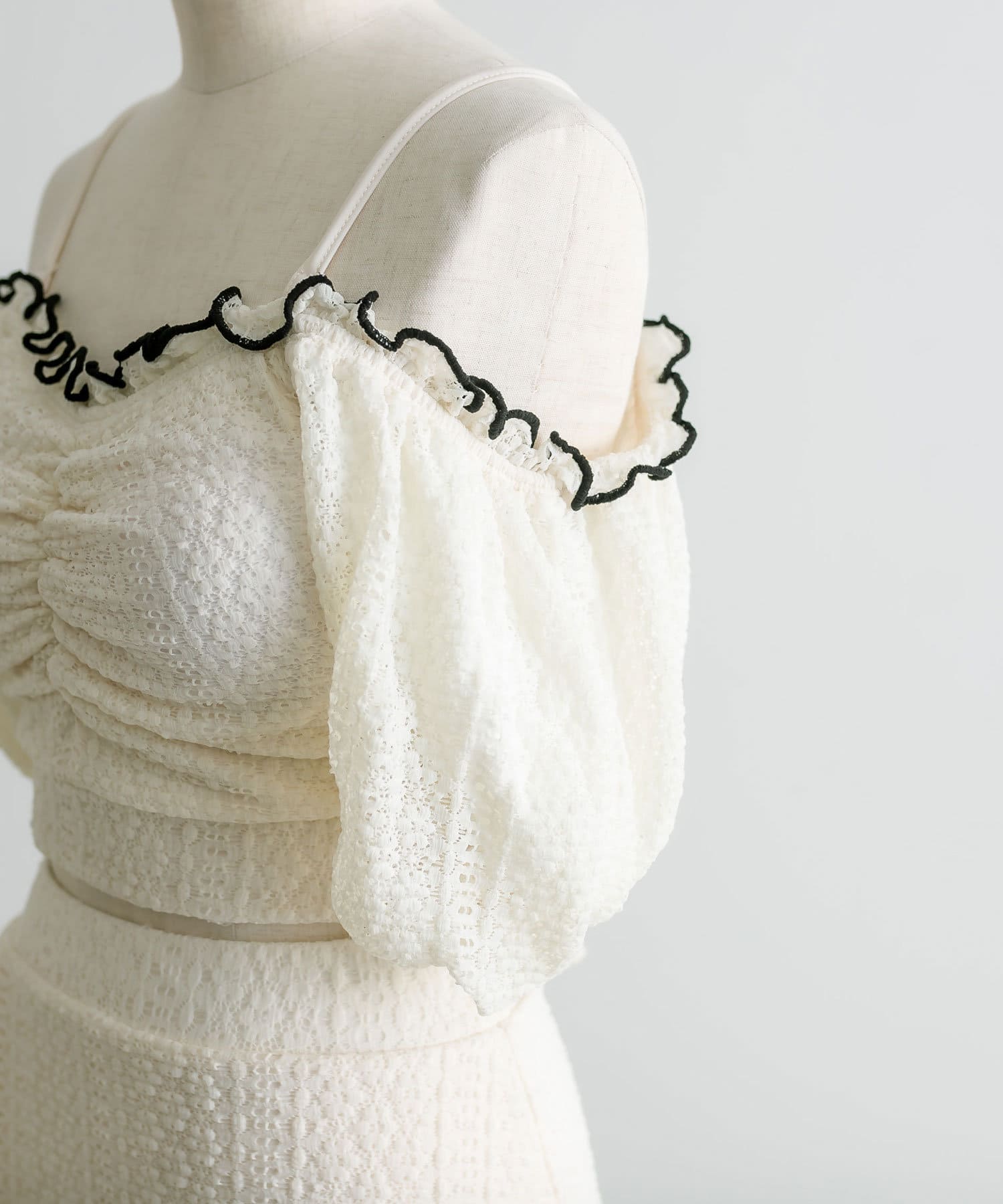 ・アイボリーは総レース、クロはツヤ感がある生地で大人っぽい印象で着ていただけます。