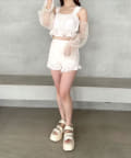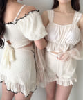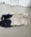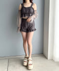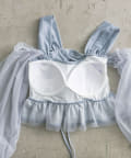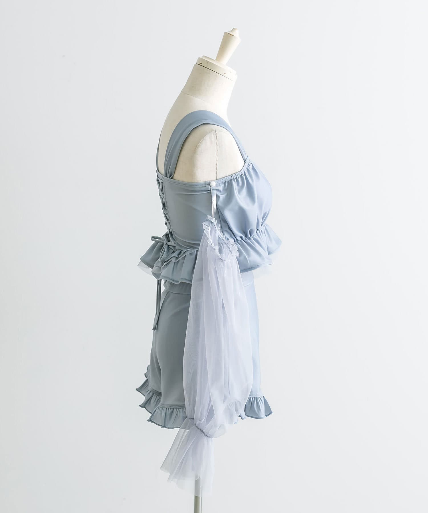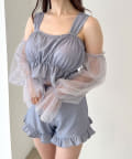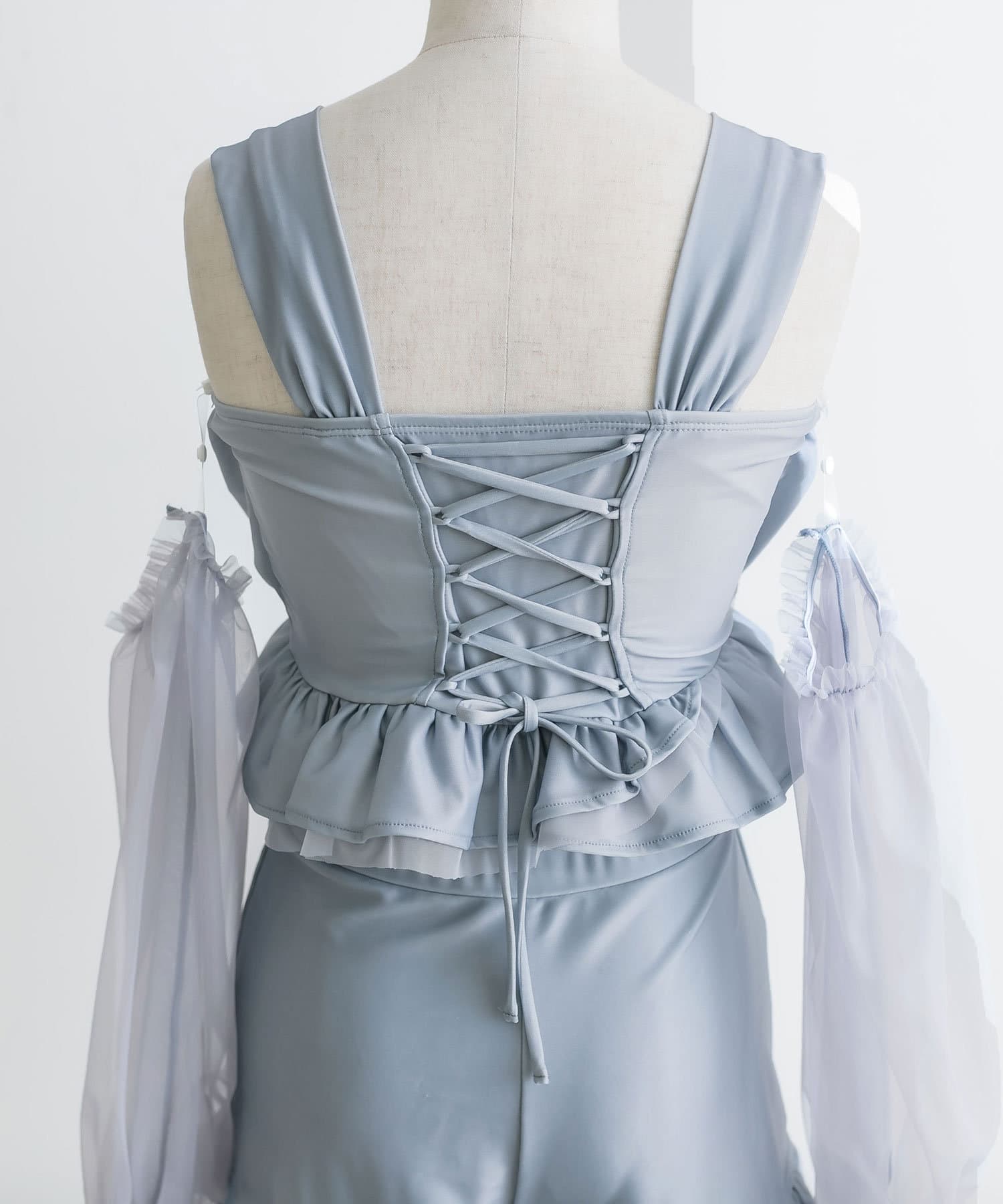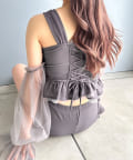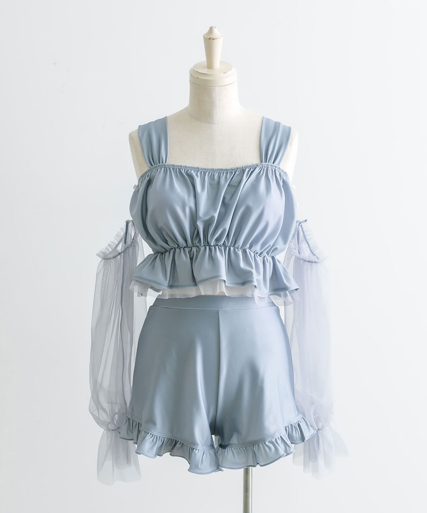 ・チュール袖やフリル、レースアップなどガーリー要素たっぷりな水着。