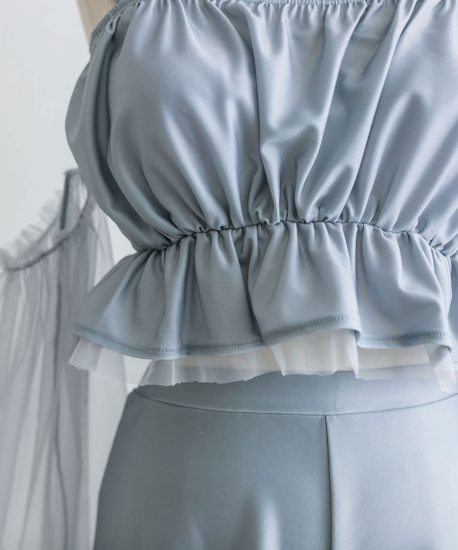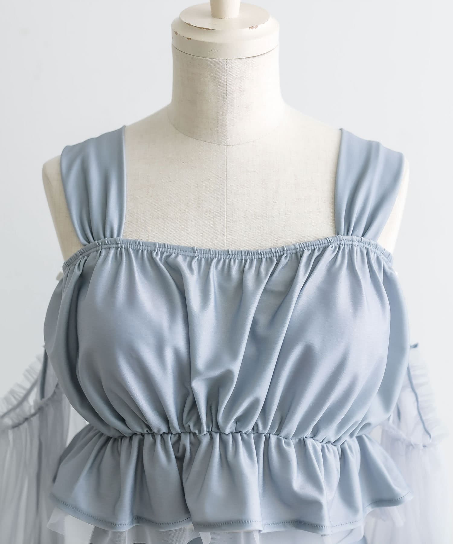 ・チュール袖で二の腕カバーでき、取り外し可能なので甘すぎないデザインでも着用していただけます。
