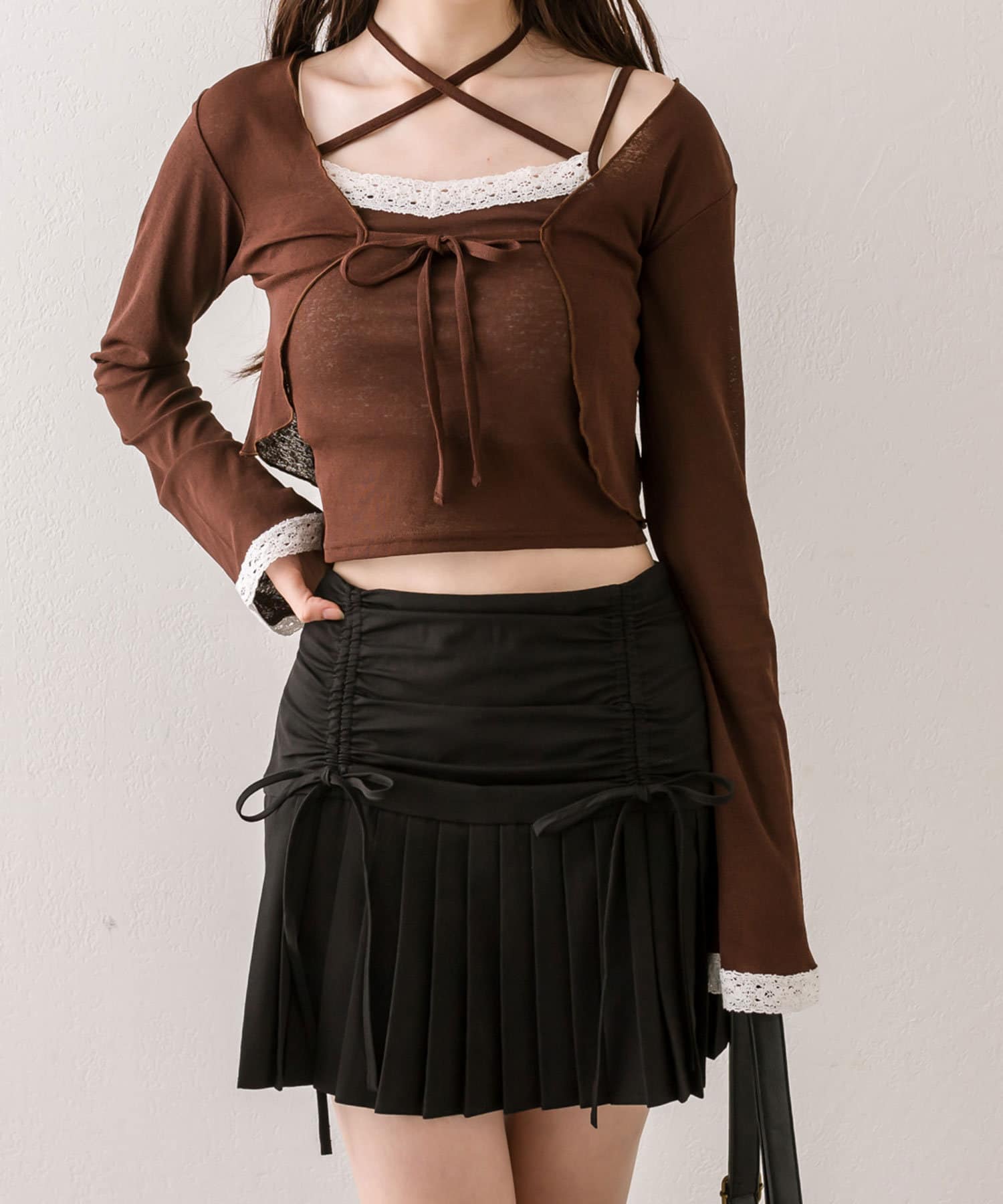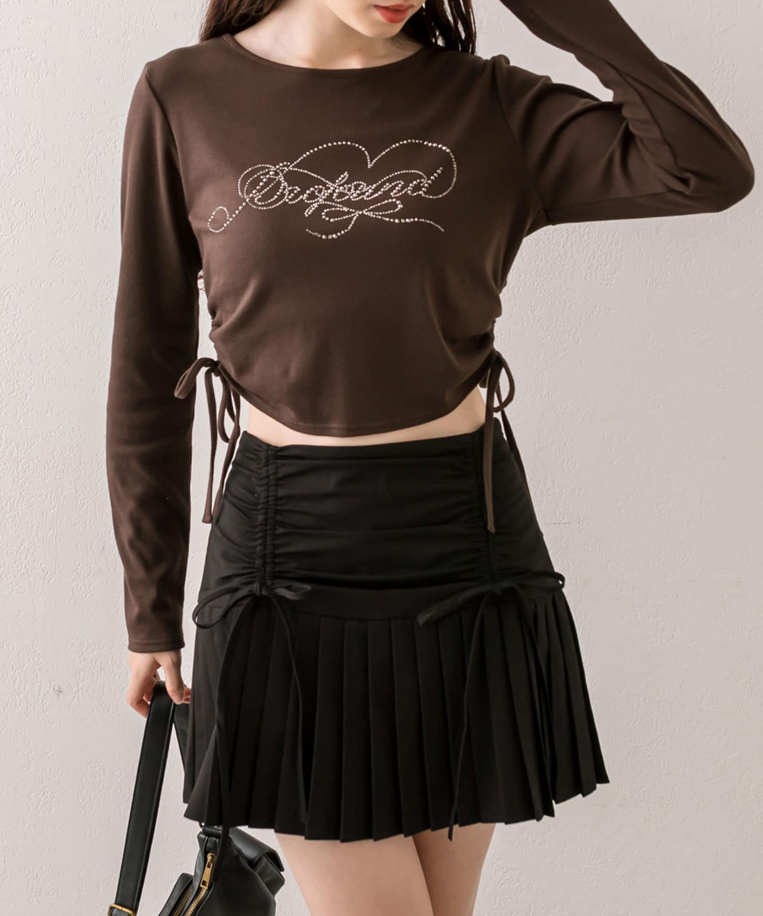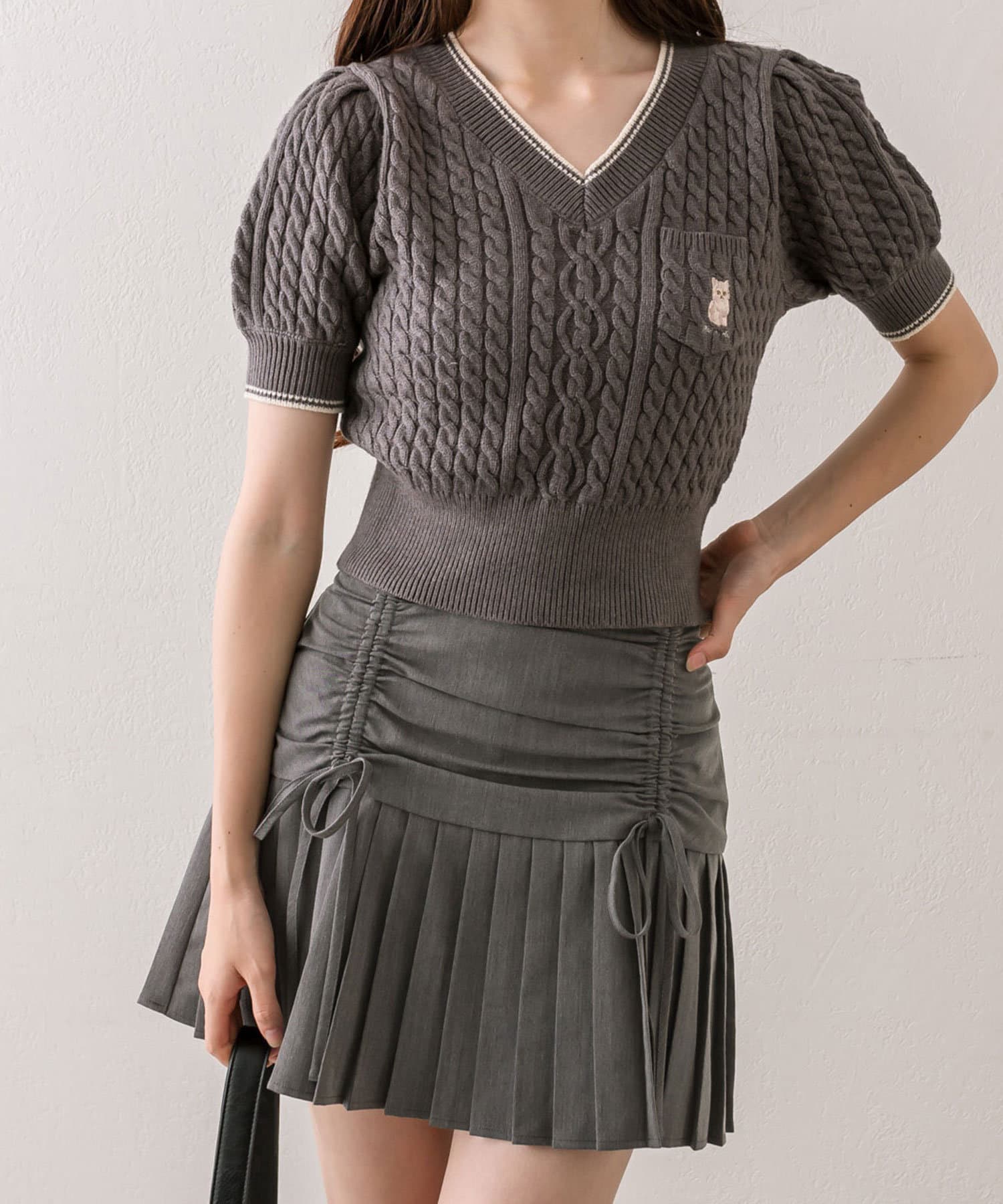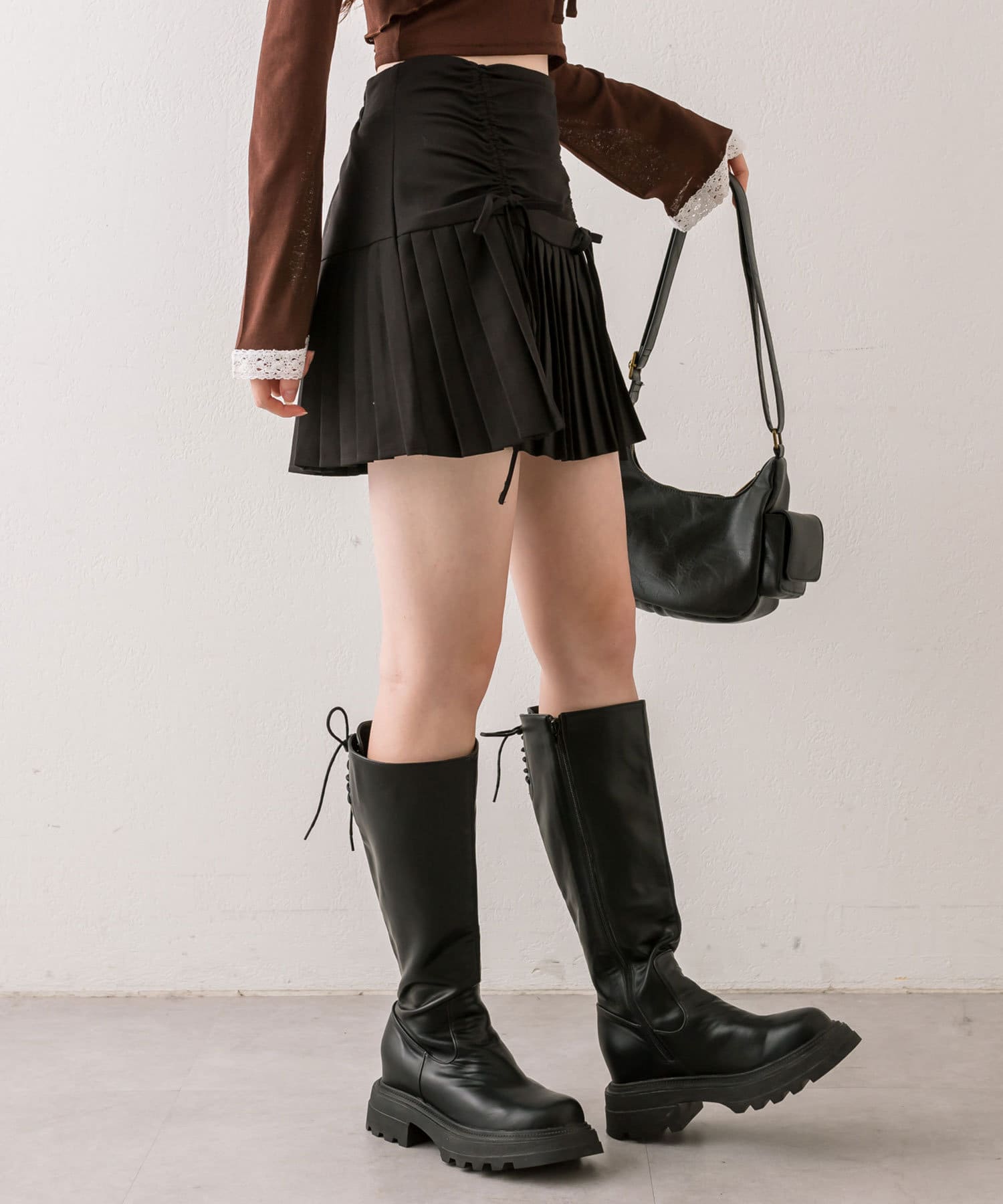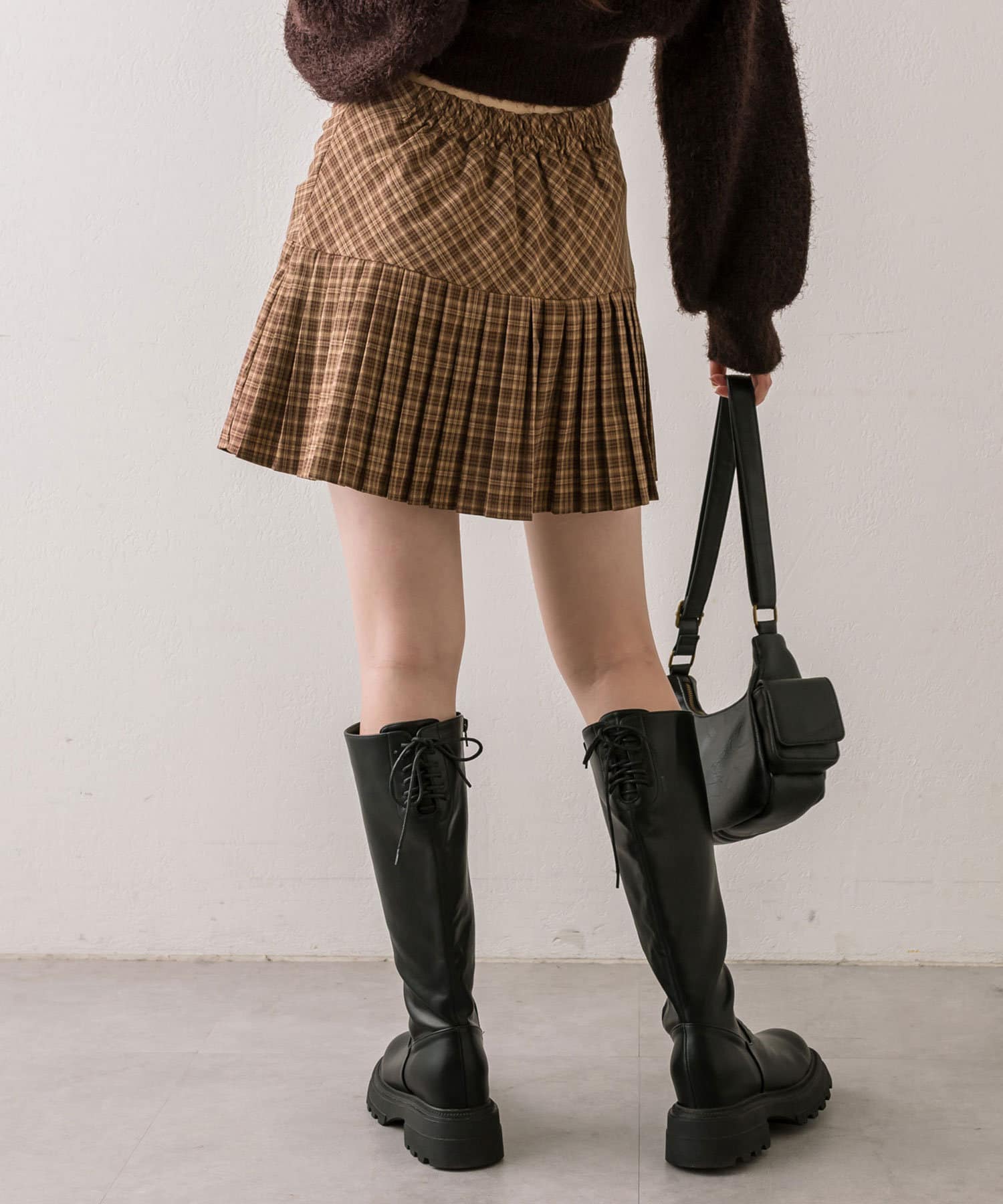 ・ドロストデザインや低めの切替などトレンドライクなデザインのプリーツスカート。