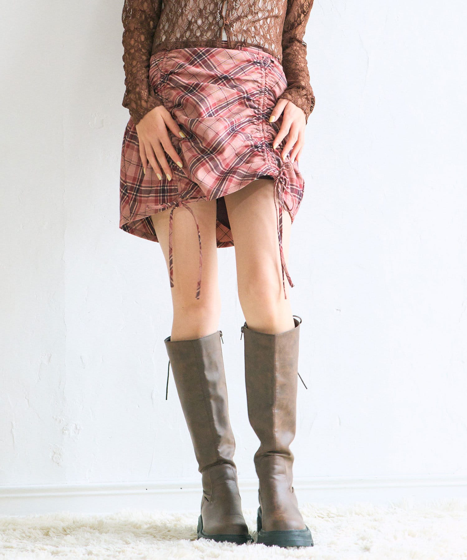 ・足元はハイソックスにショートブーツやロングブーツの合わせがおすすめ◎
