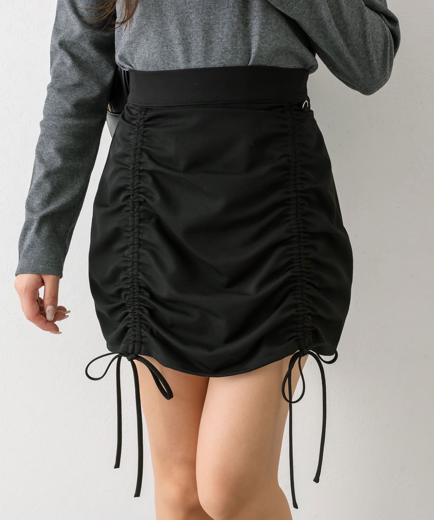 ・2つのドロストリボンがかわいい韓国っぽミニスカート。