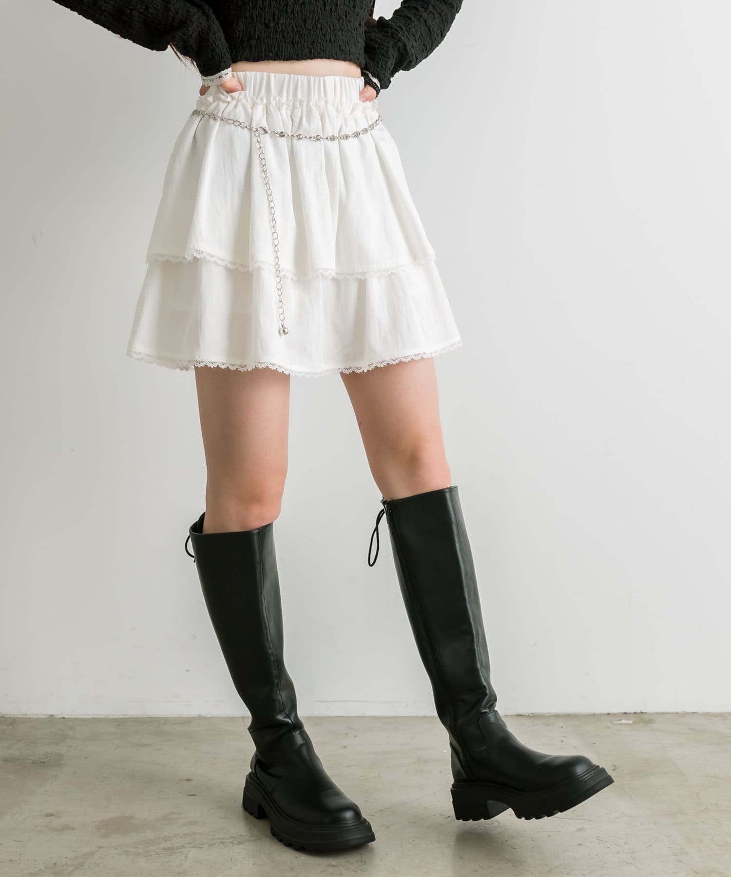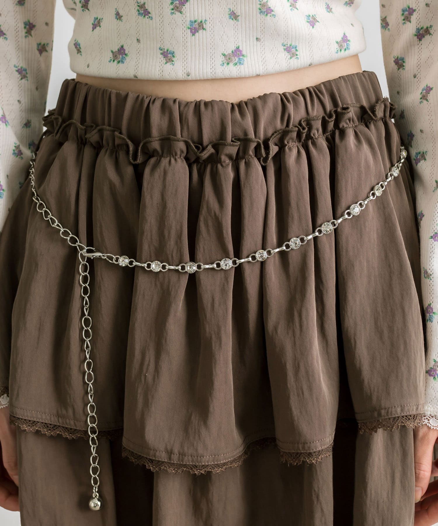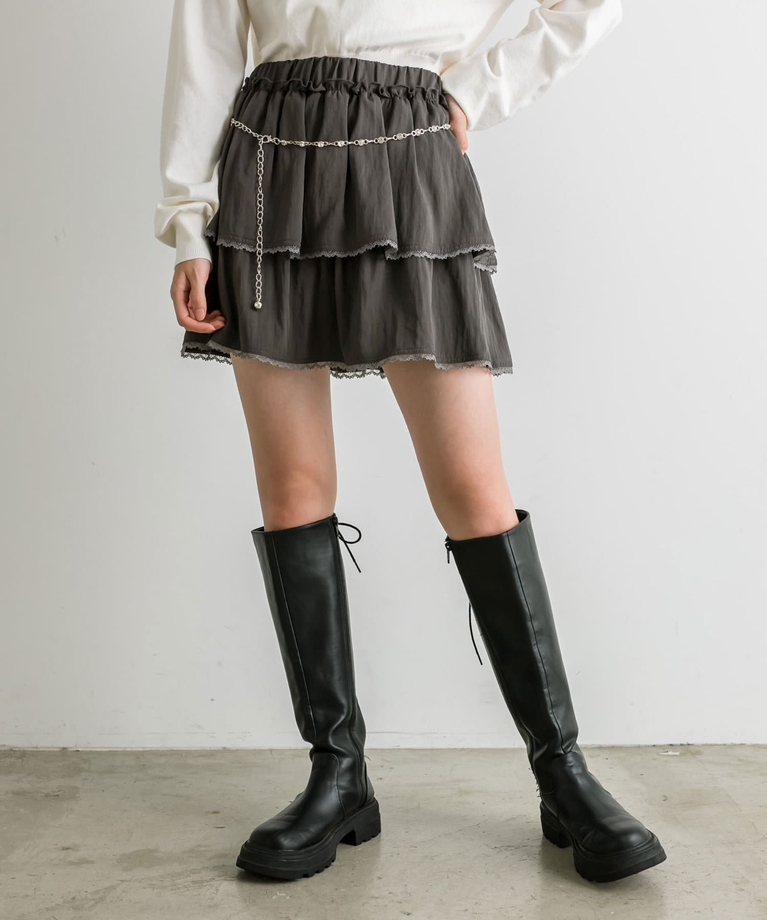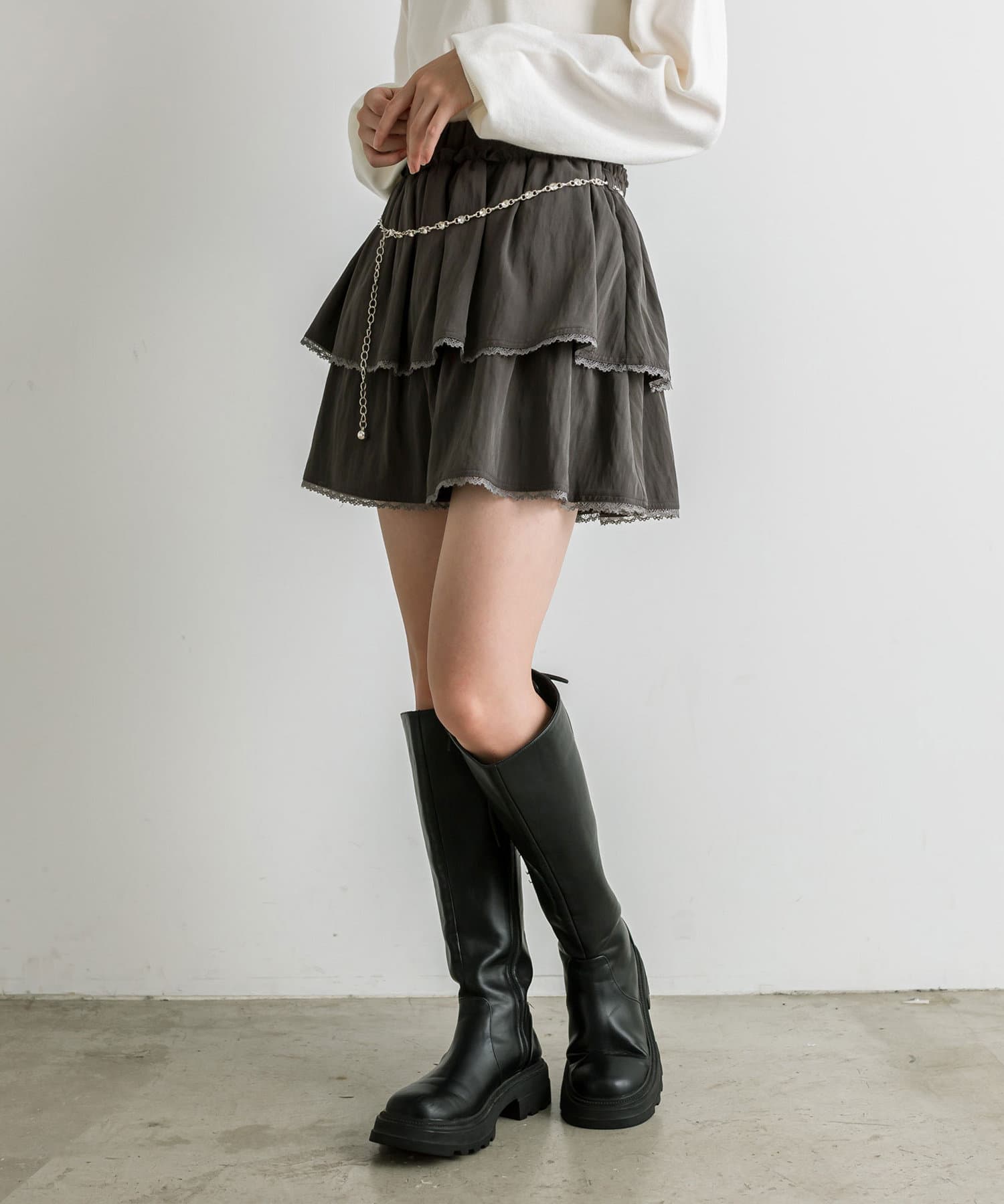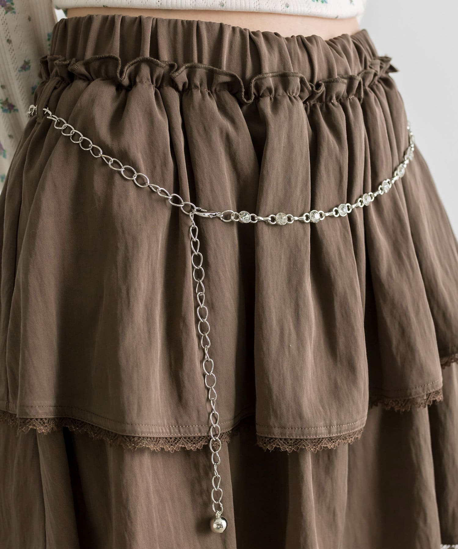 チェーンベルト付きティアードミニスカート