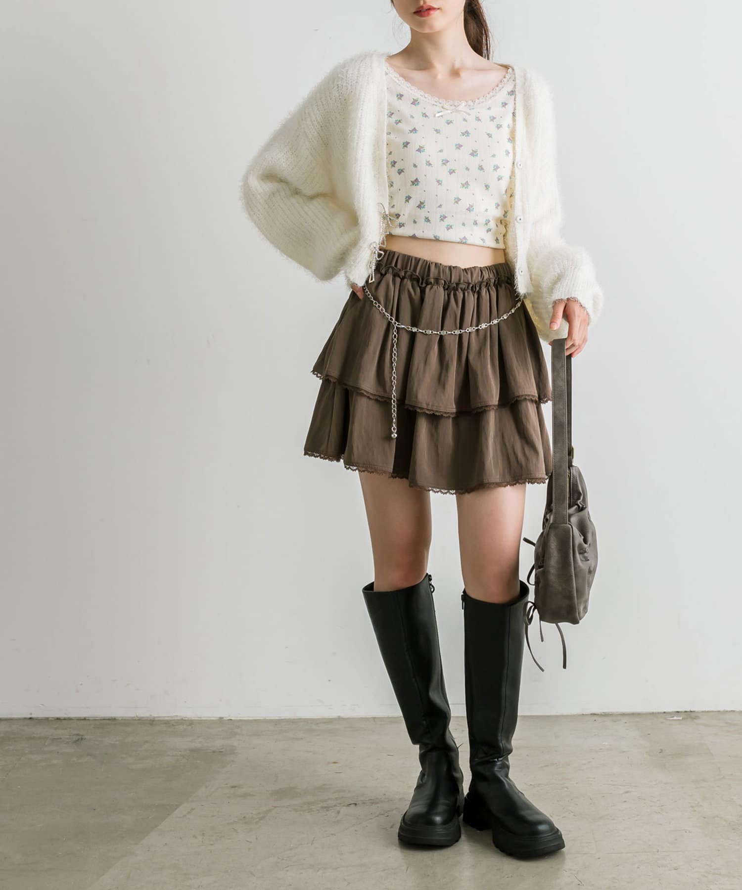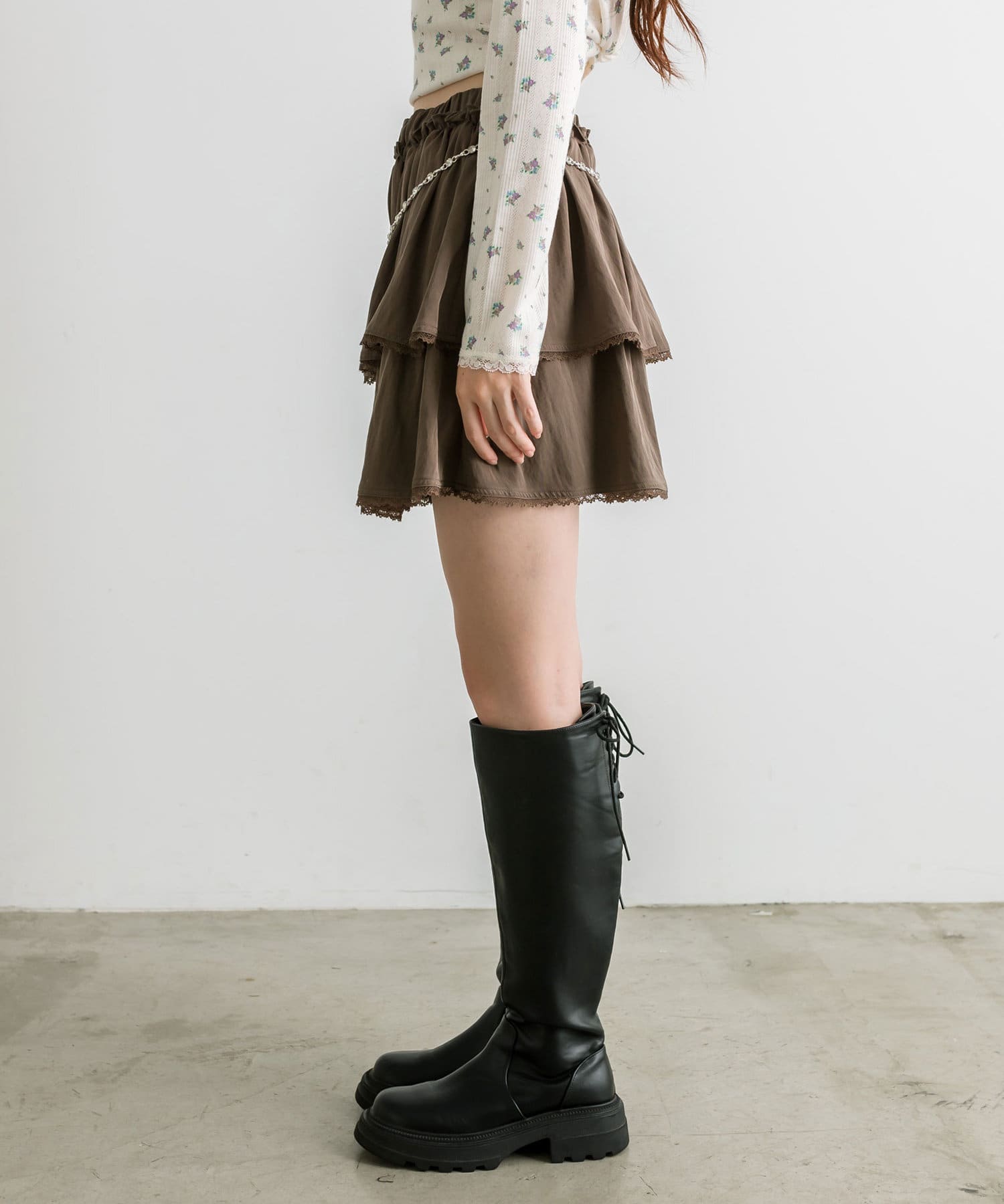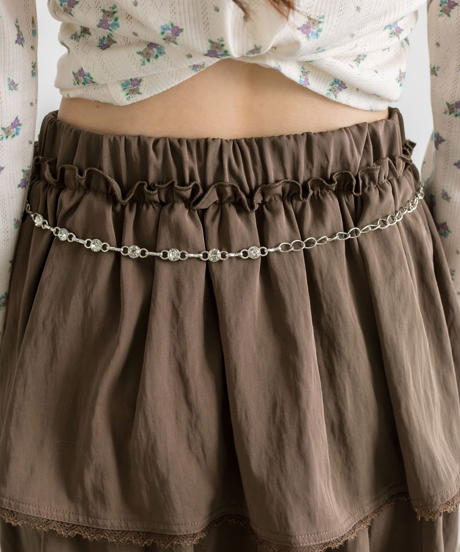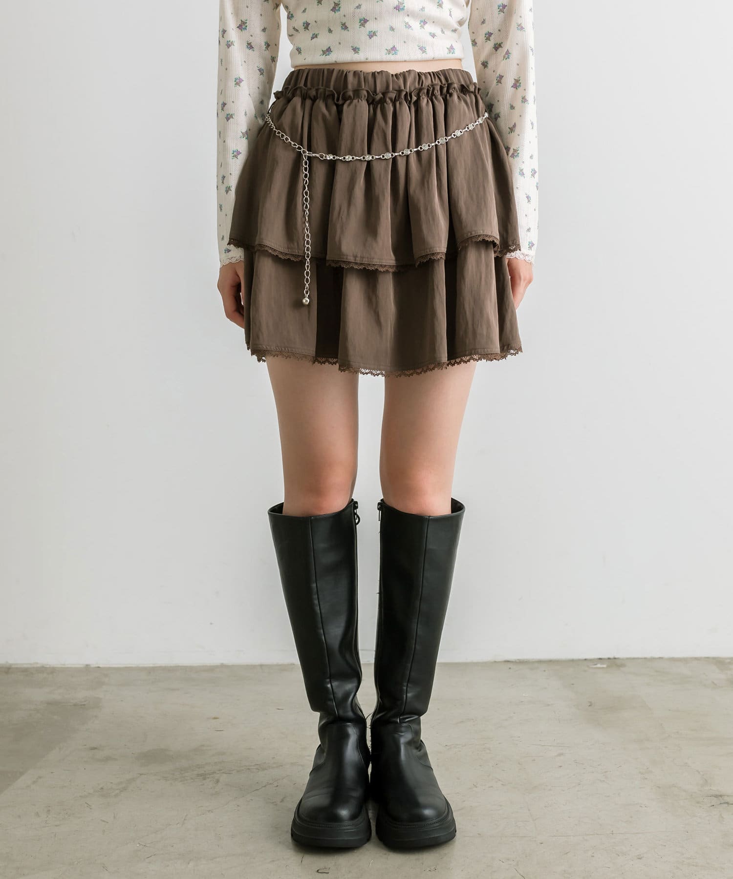 チェーンベルト付きティアードミニスカート