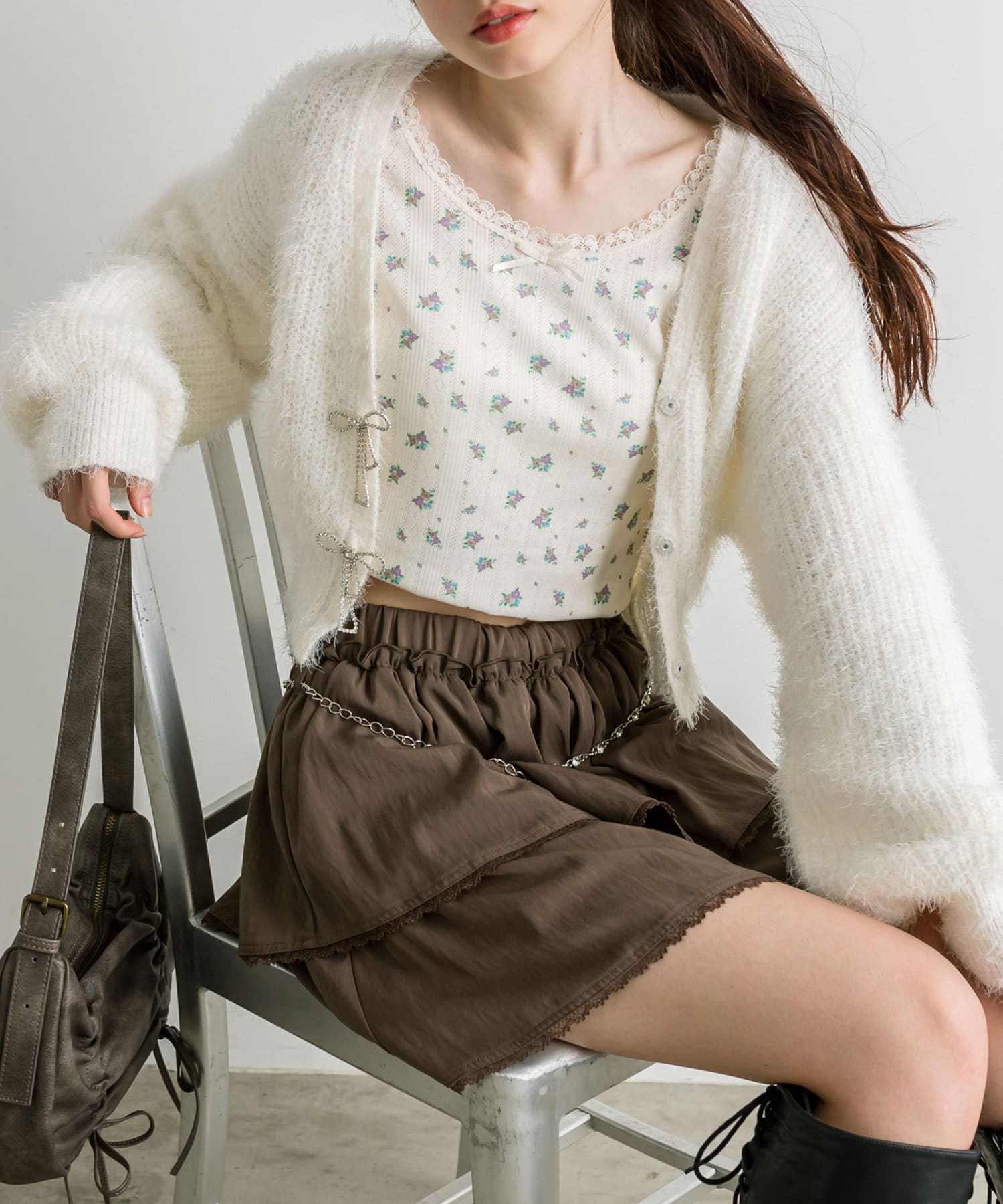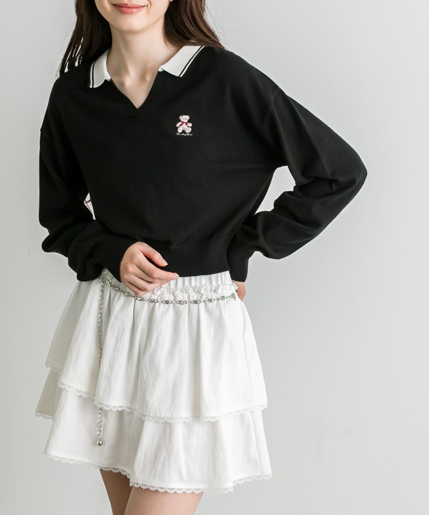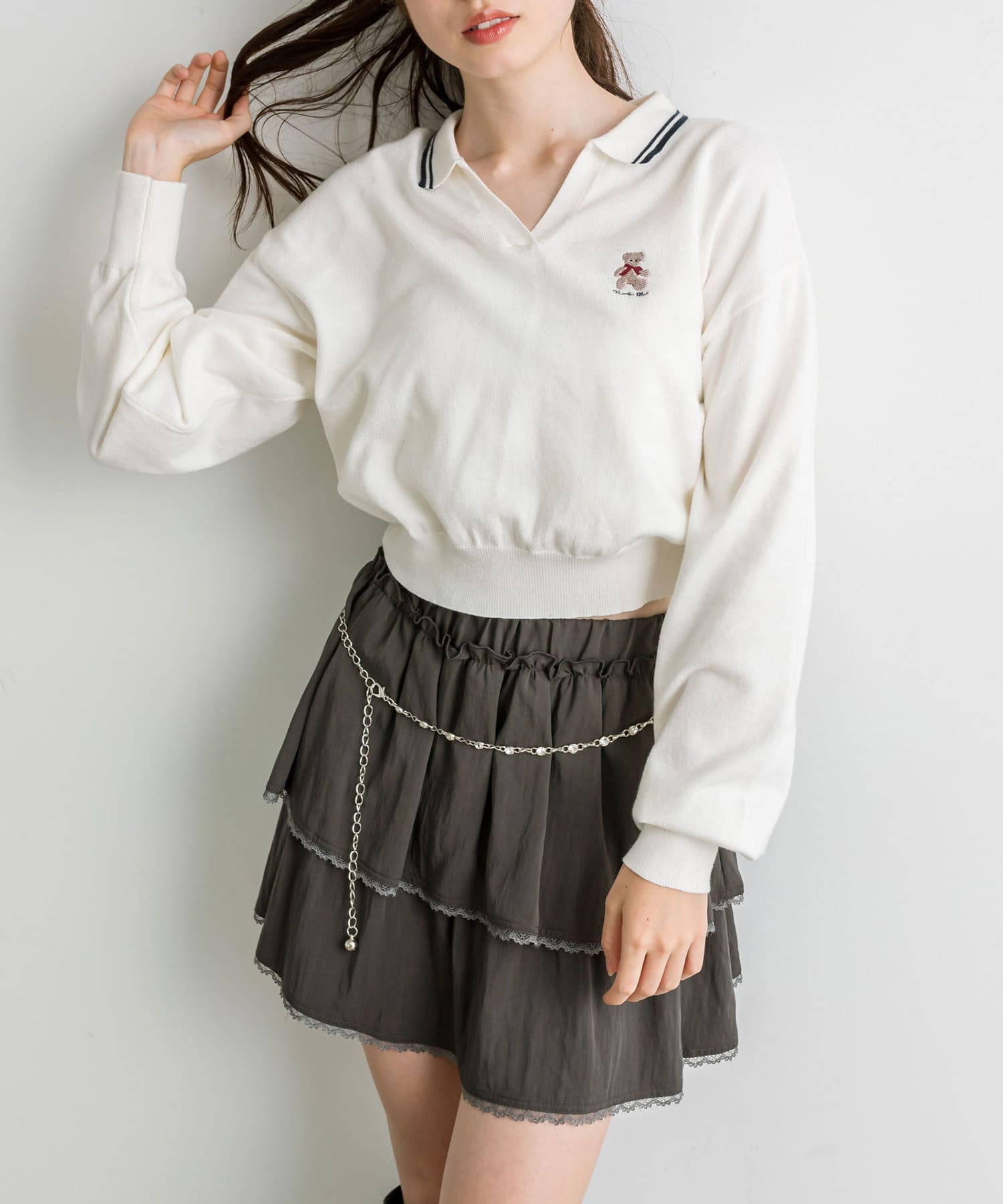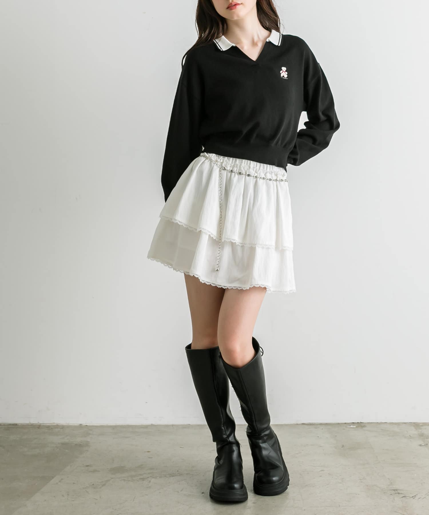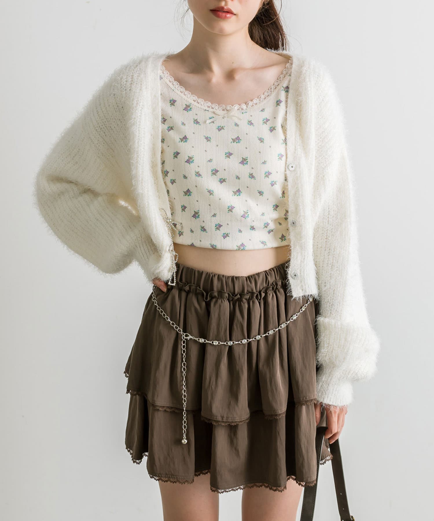 チェーンベルト付きティアードミニスカート