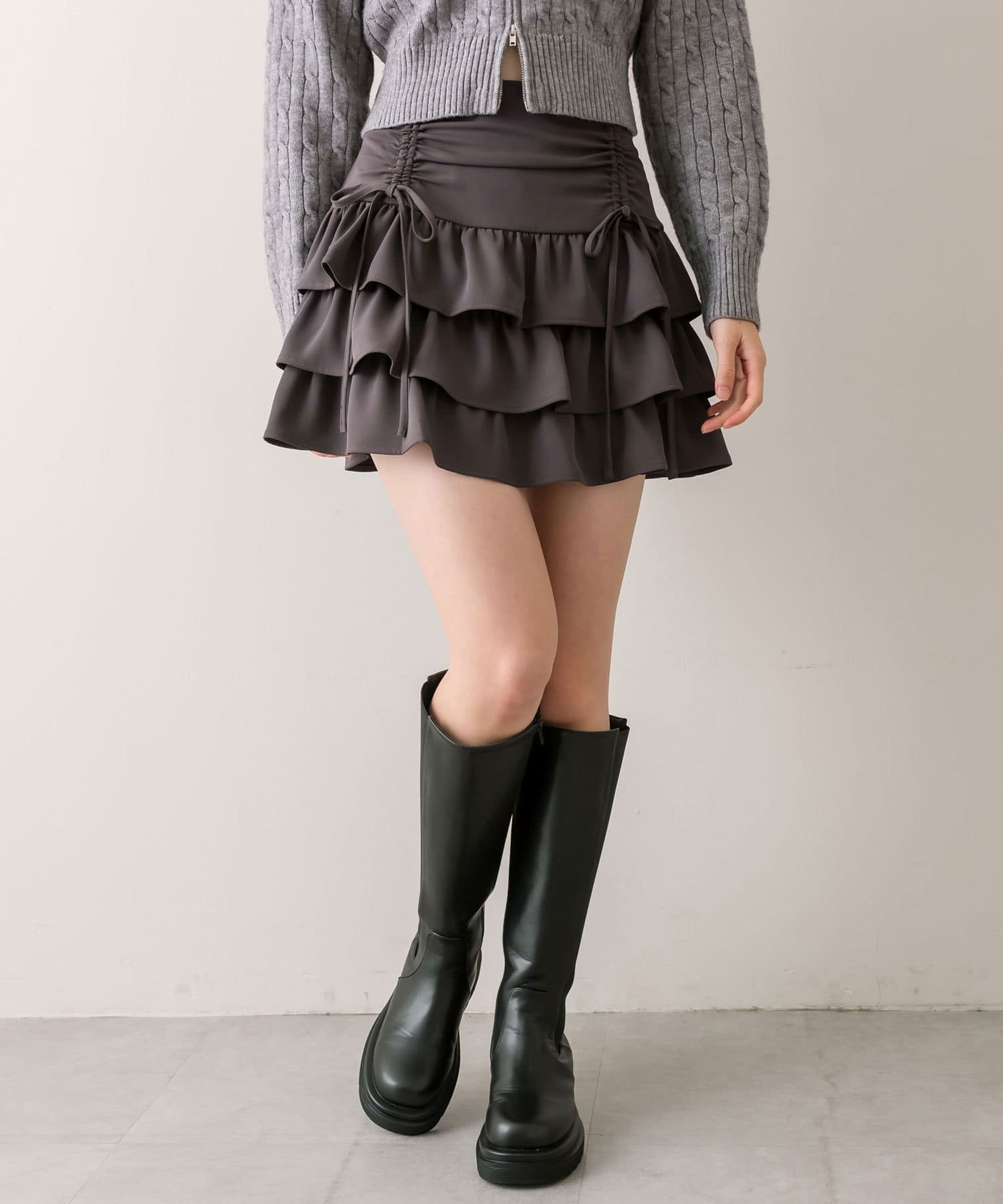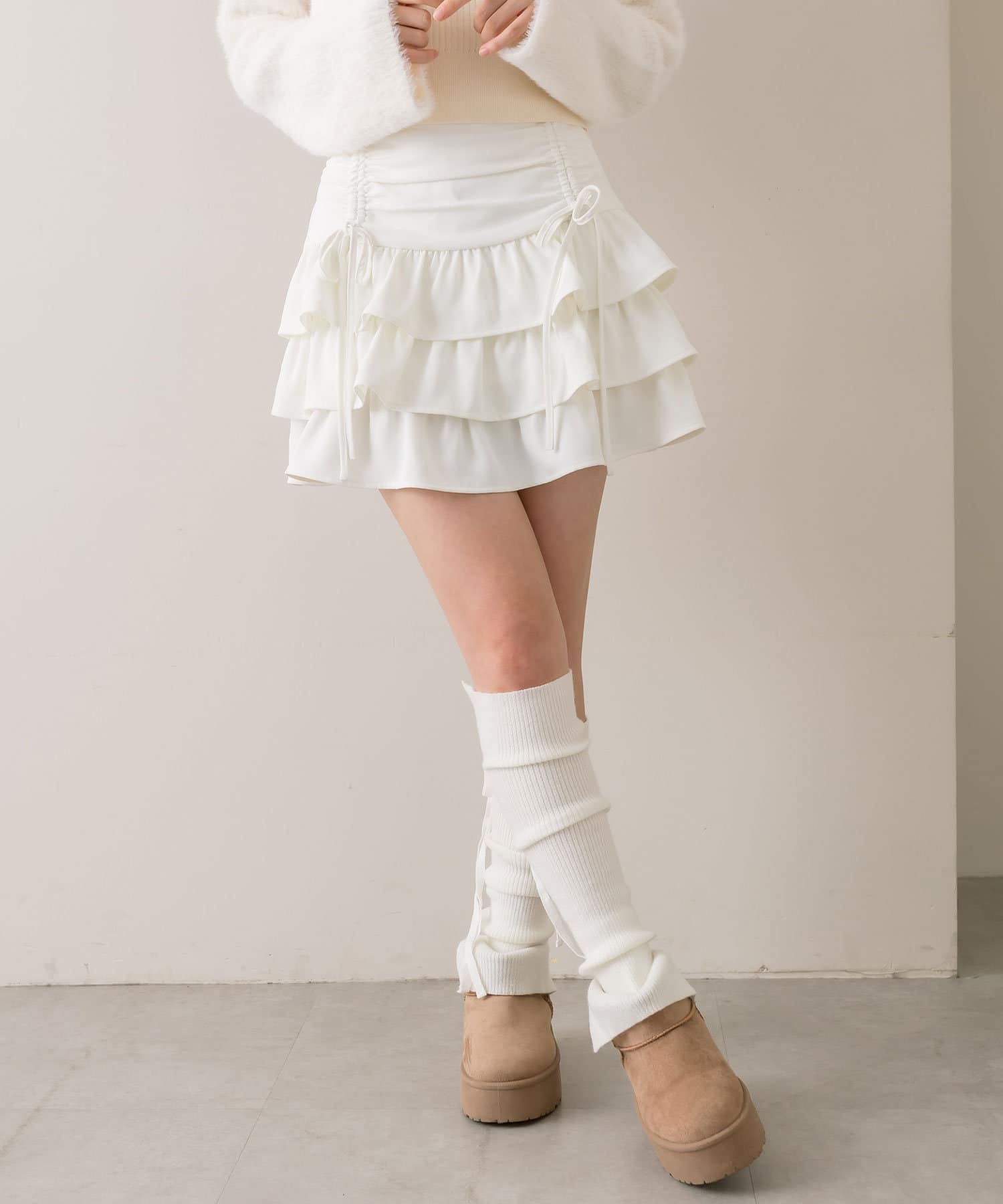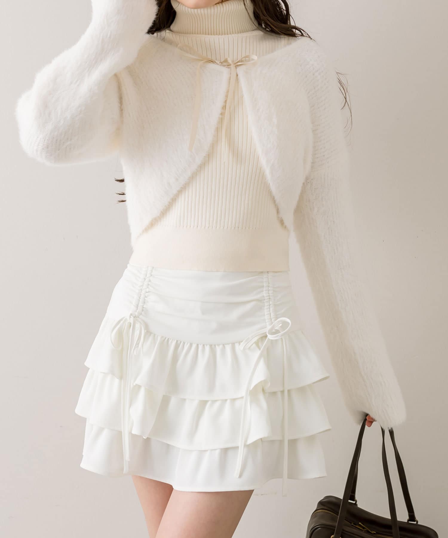 ・ウエスト部分のドロストとリボンがガーリーなミニスカート。