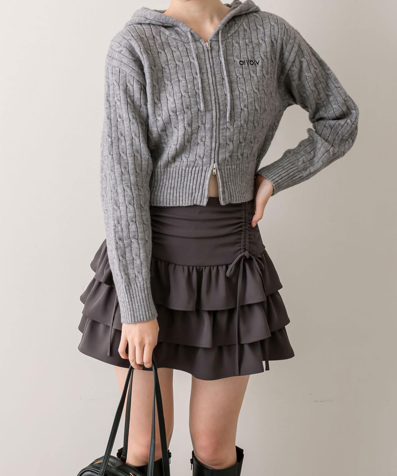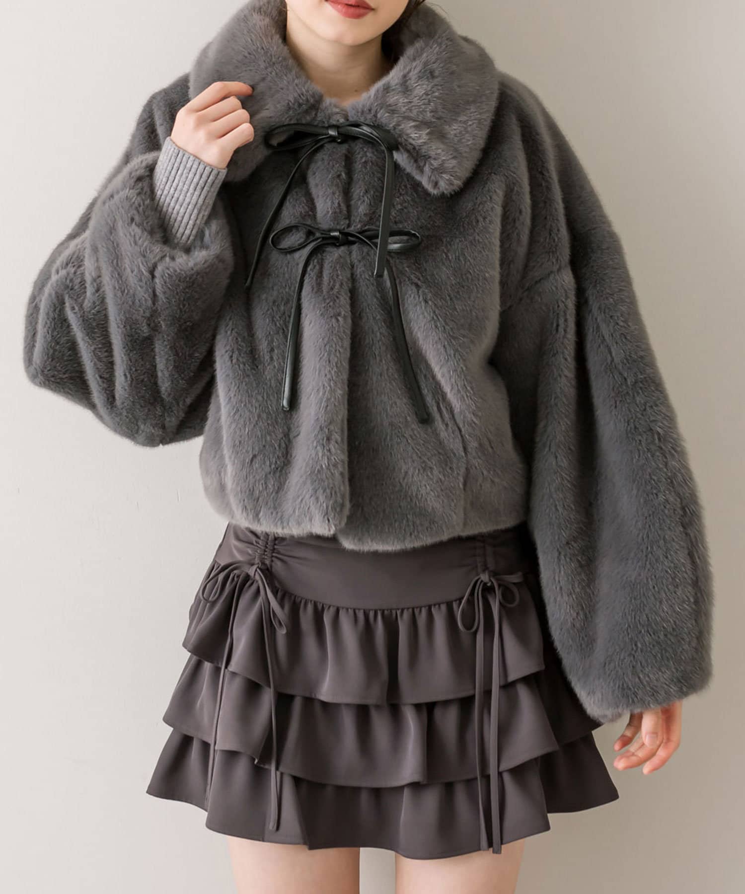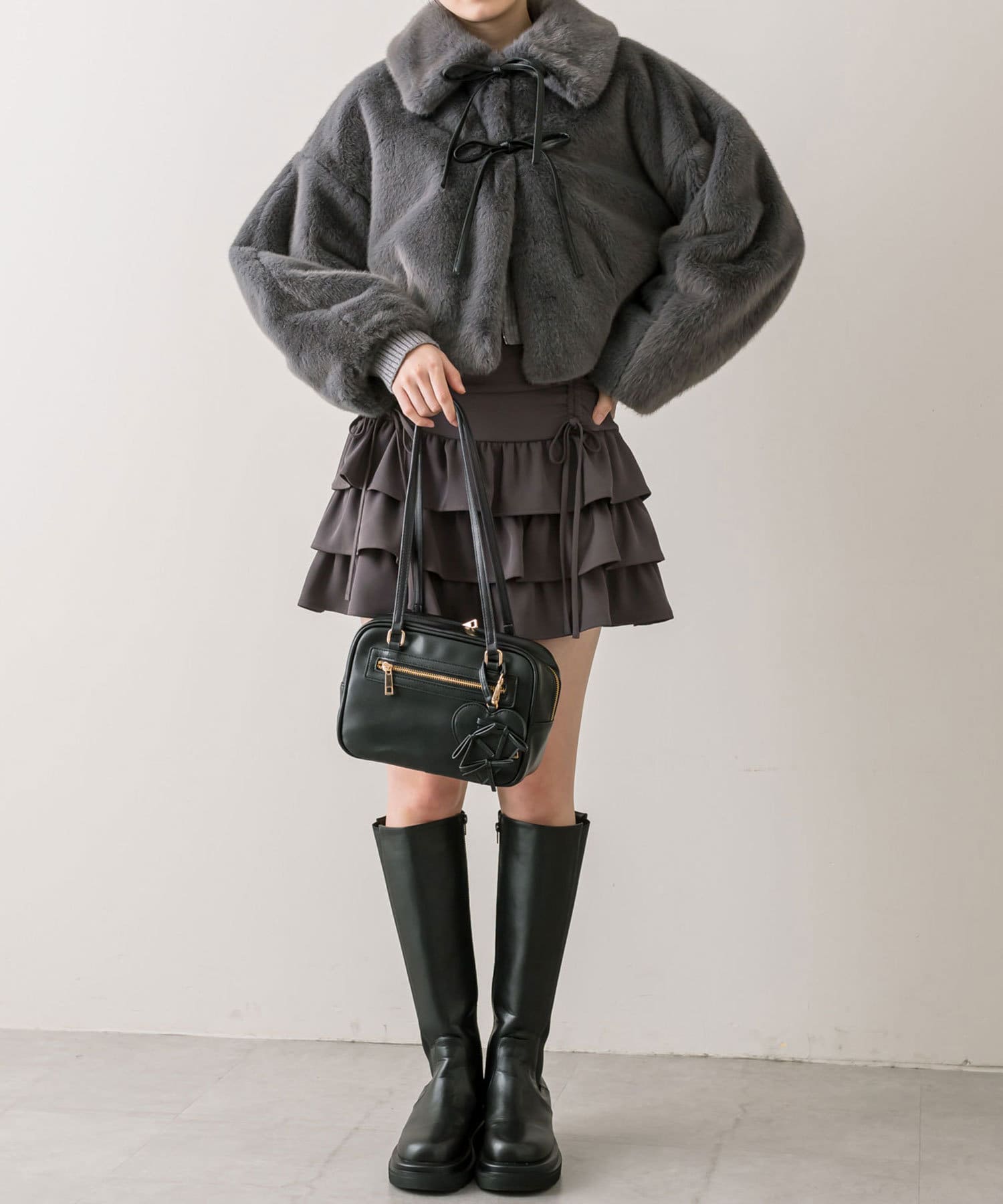 ・ウエスト部分のドロストとリボンがガーリーなミニスカート。