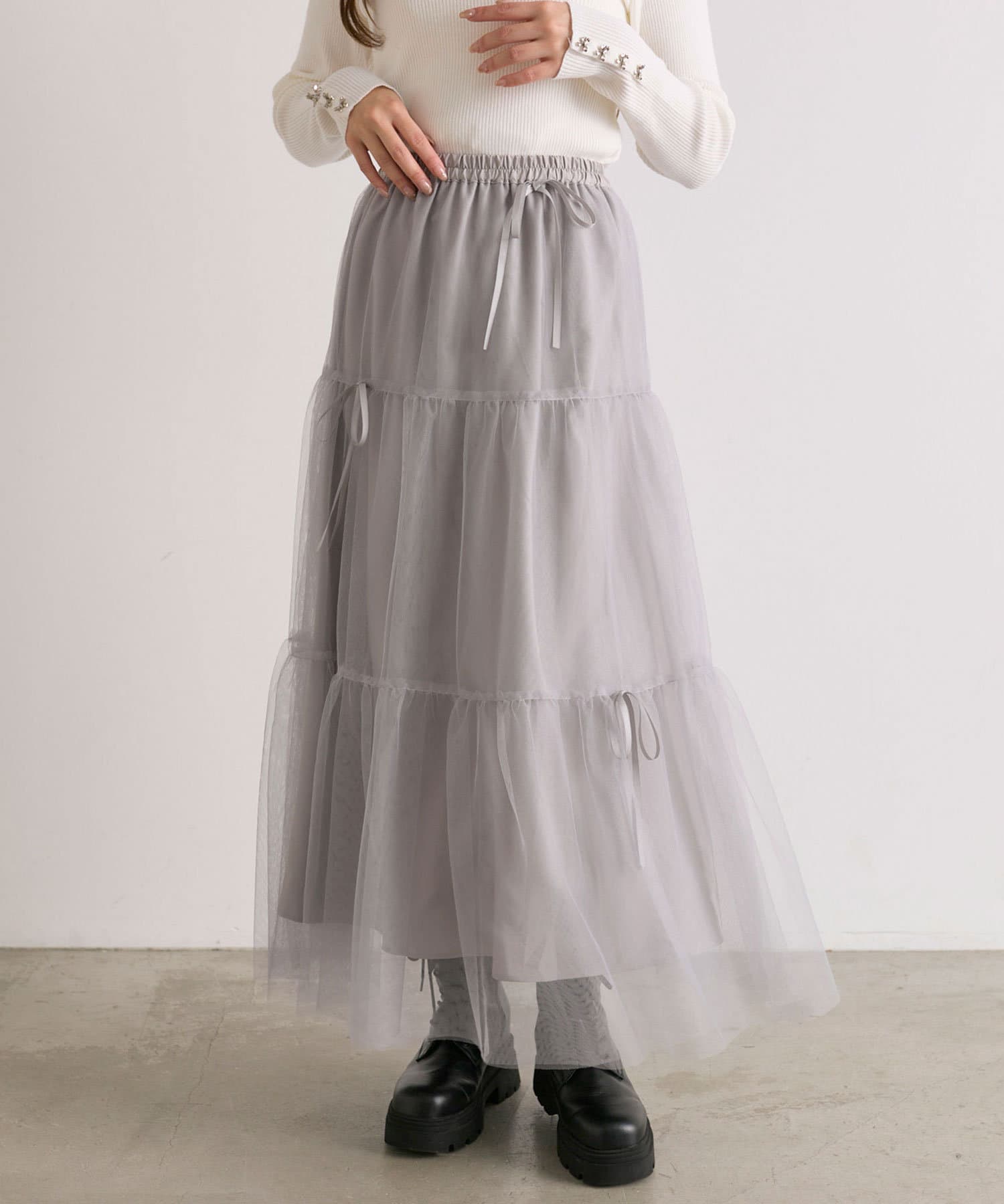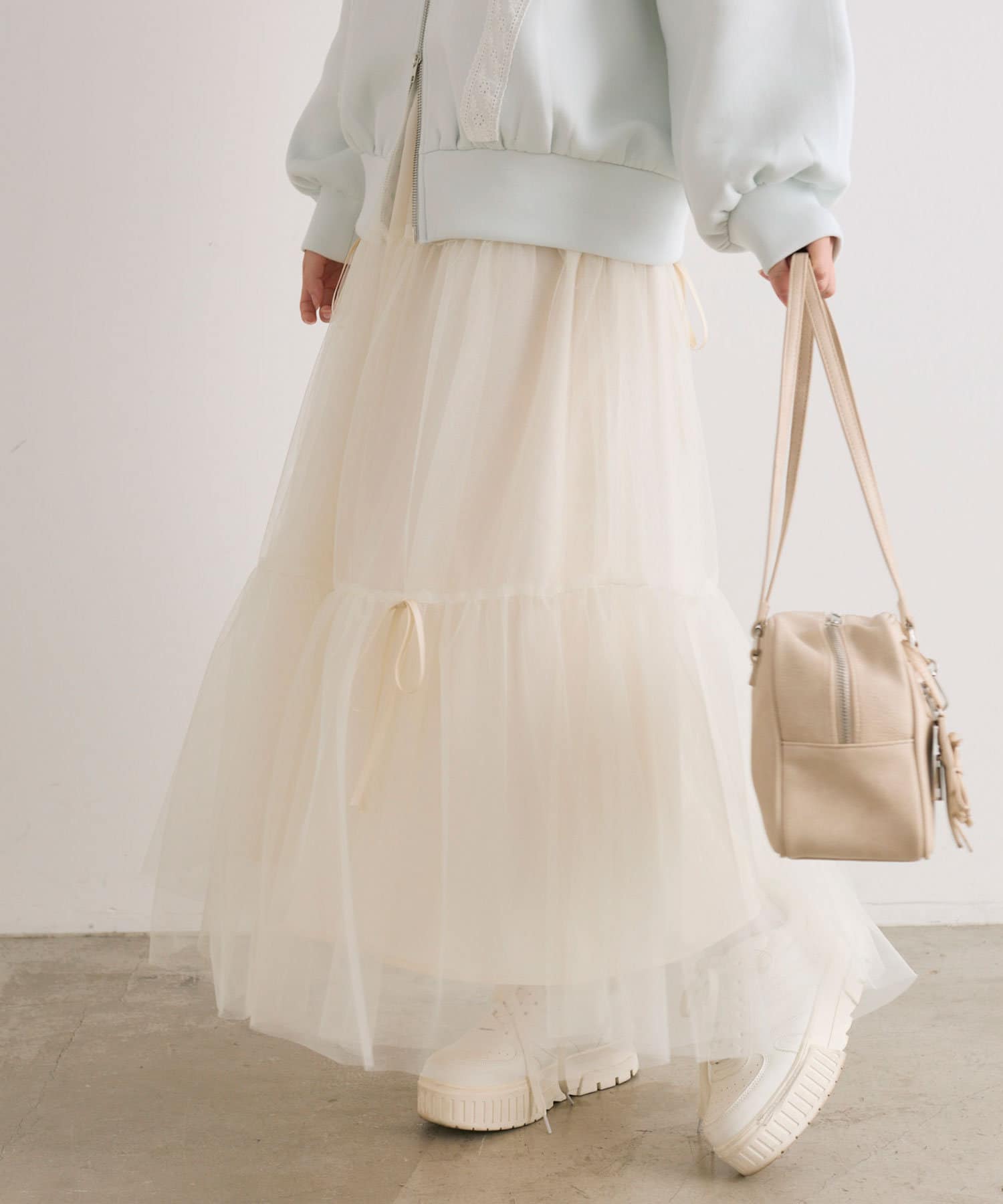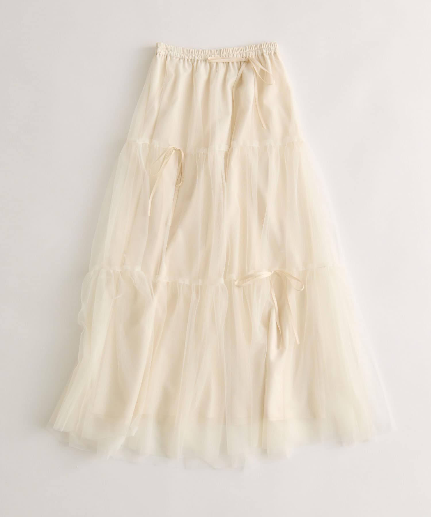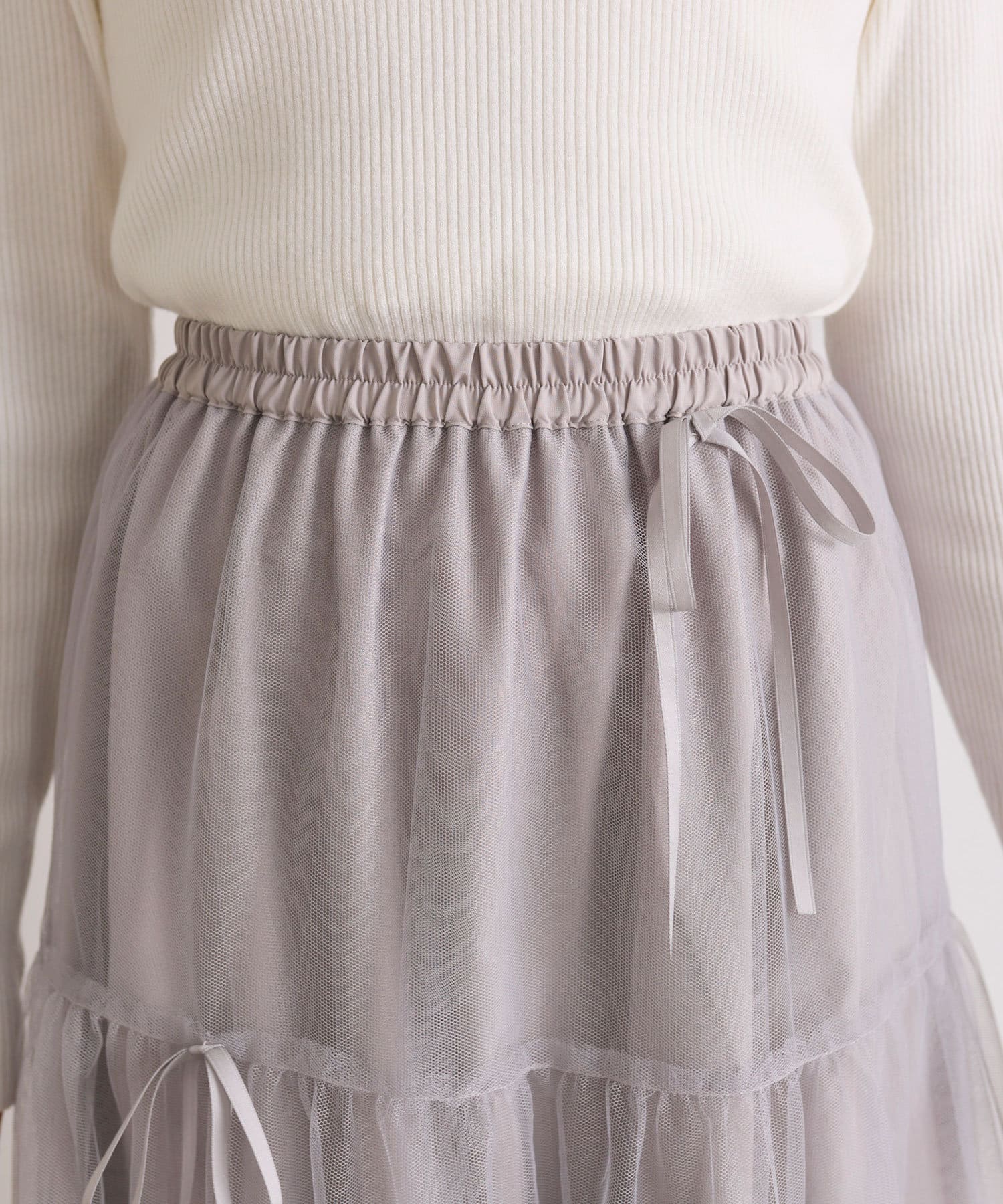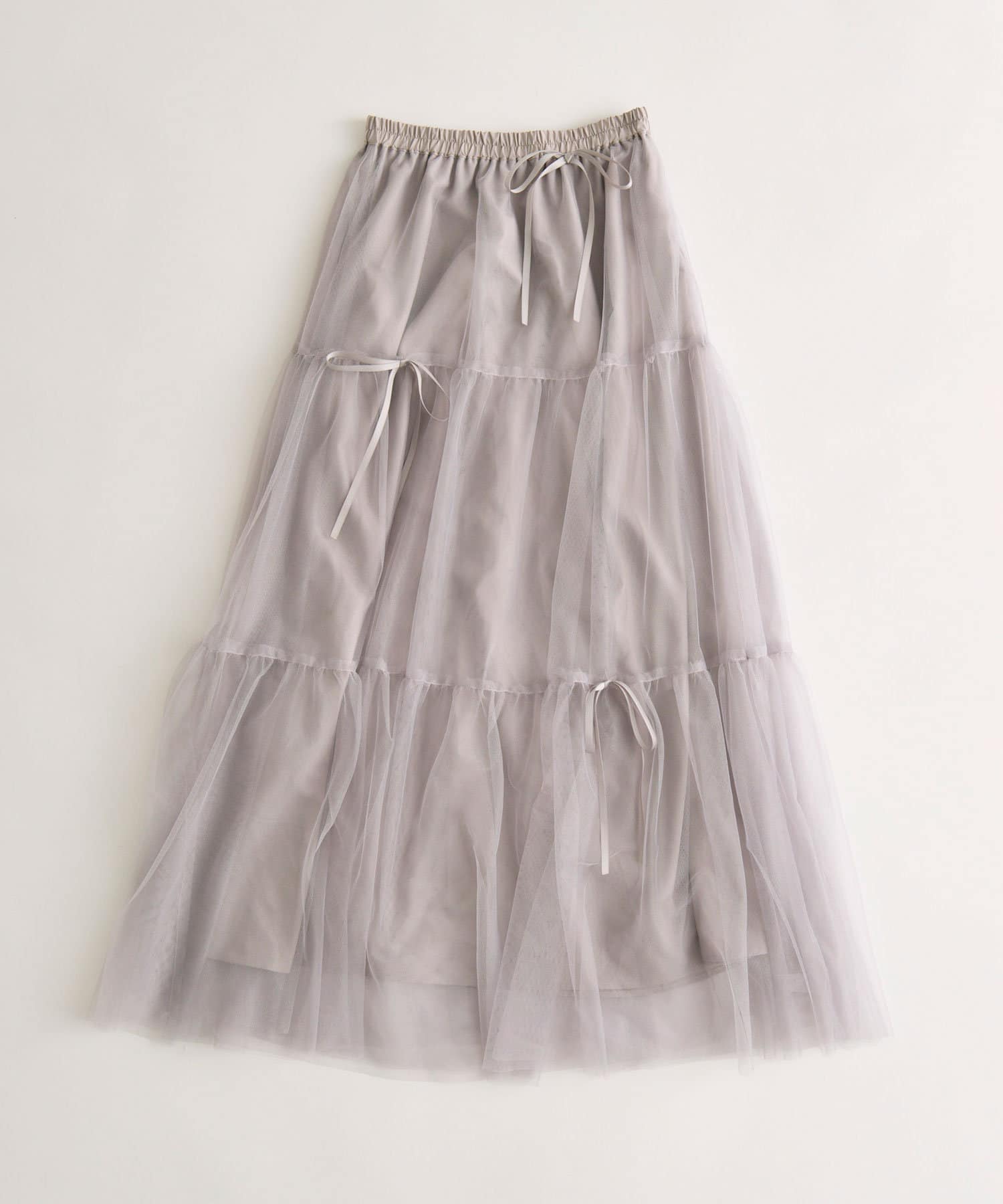 ・華奢なリボンがついていてシンプルすぎず、コーデが華やぐチュールスカート。