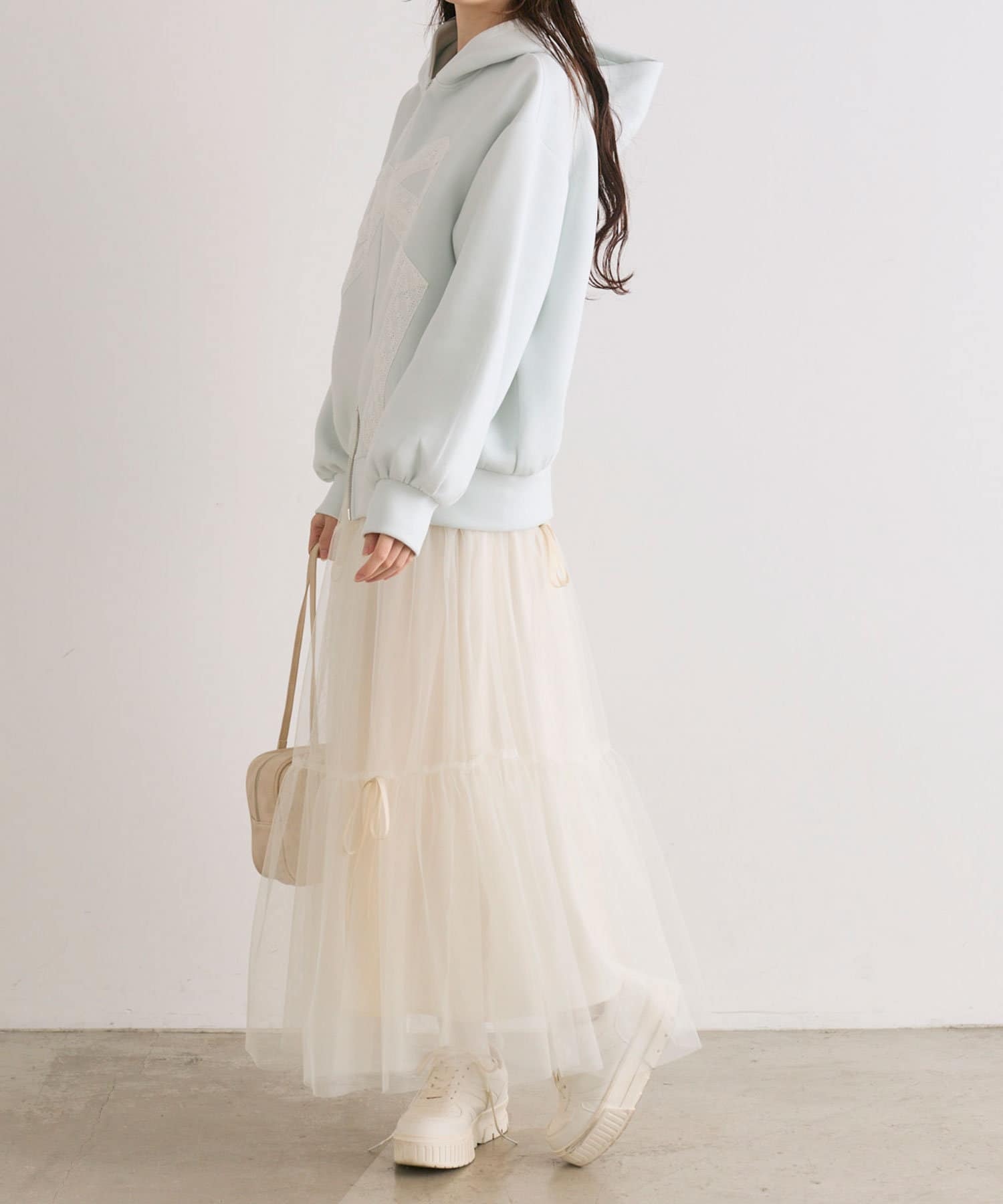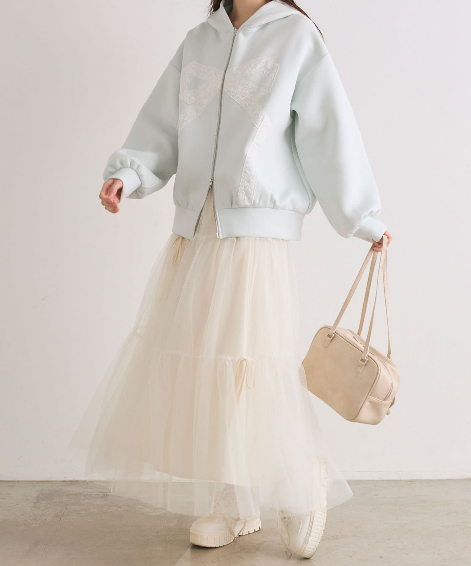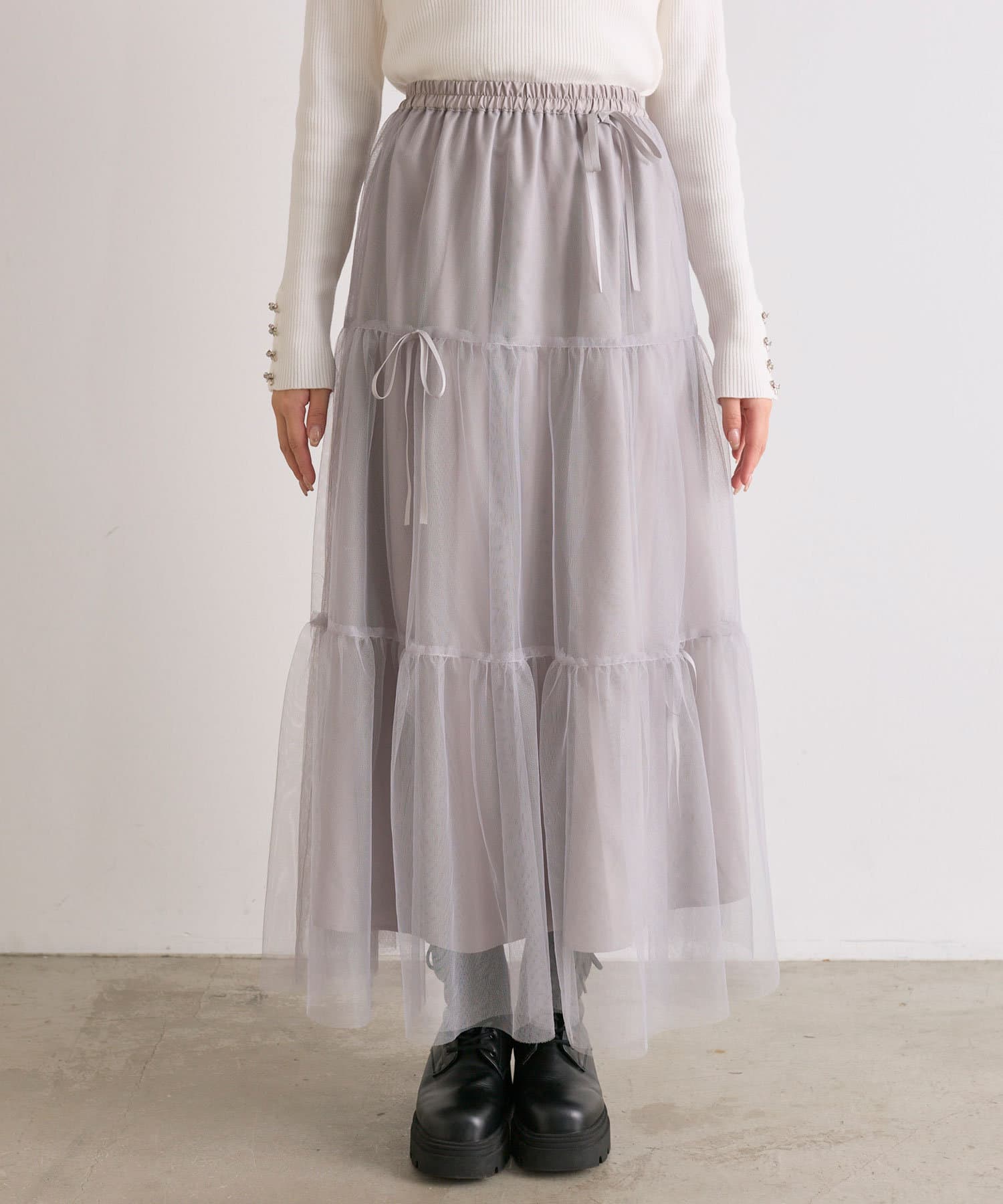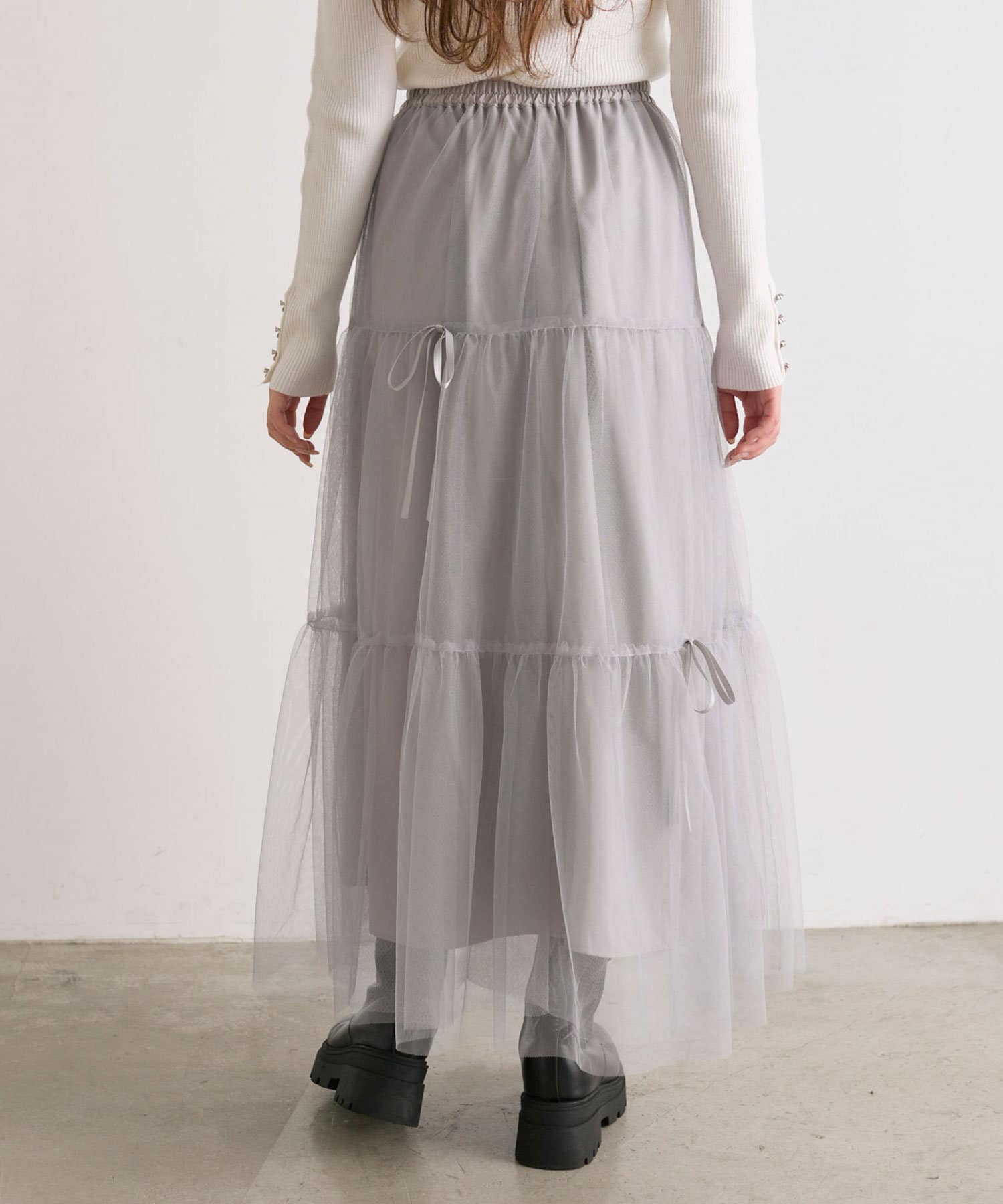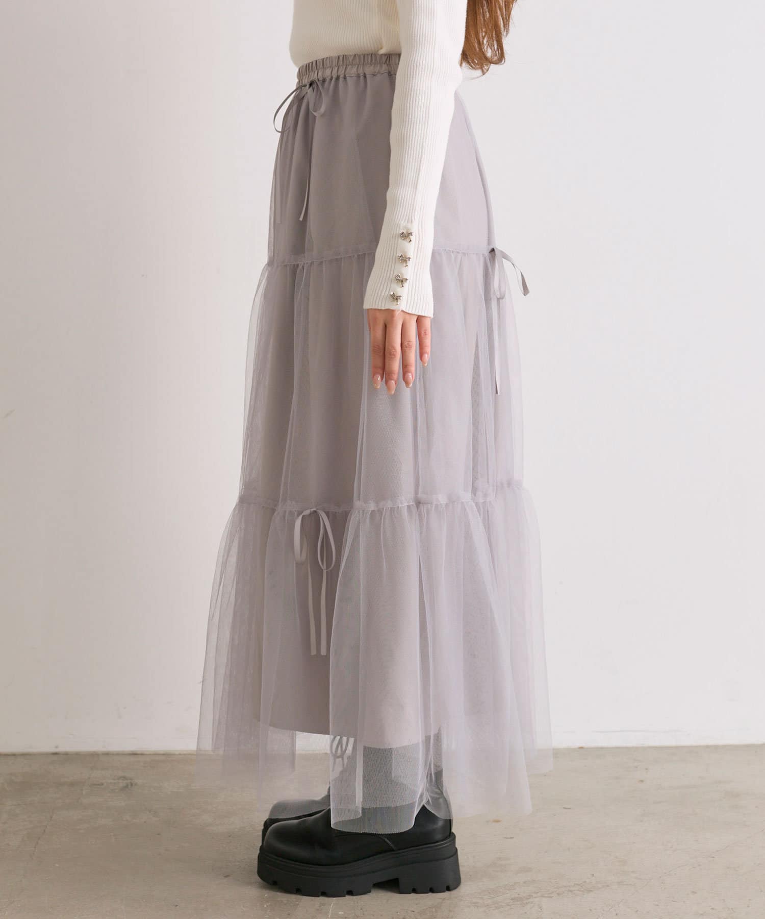 ・華奢なリボンがついていてシンプルすぎず、コーデが華やぐチュールスカート。