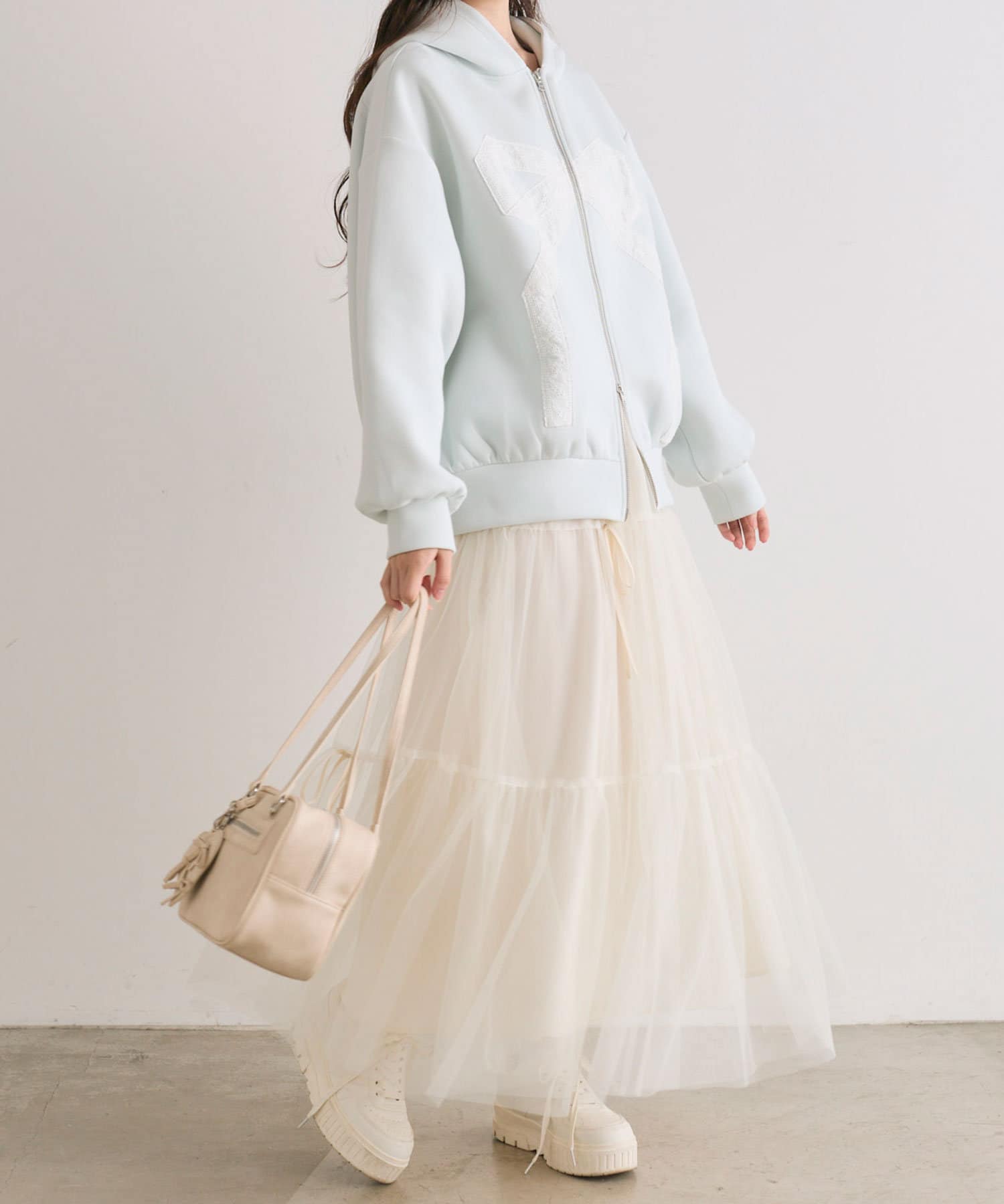 ・柔らかいチュール生地で、動いた時の揺れ感が女性らしさを演出します。
