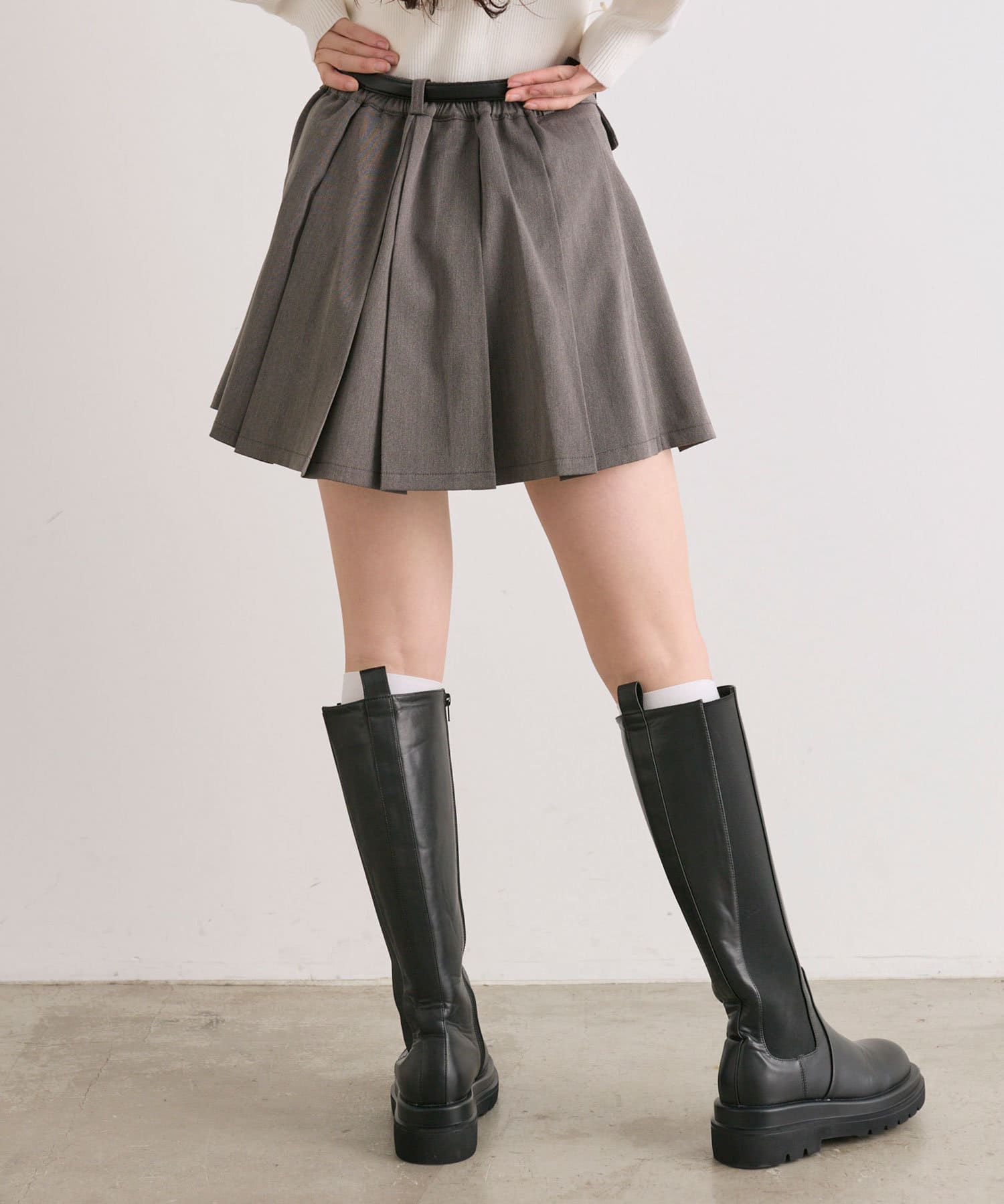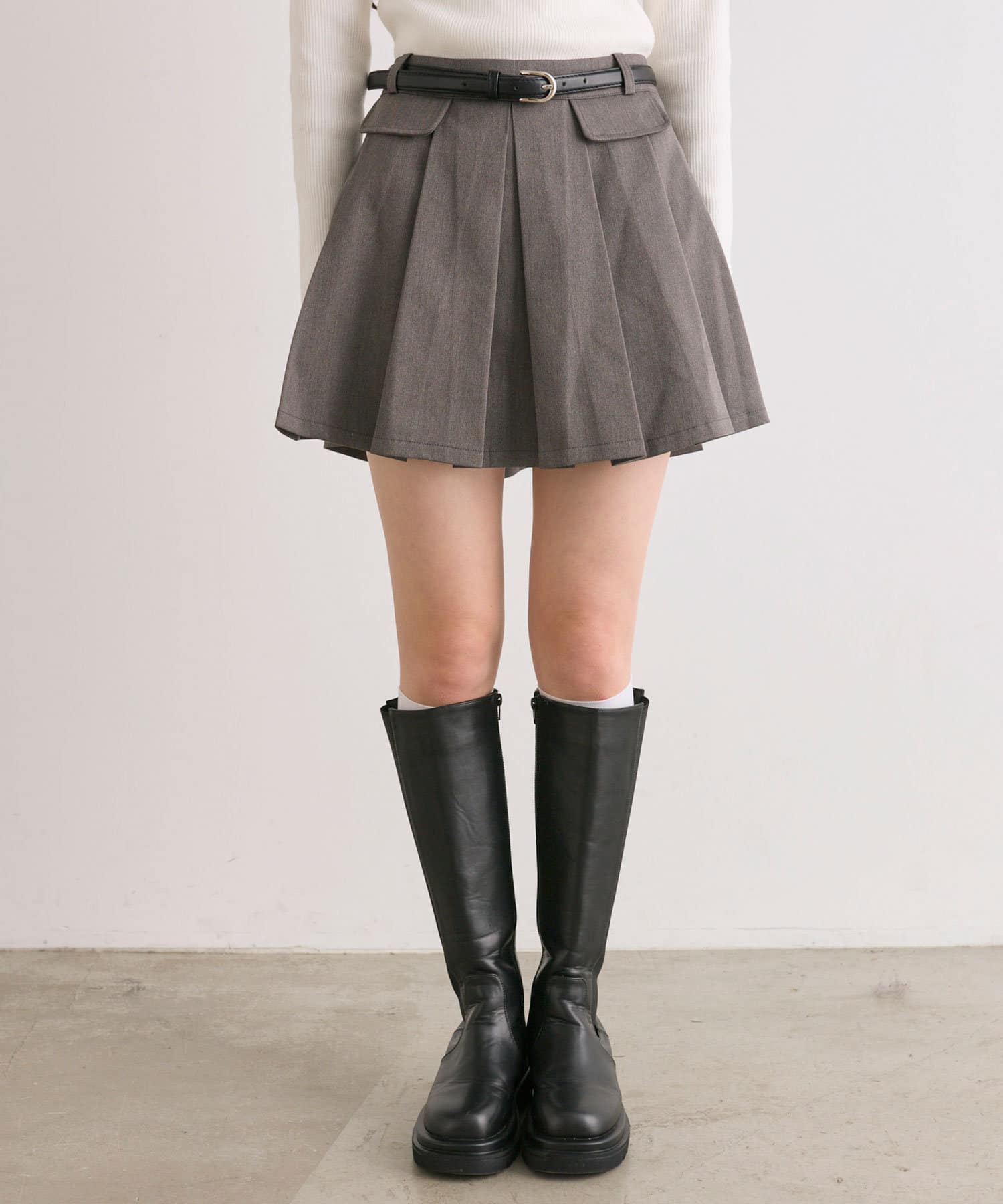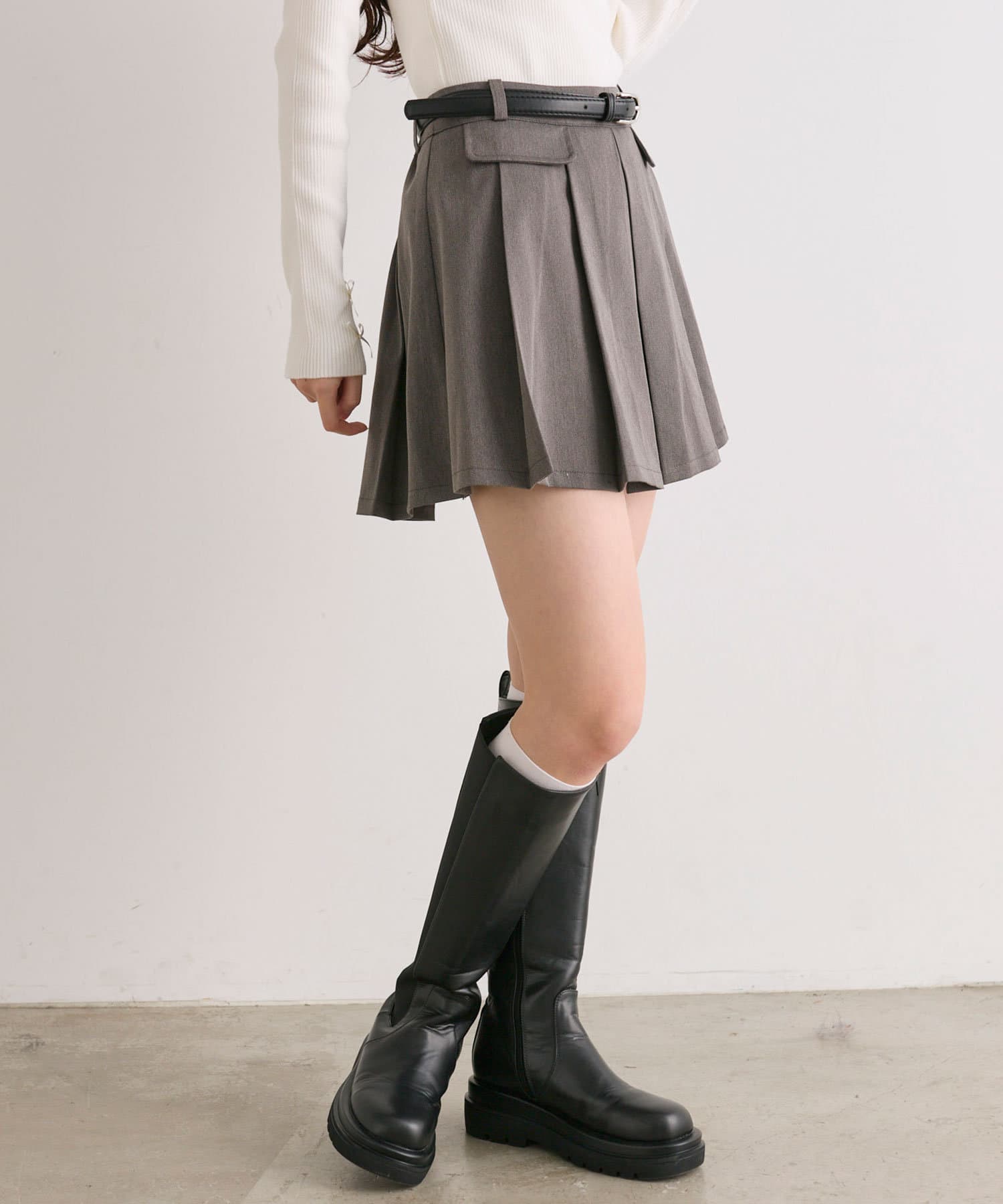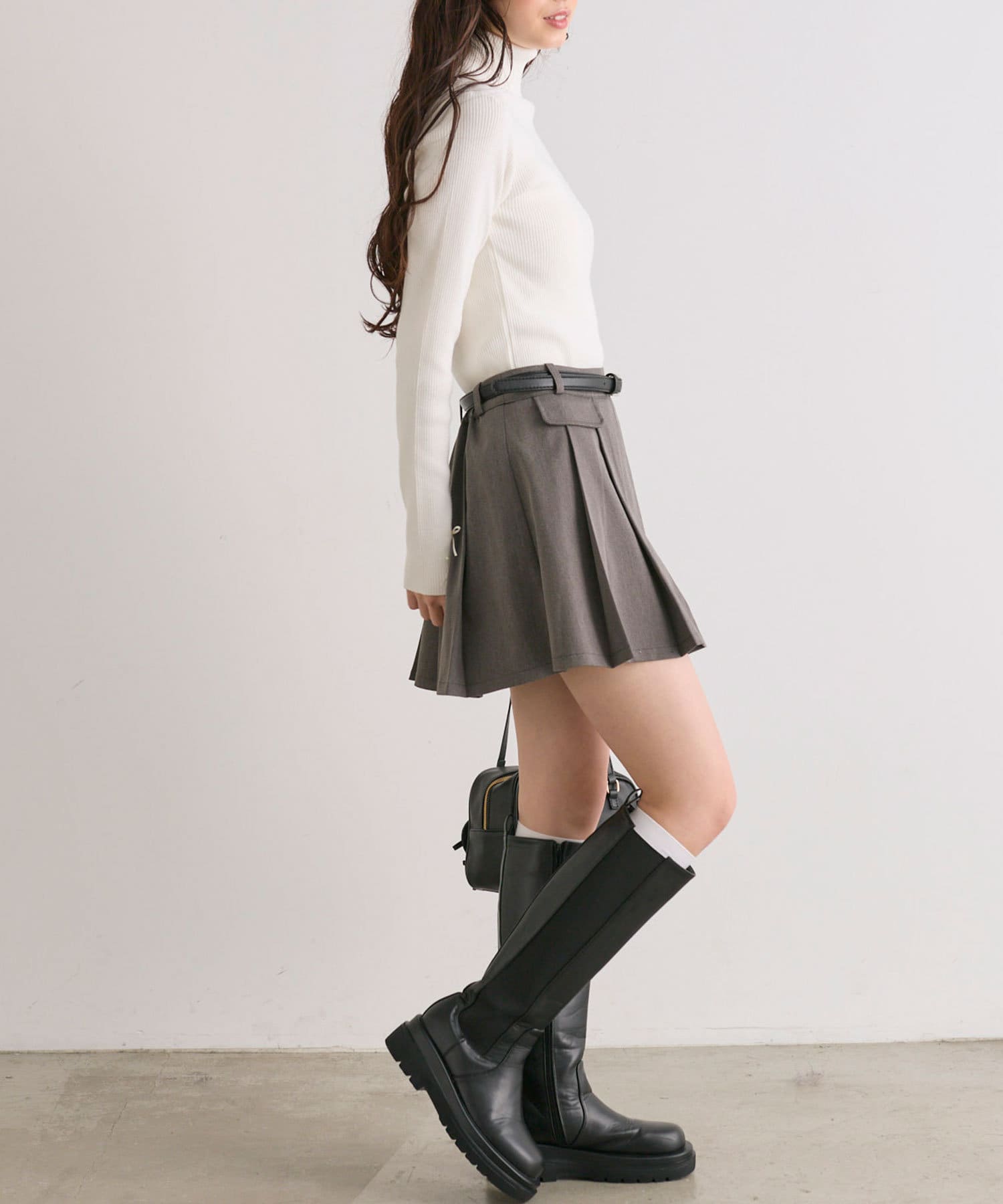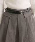 ・合皮ベルト付きでウエストマークできて、色はアイボリー/レッド系はブラウン、グレー系/ブラックはブラックです。