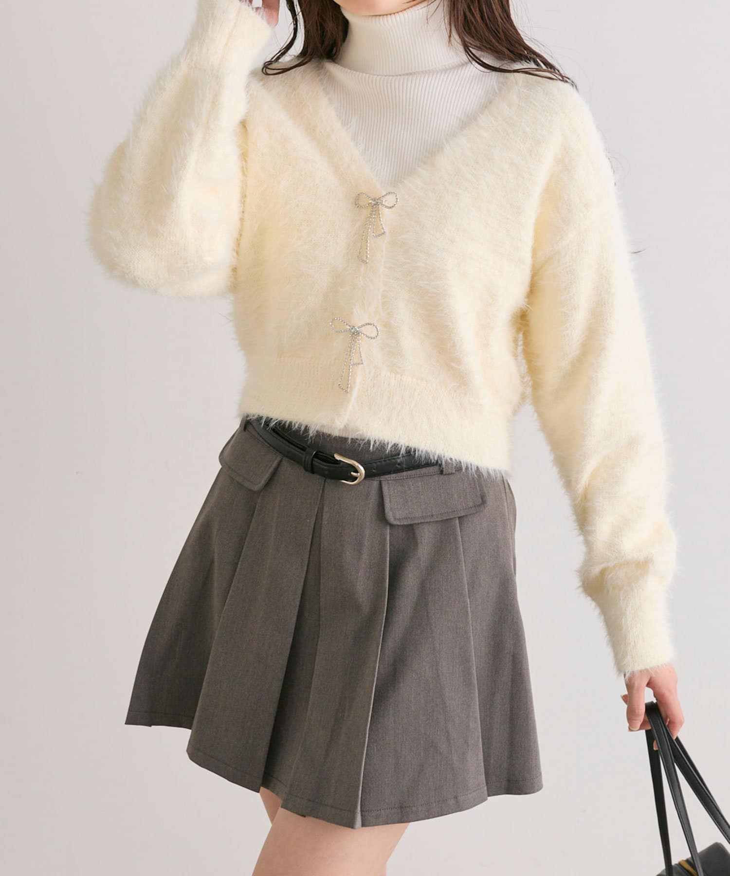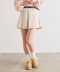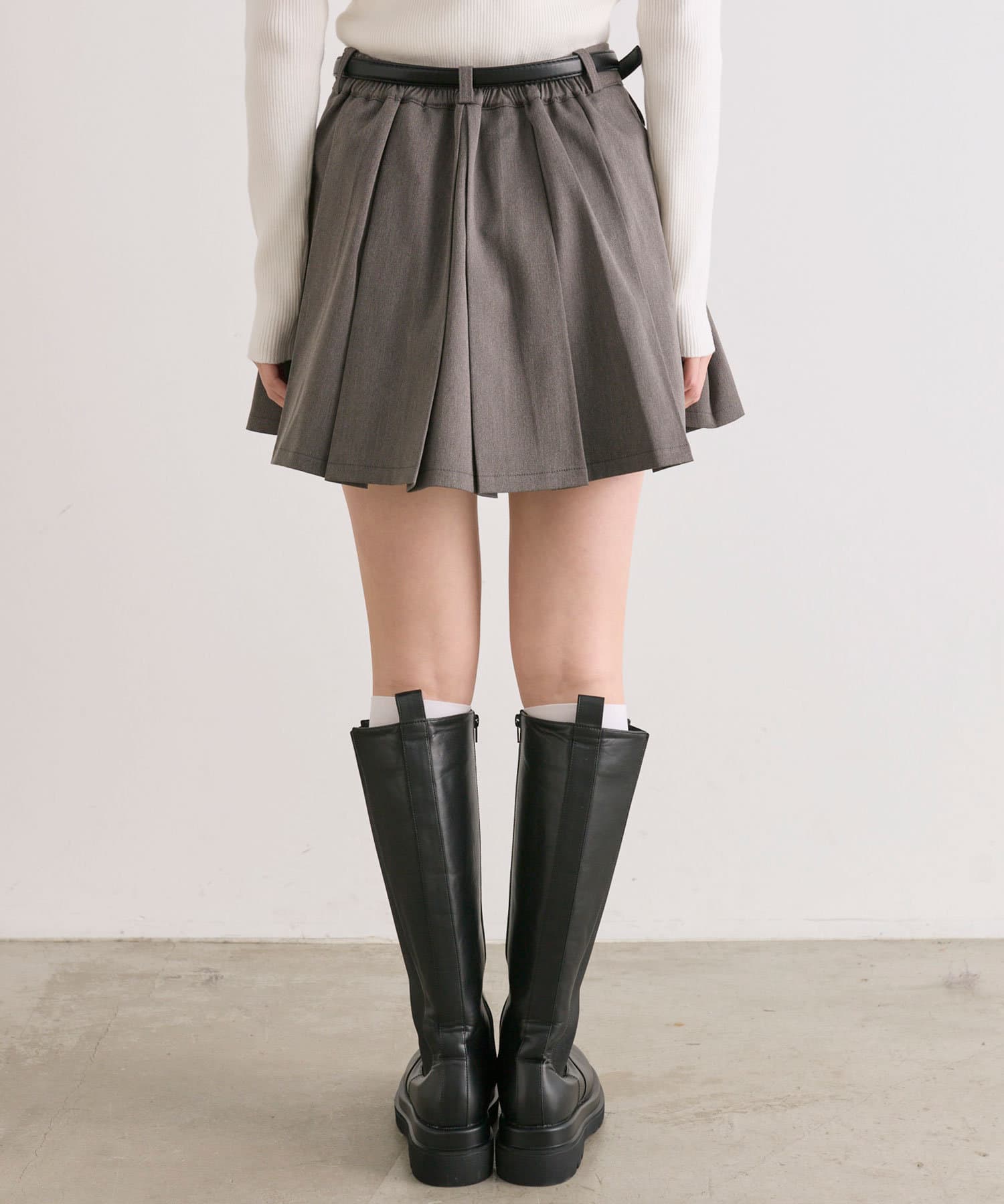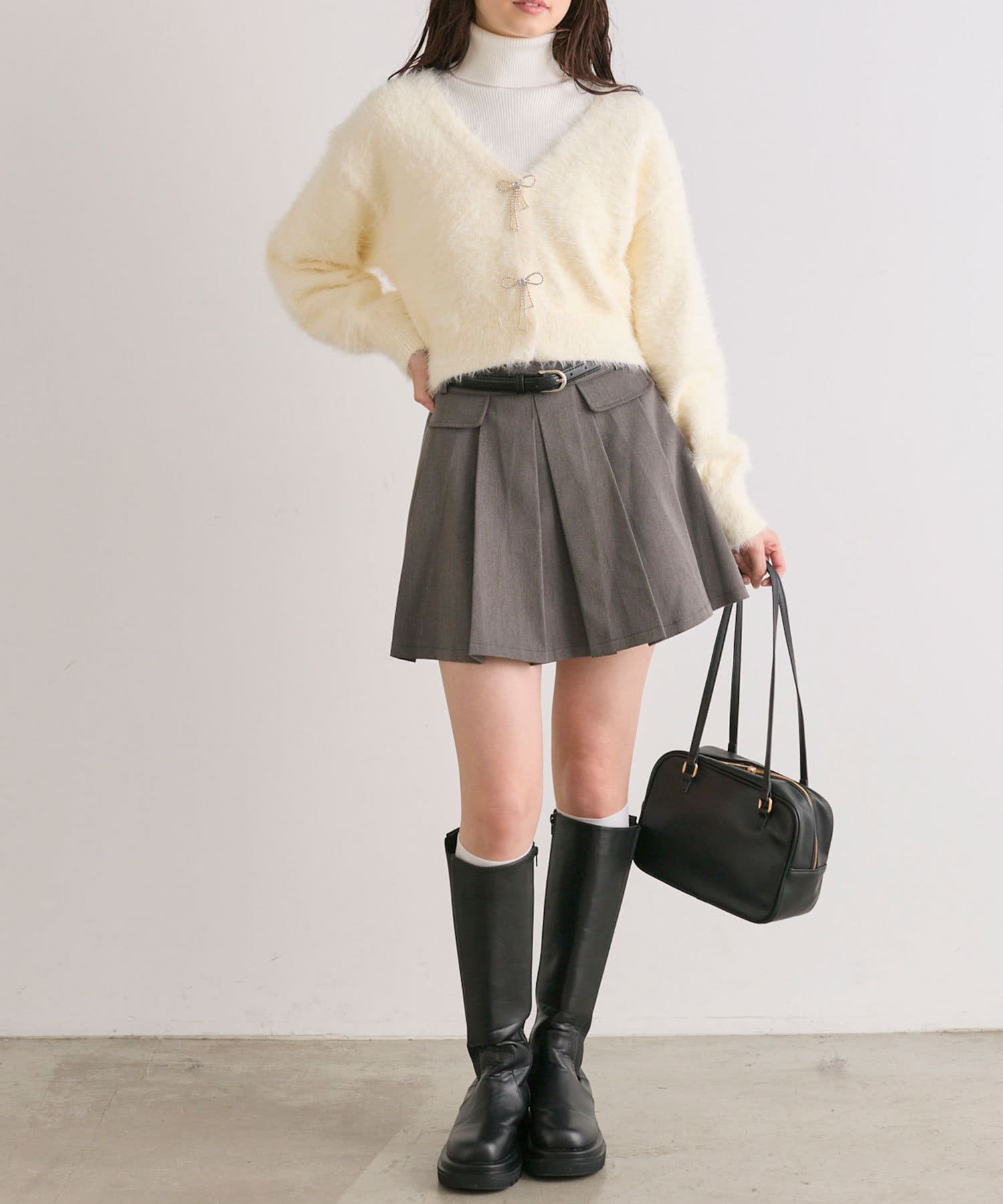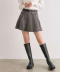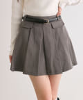 ・合皮ベルト付きでウエストマークできて、色はアイボリー/レッド系はブラウン、グレー系/ブラックはブラックです。