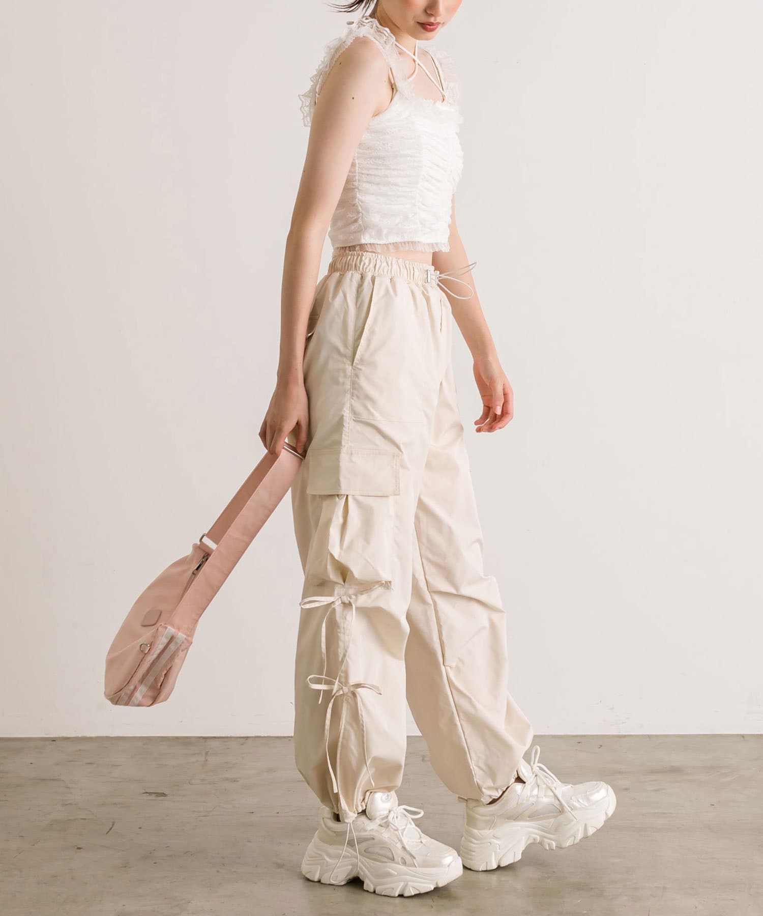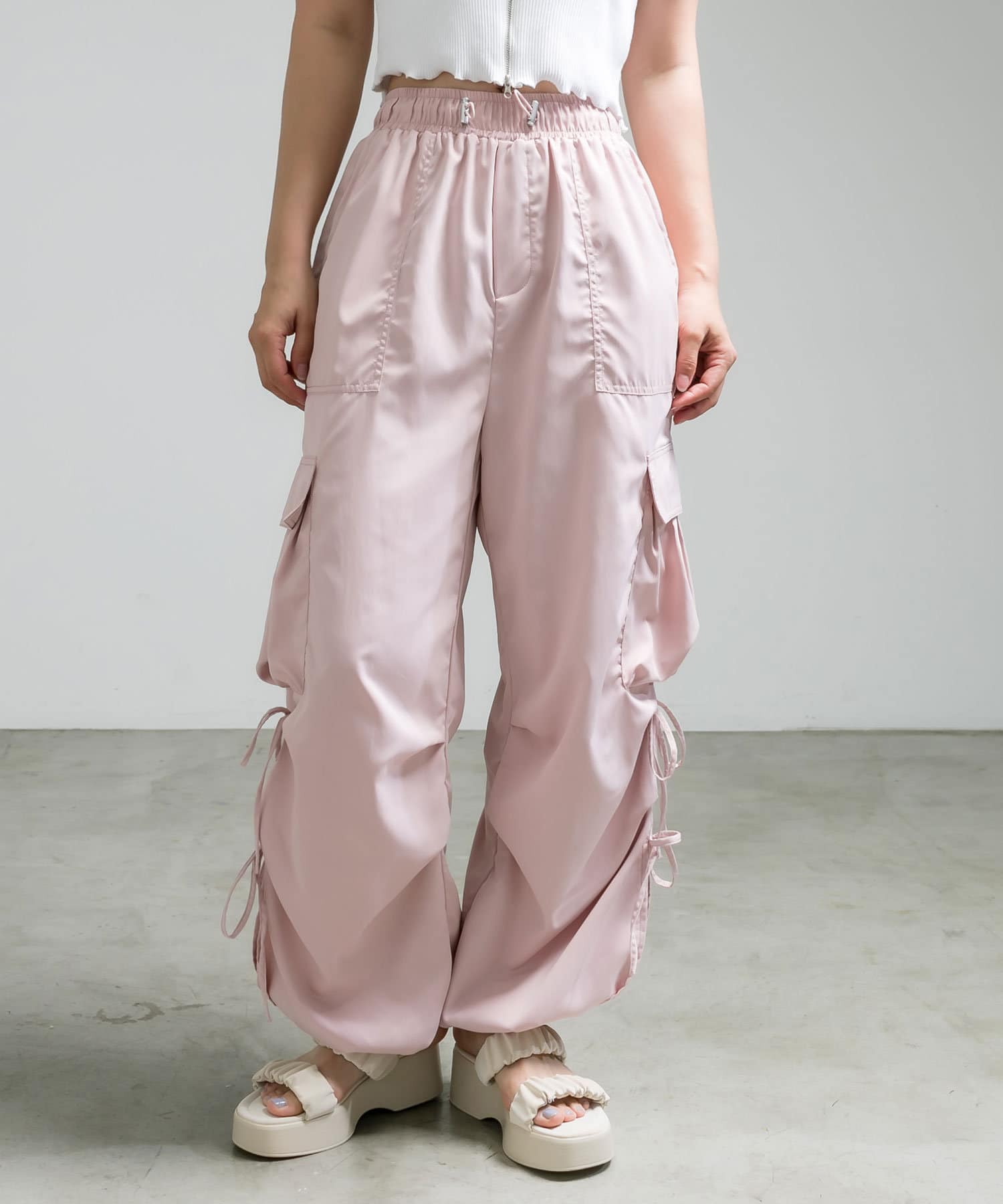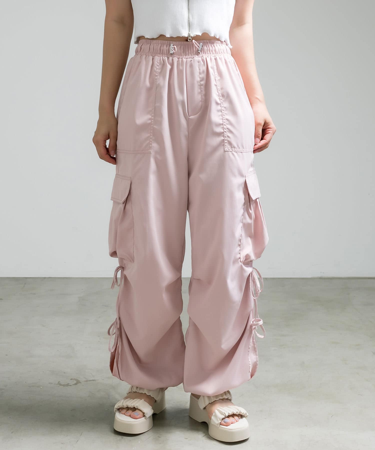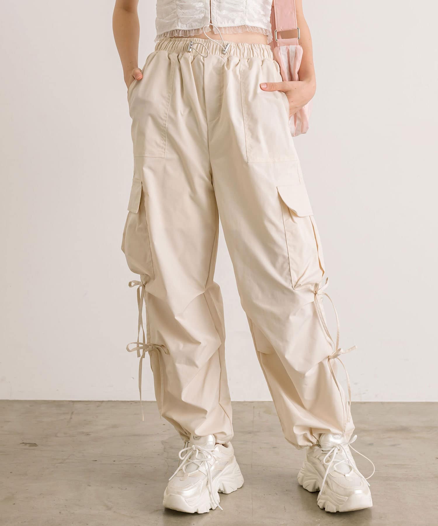 リボンたっぷりでバレエコアなデザインのカーゴパンツ