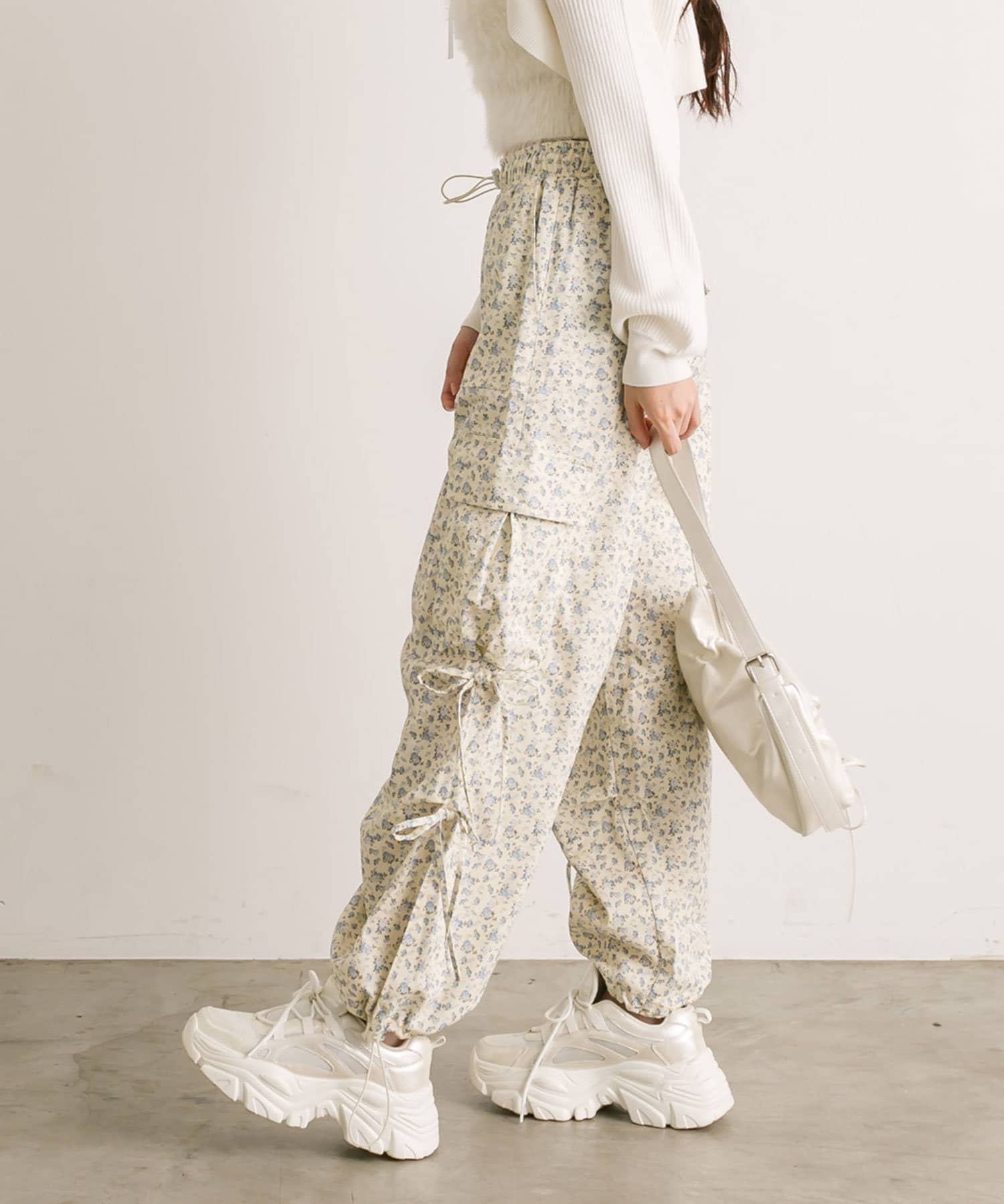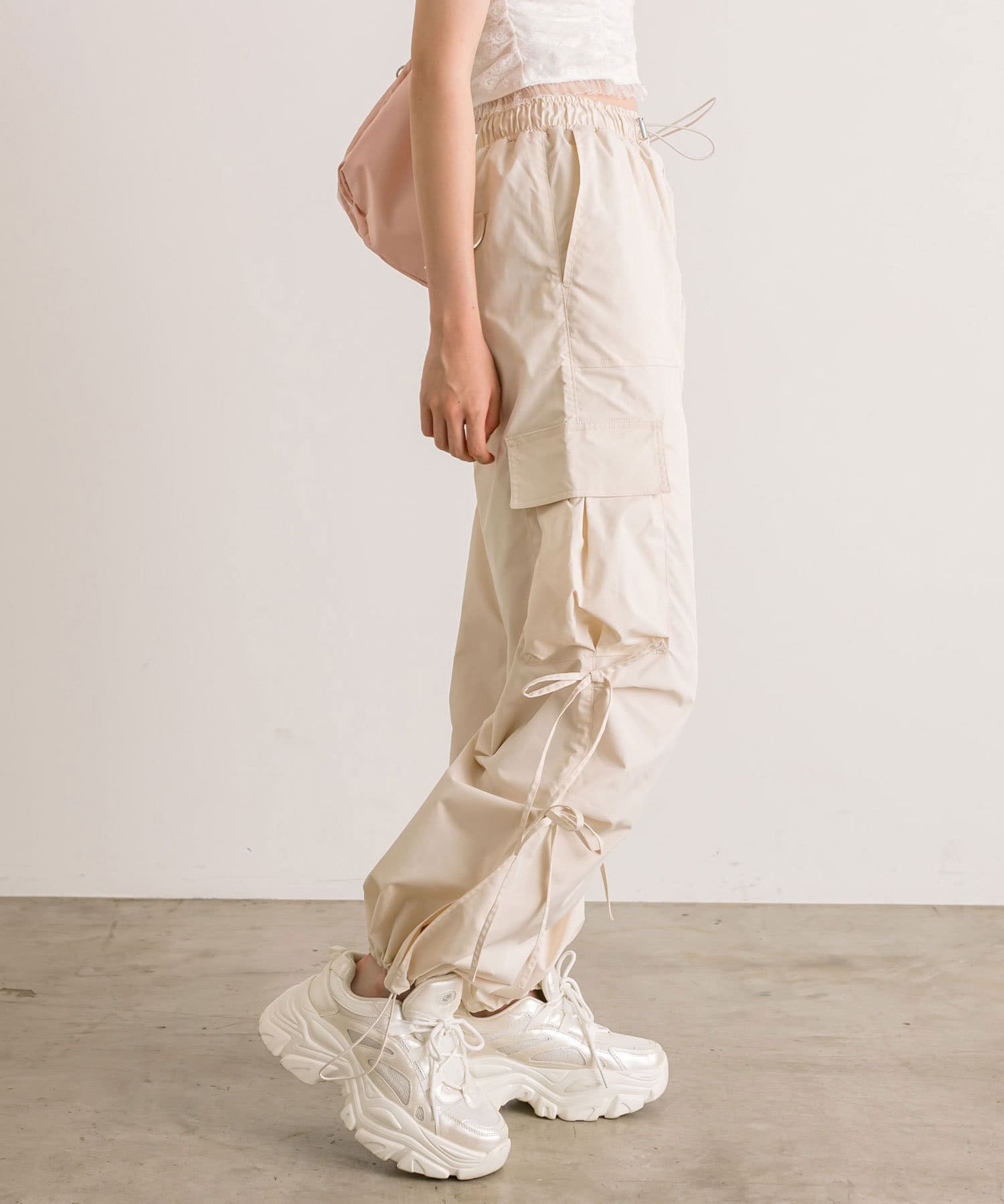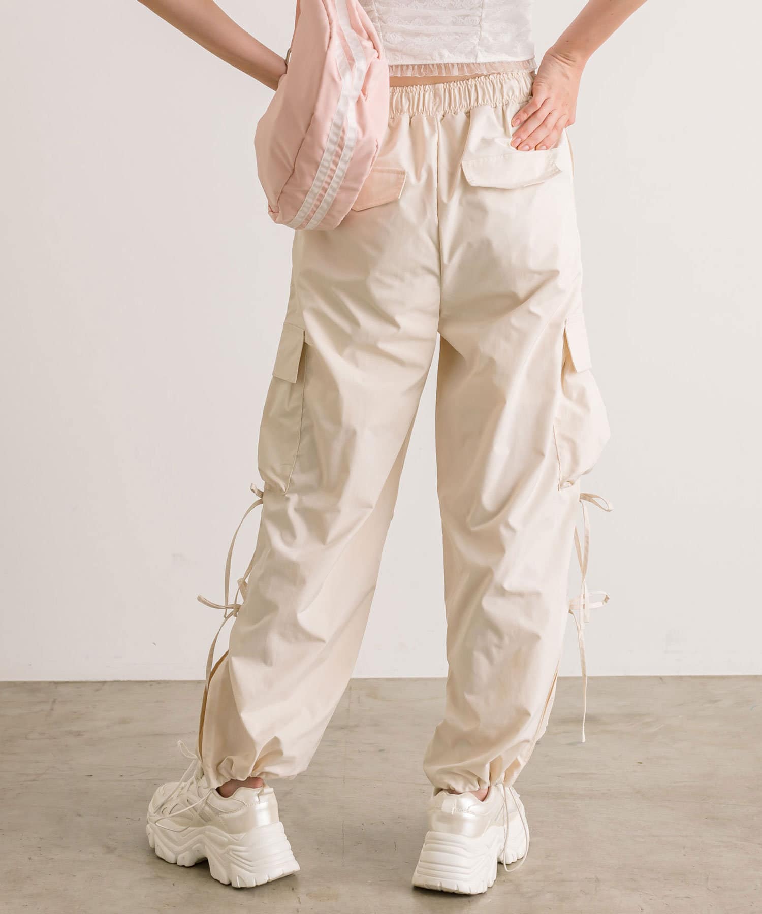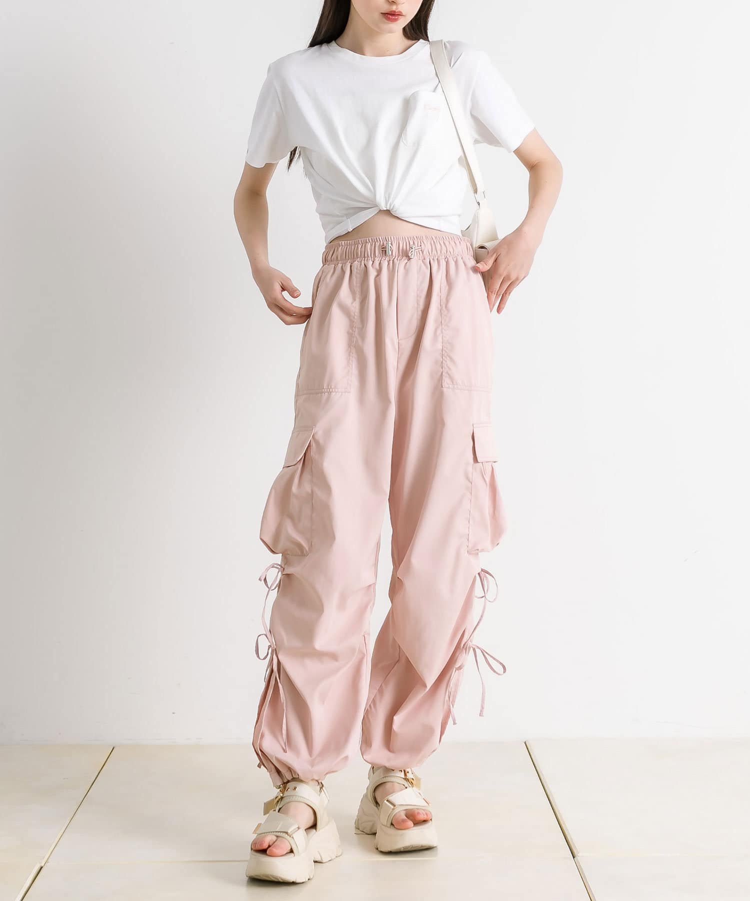 リボンたっぷりでバレエコアなデザインのカーゴパンツ