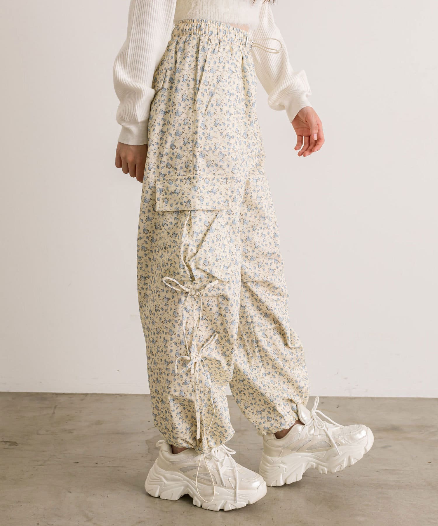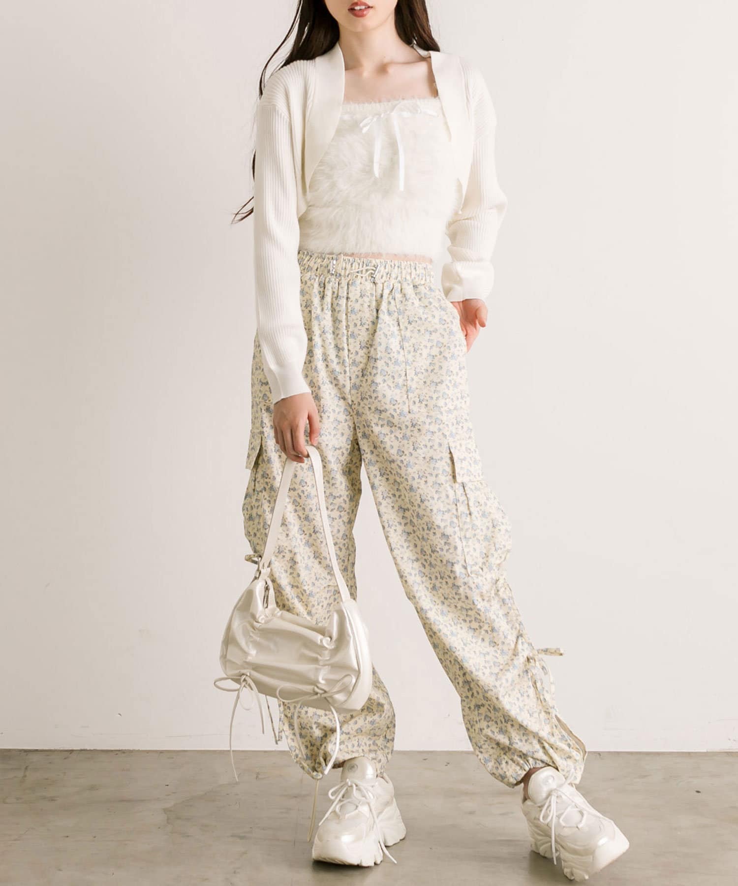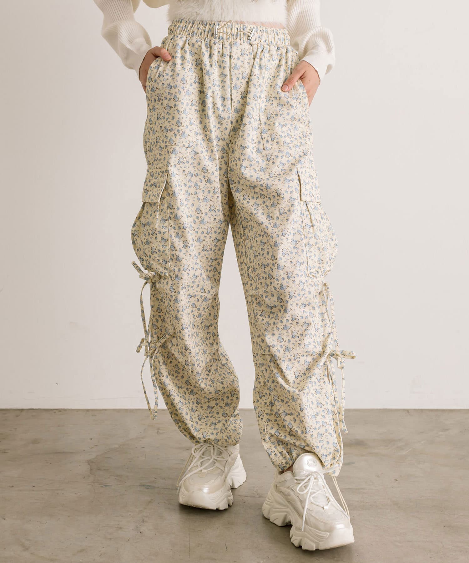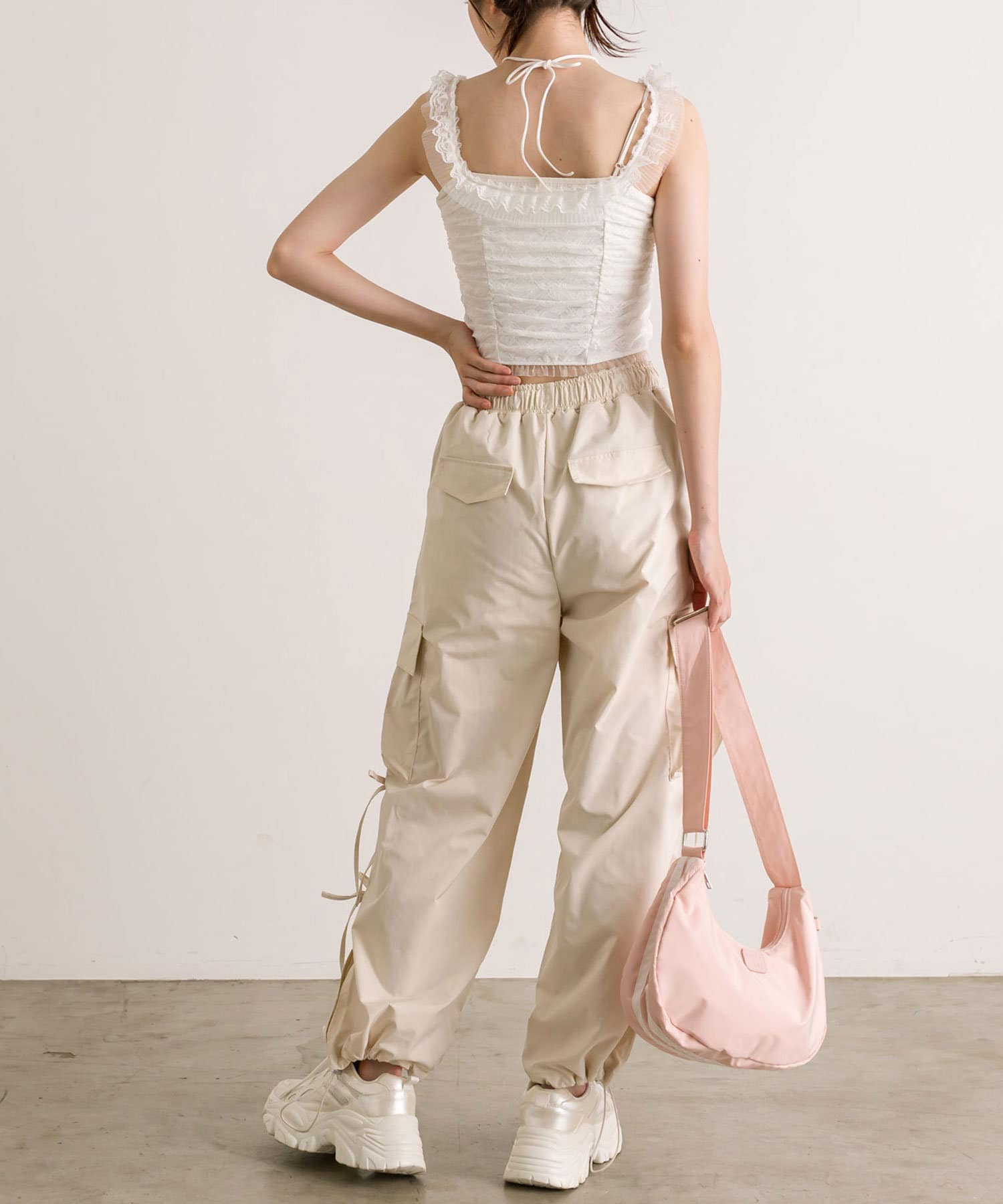 リボンたっぷりでバレエコアなデザインのカーゴパンツ