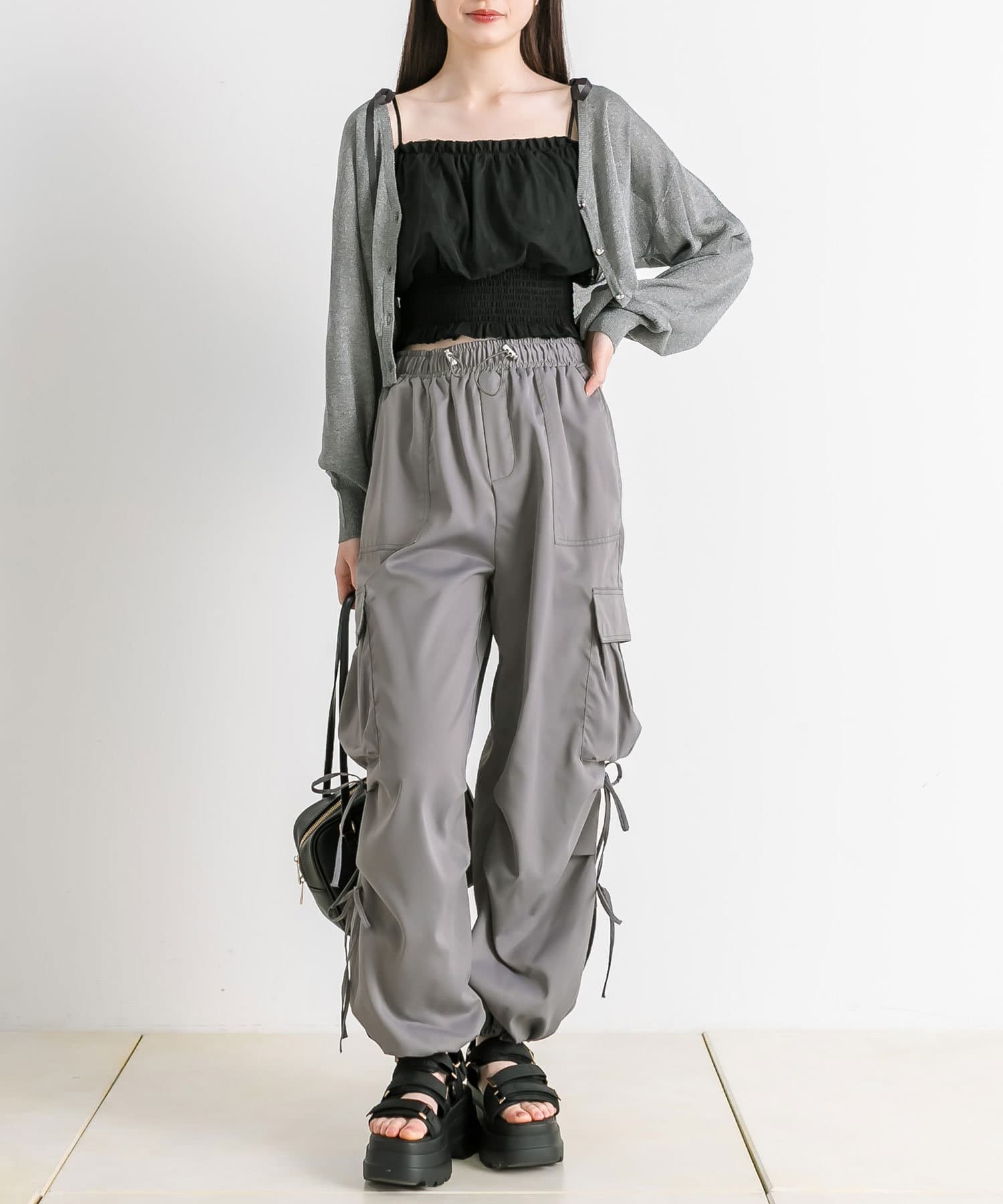 ・クロップド丈のTシャツやカーディガンなどと相性抜群。