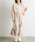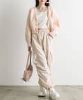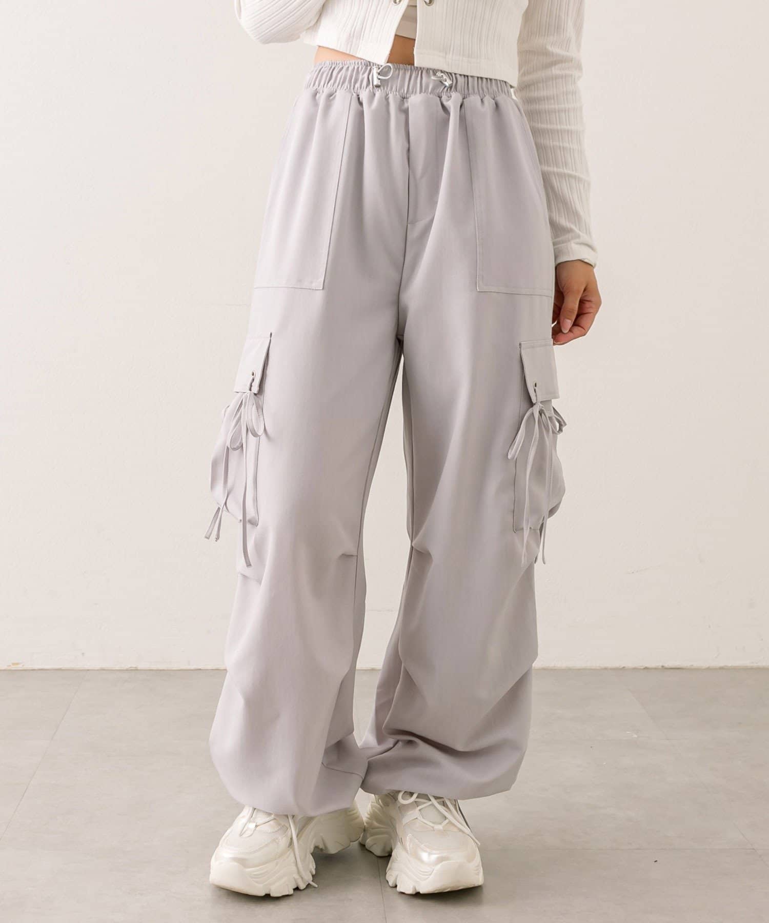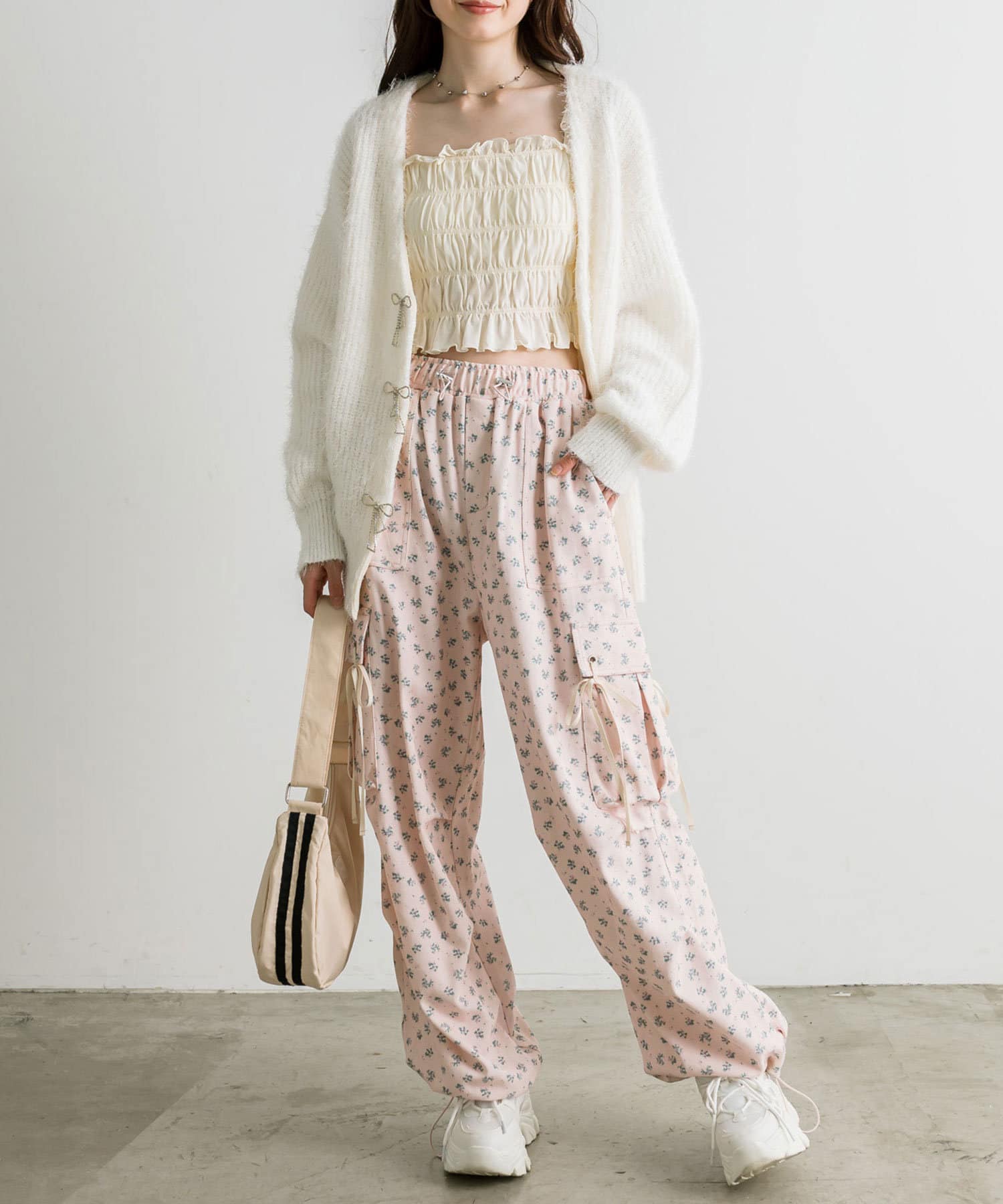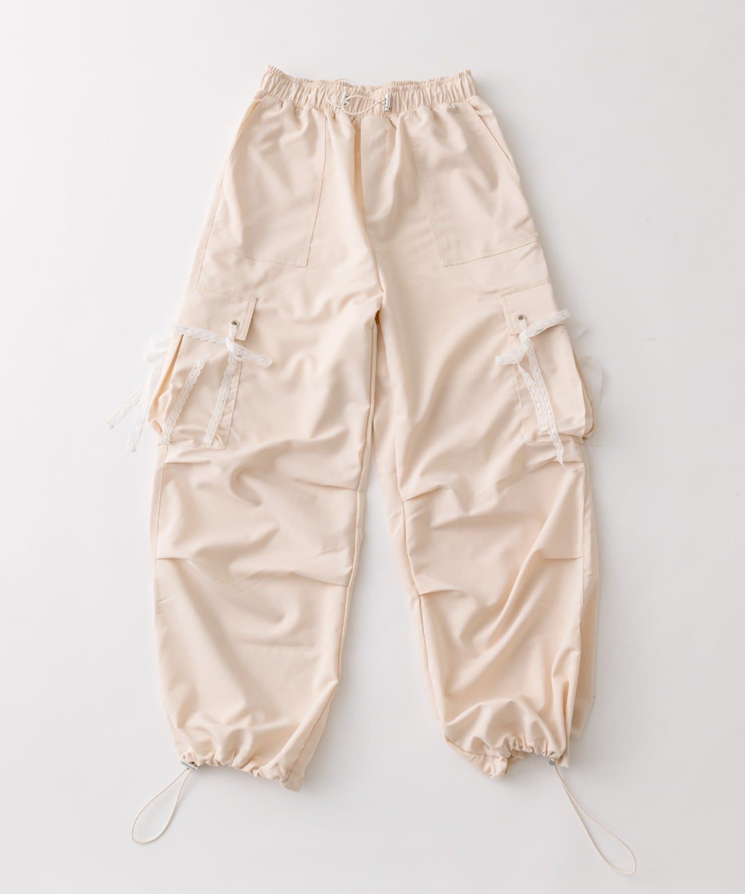 ・カジュアルな印象になりがちなカーゴパンツですが、リボンがあることで女の子らしい印象を与えてくれます。