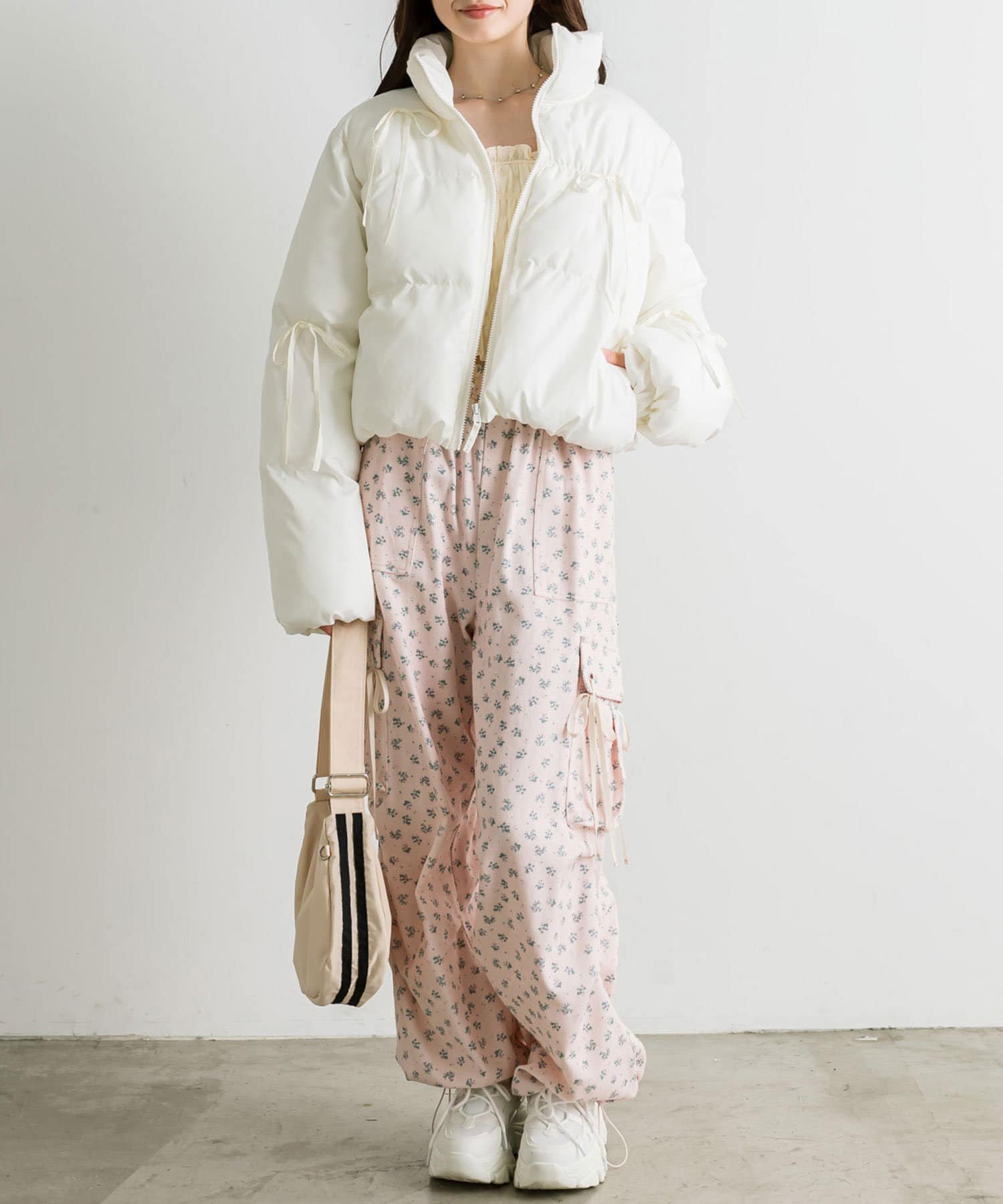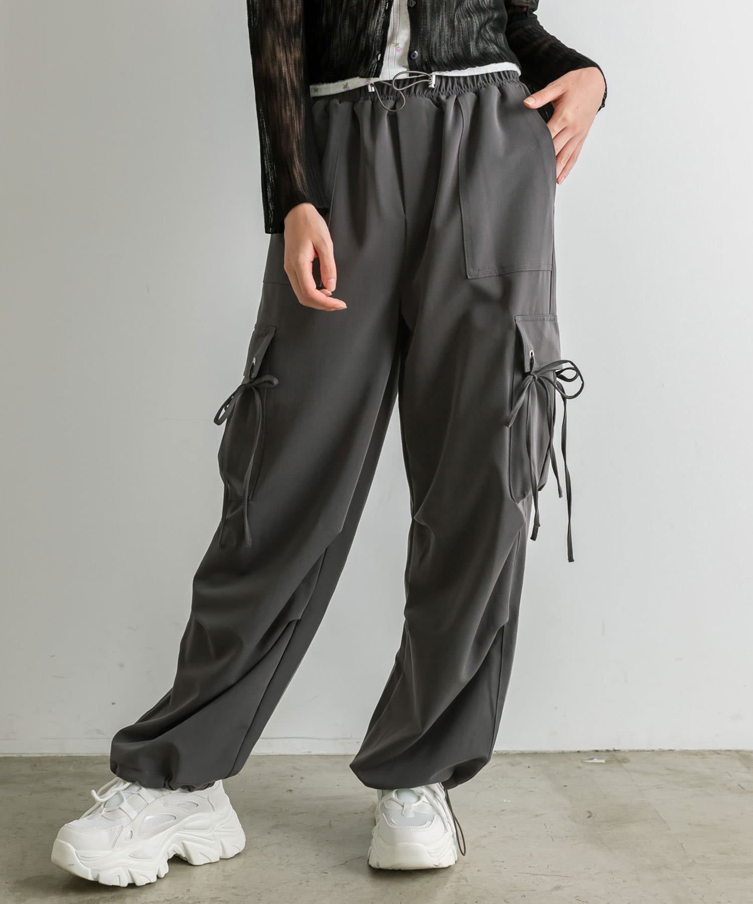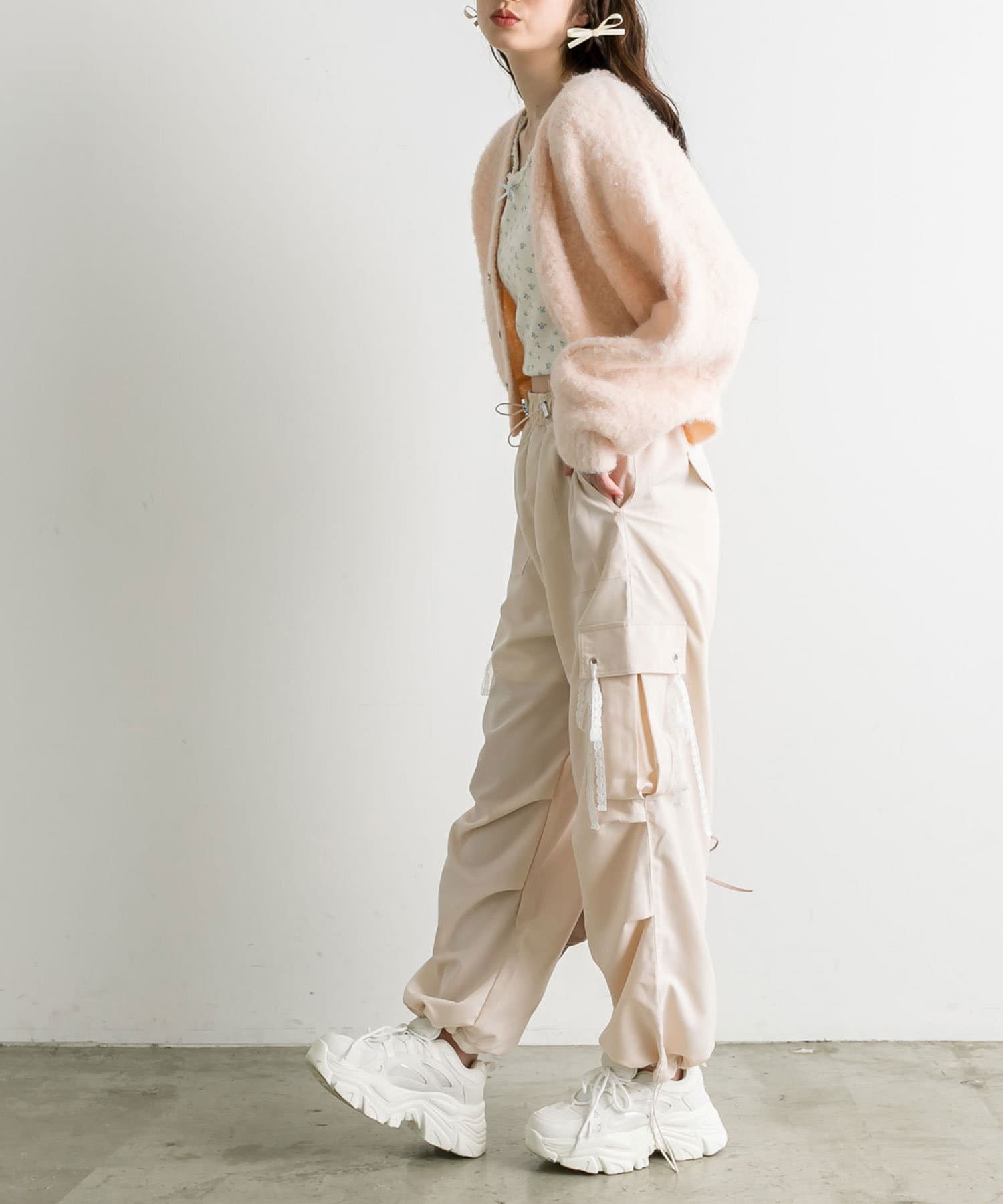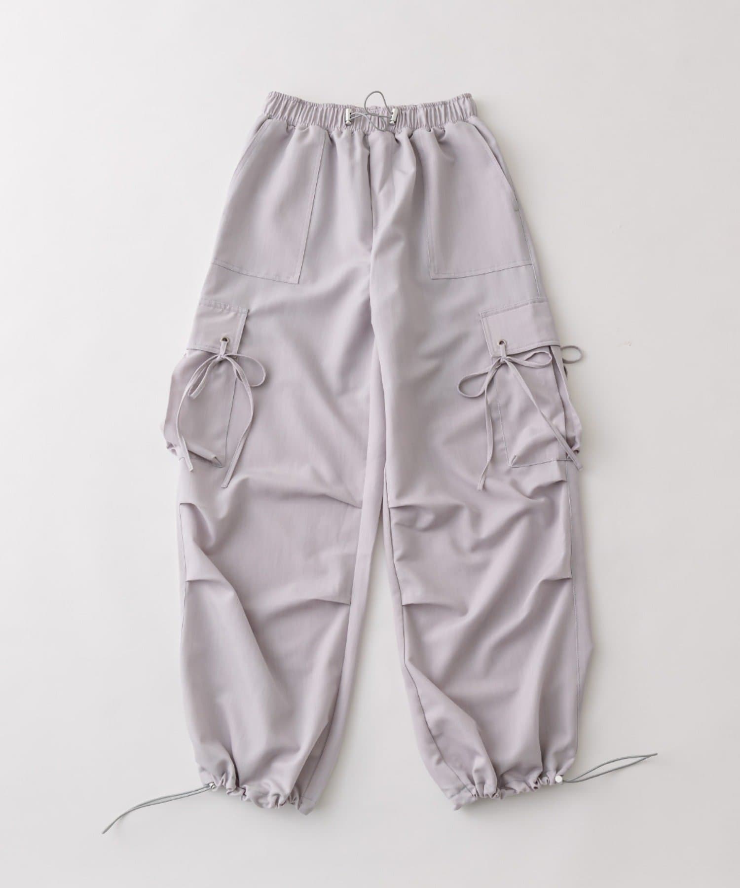 ・カジュアルな印象になりがちなカーゴパンツですが、リボンがあることで女の子らしい印象を与えてくれます。