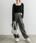 ・コンパクトなサイズ感のトップスと合わせたメリハリのあるコーデがおすすめ。