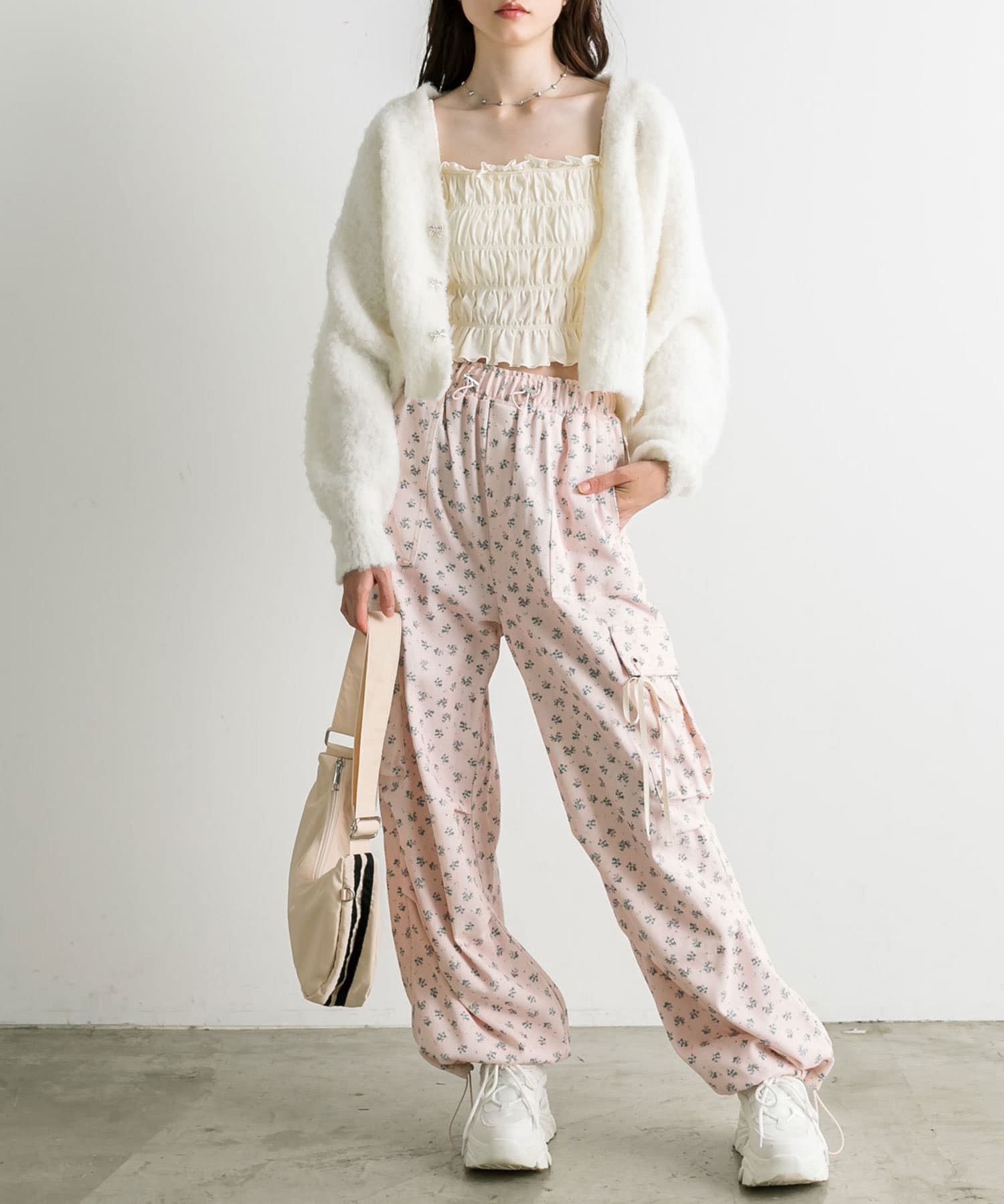 品番 1042020050 素材 【アイボリー・サックス・チャコール】本体: ポリエステル75%, ナイロン19%, ポリウレタン6% 裏地: ポリエステル100% 【花柄】綿100% 原産国 中国 サイズ FREE カテゴリ パンツ > カーゴパンツ タイプ レディース ギフト ラッピング 可 取り扱い 本体:手洗い可能 アイテムサイズ