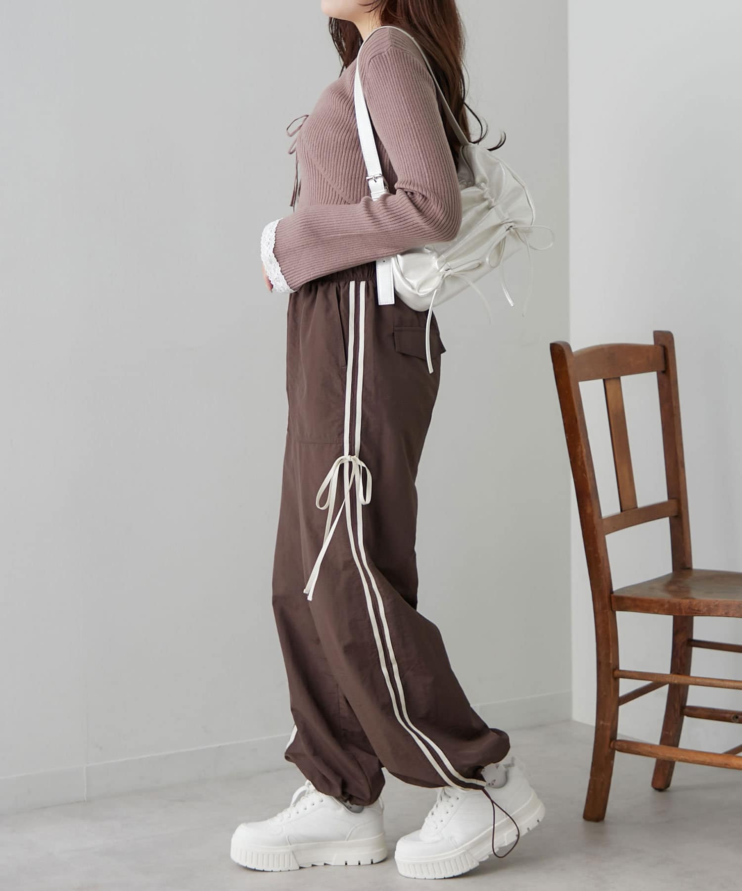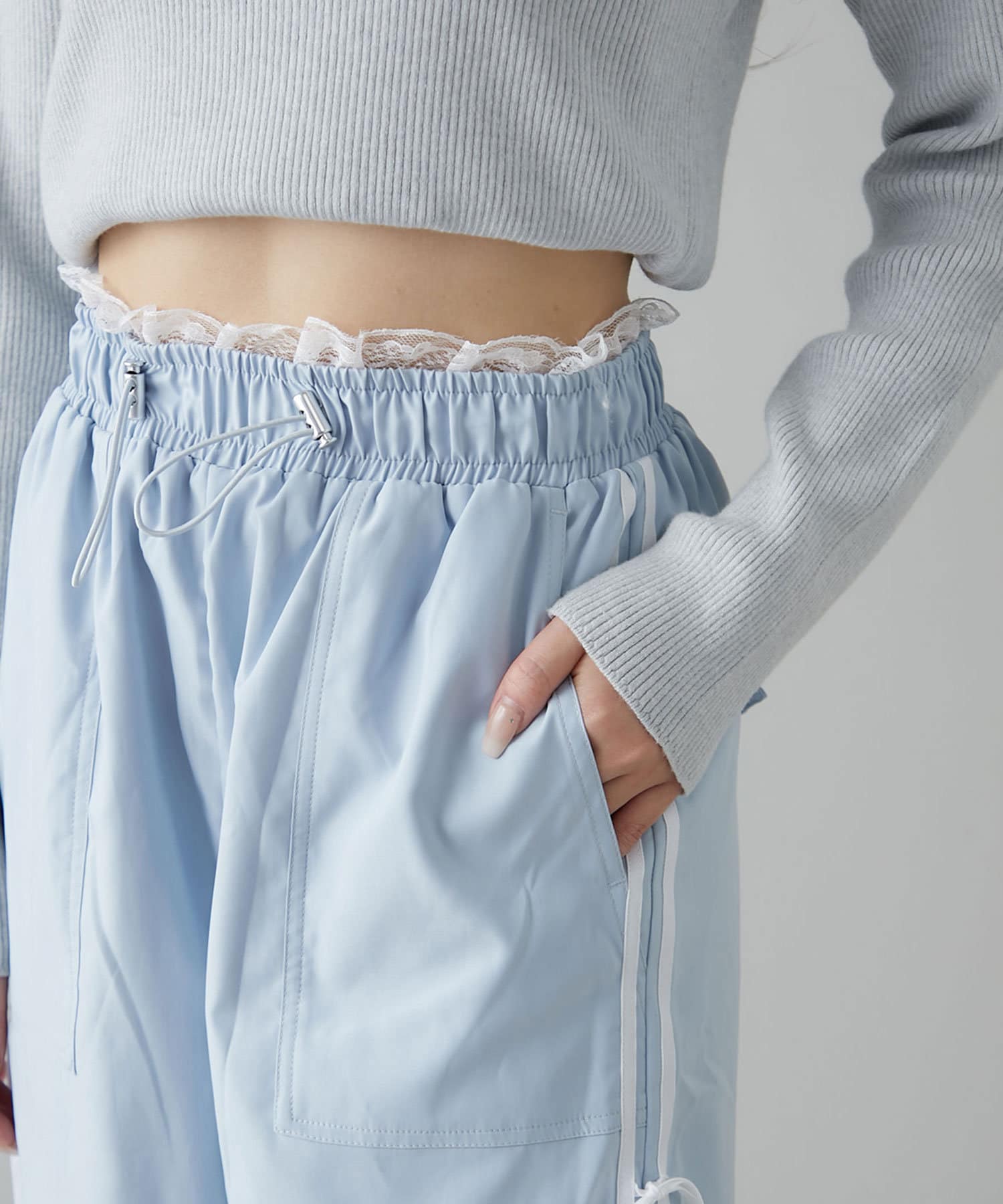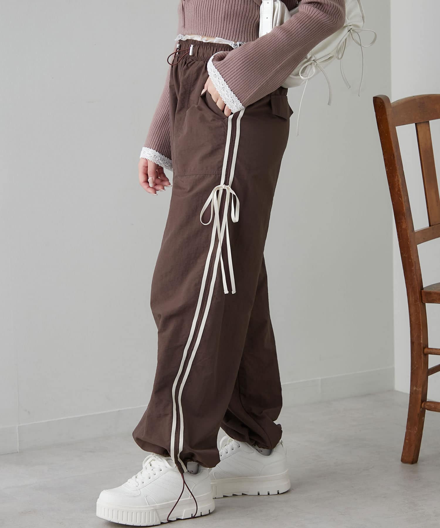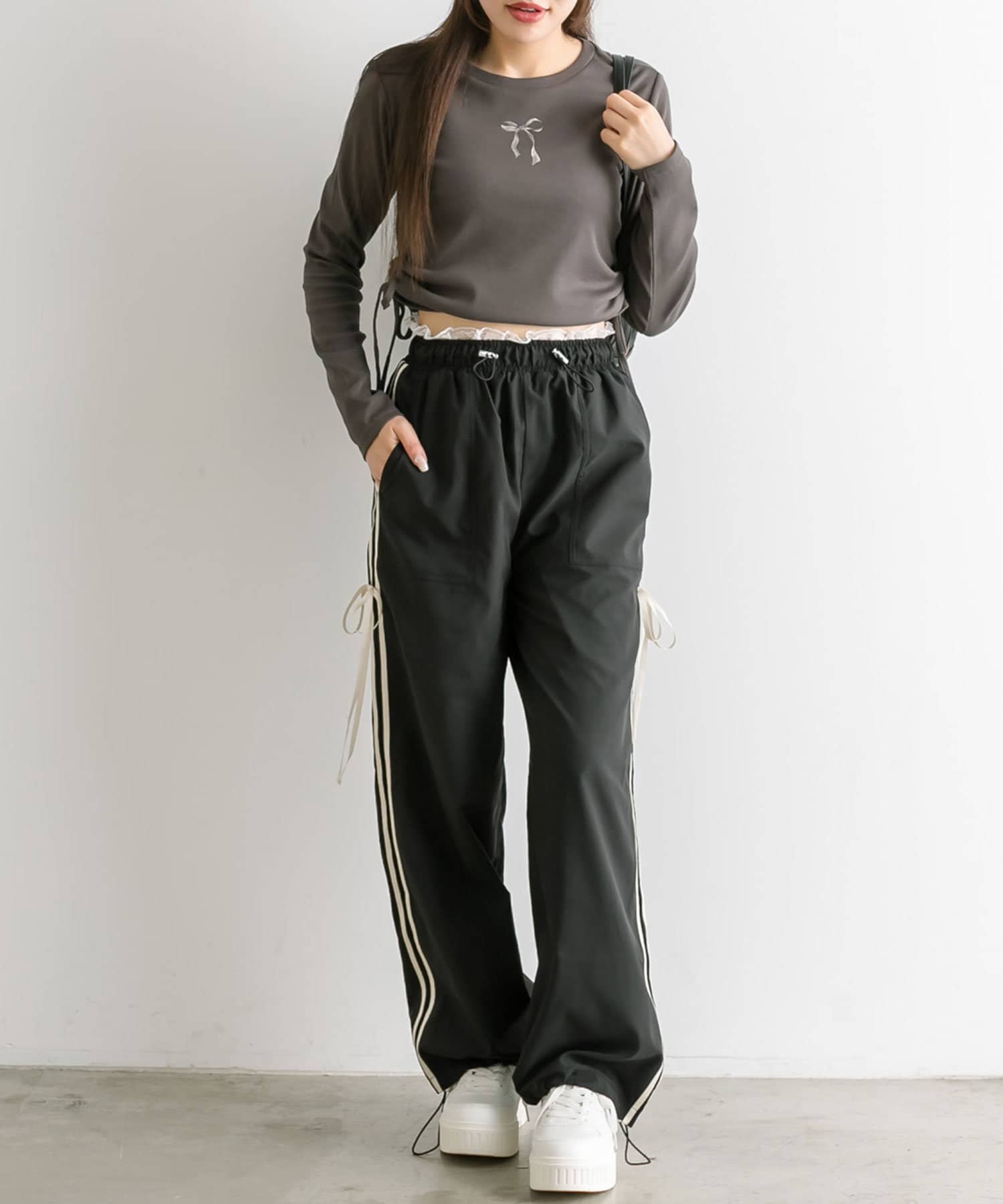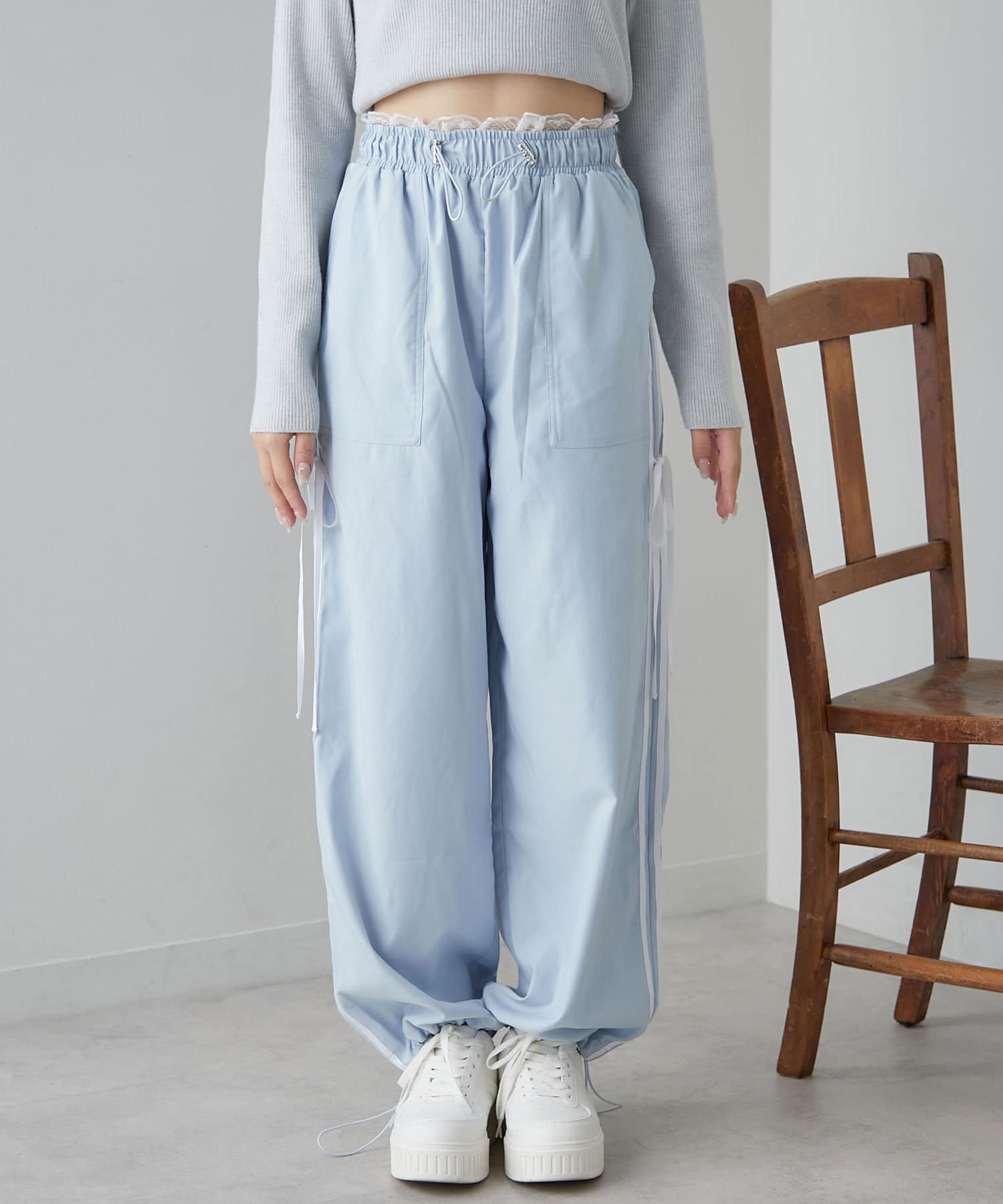 レースとリボンで甘さも兼ね備えたラインパンツ