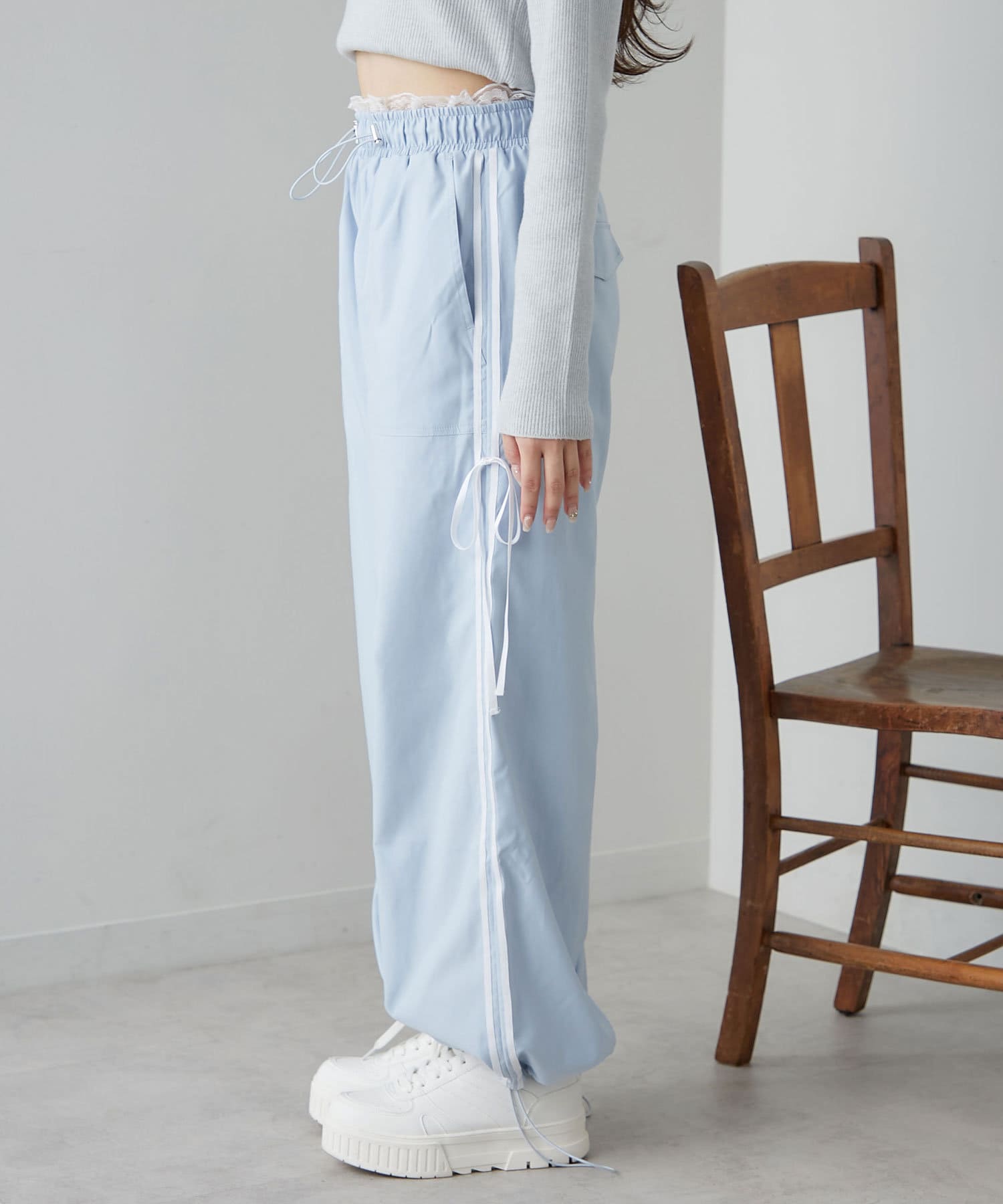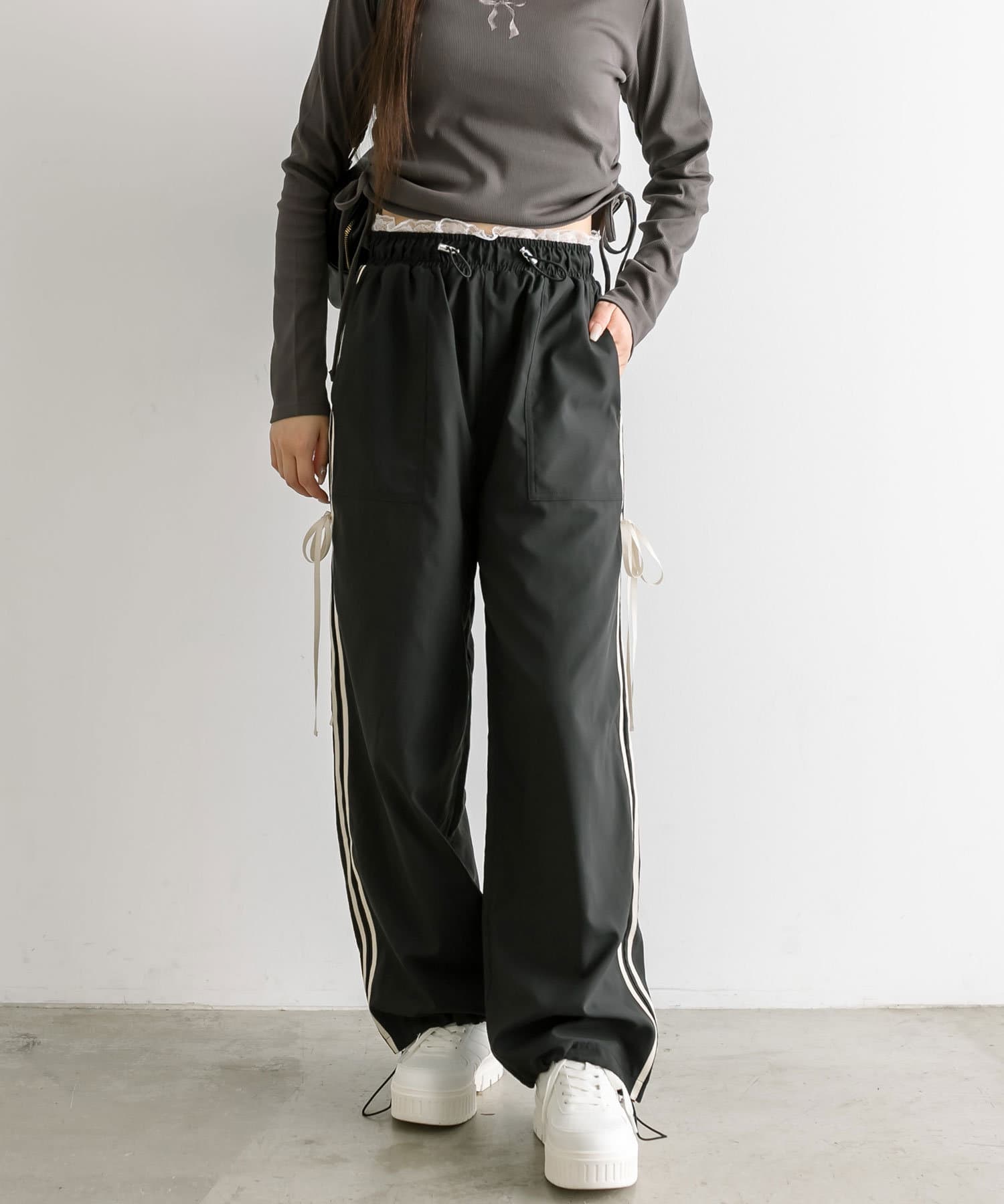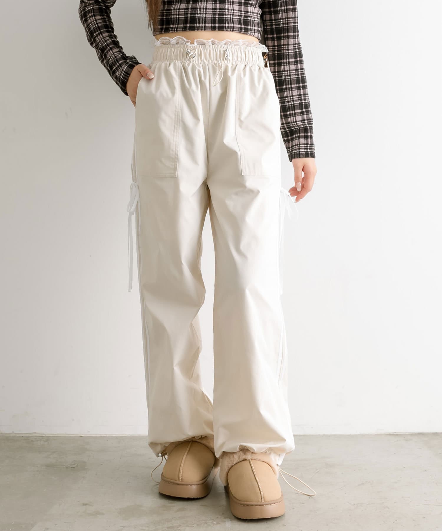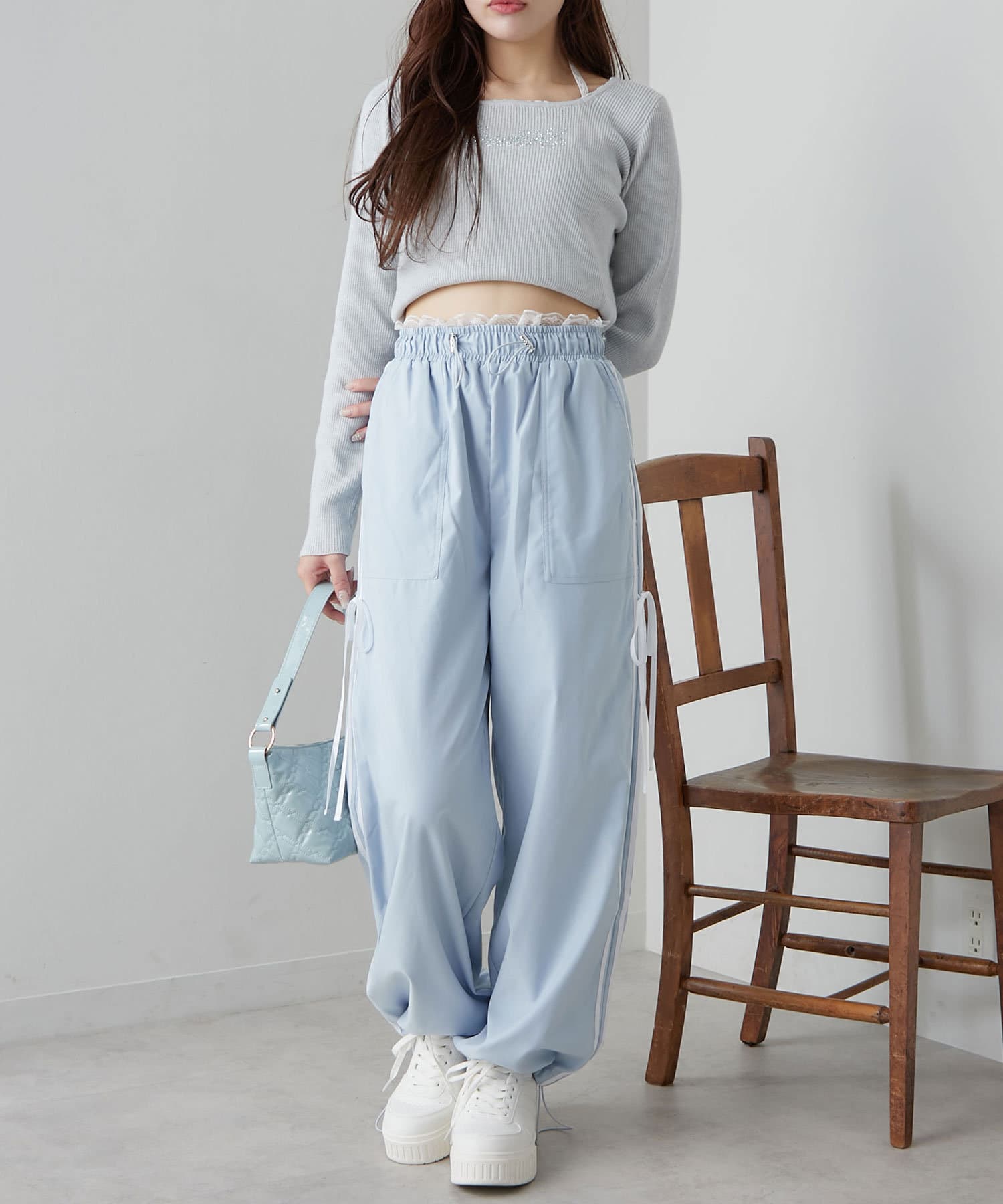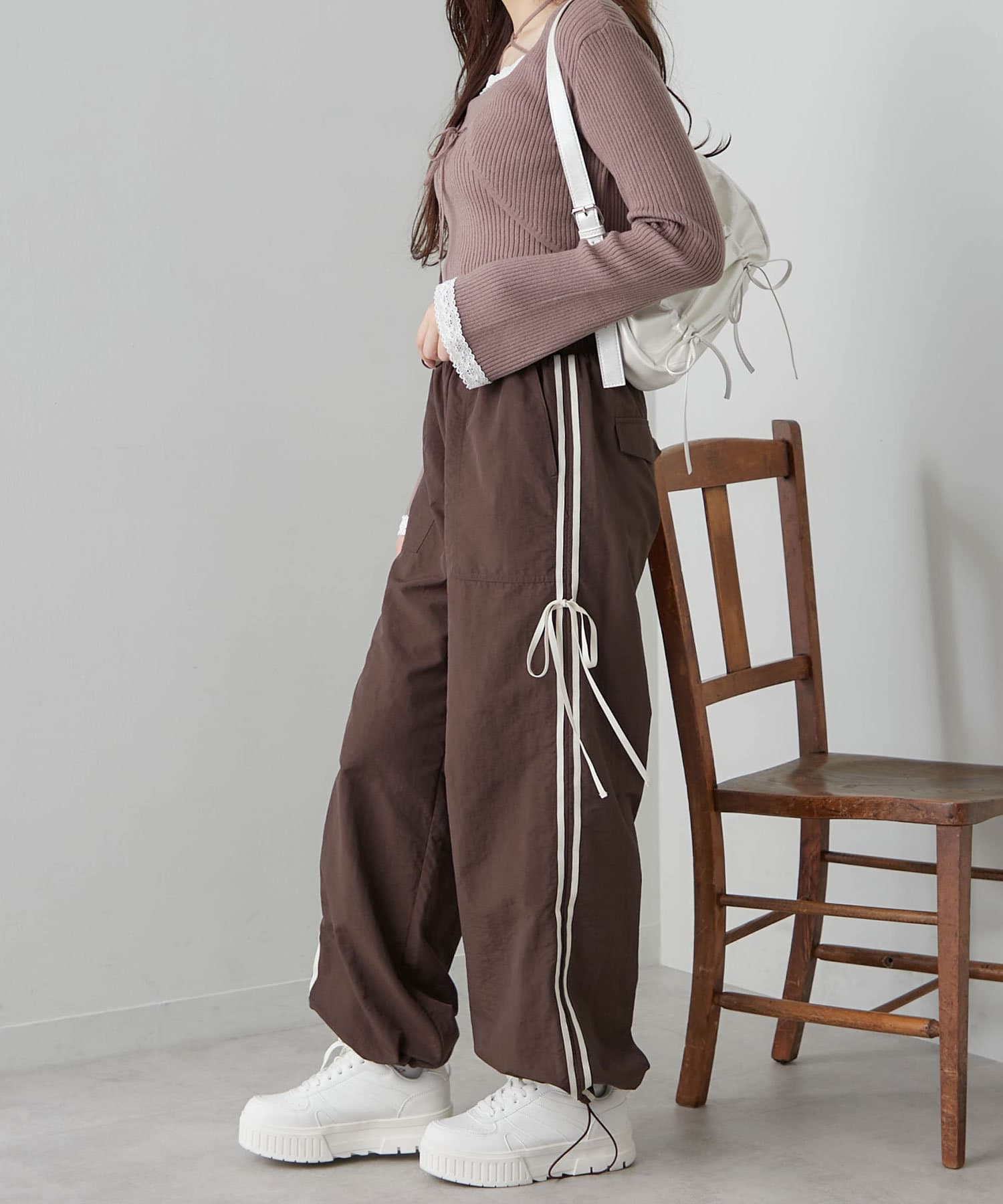 レースとリボンで甘さも兼ね備えたラインパンツ